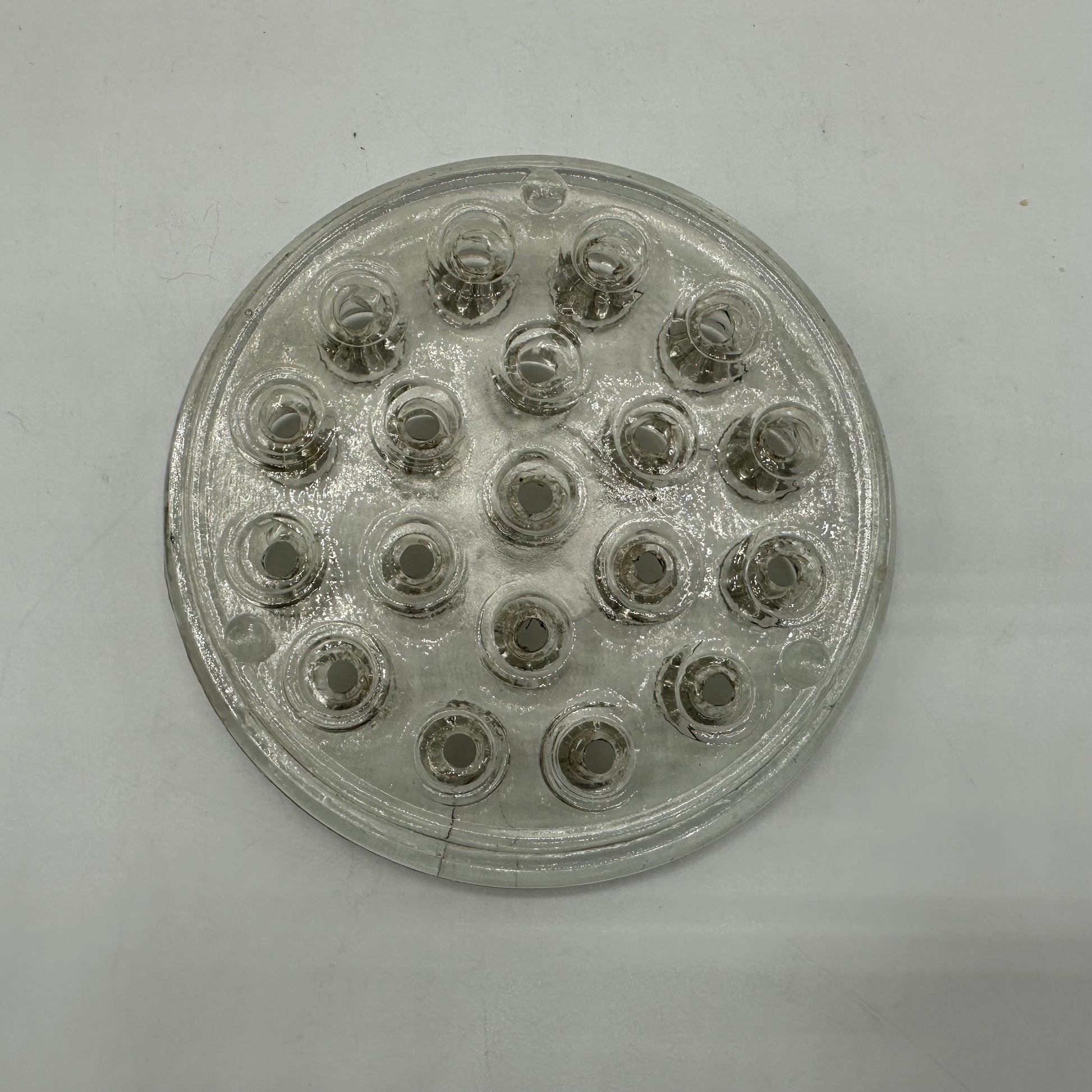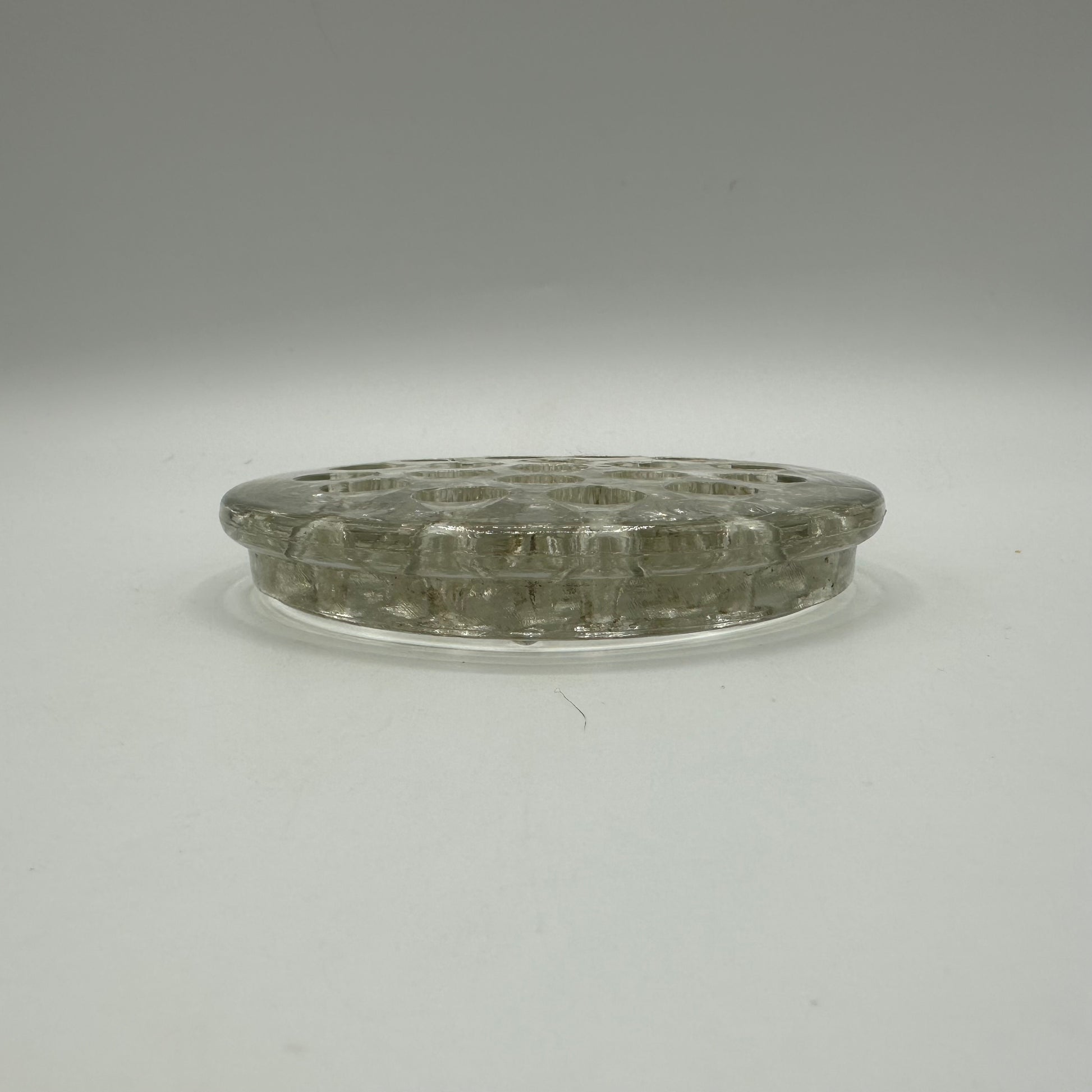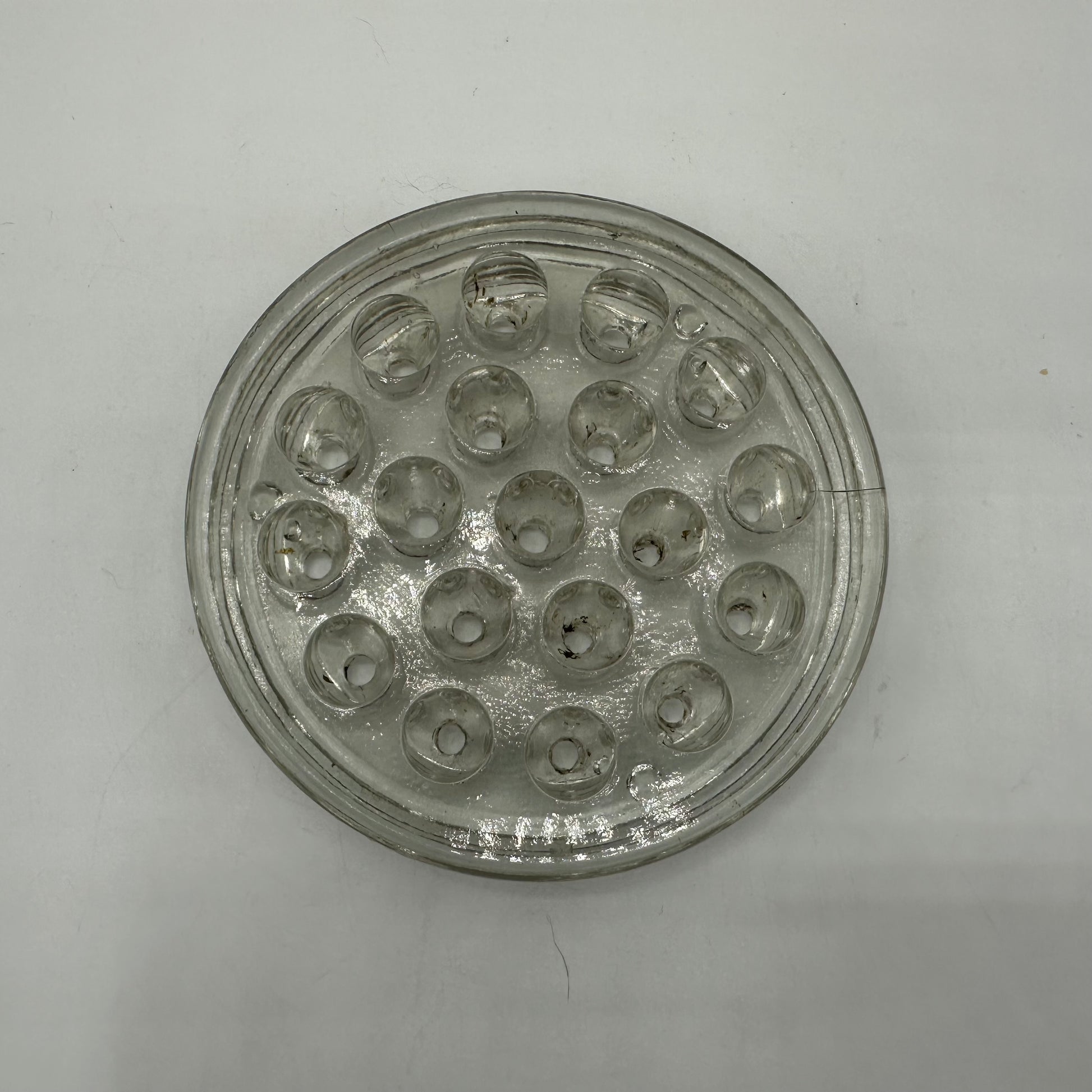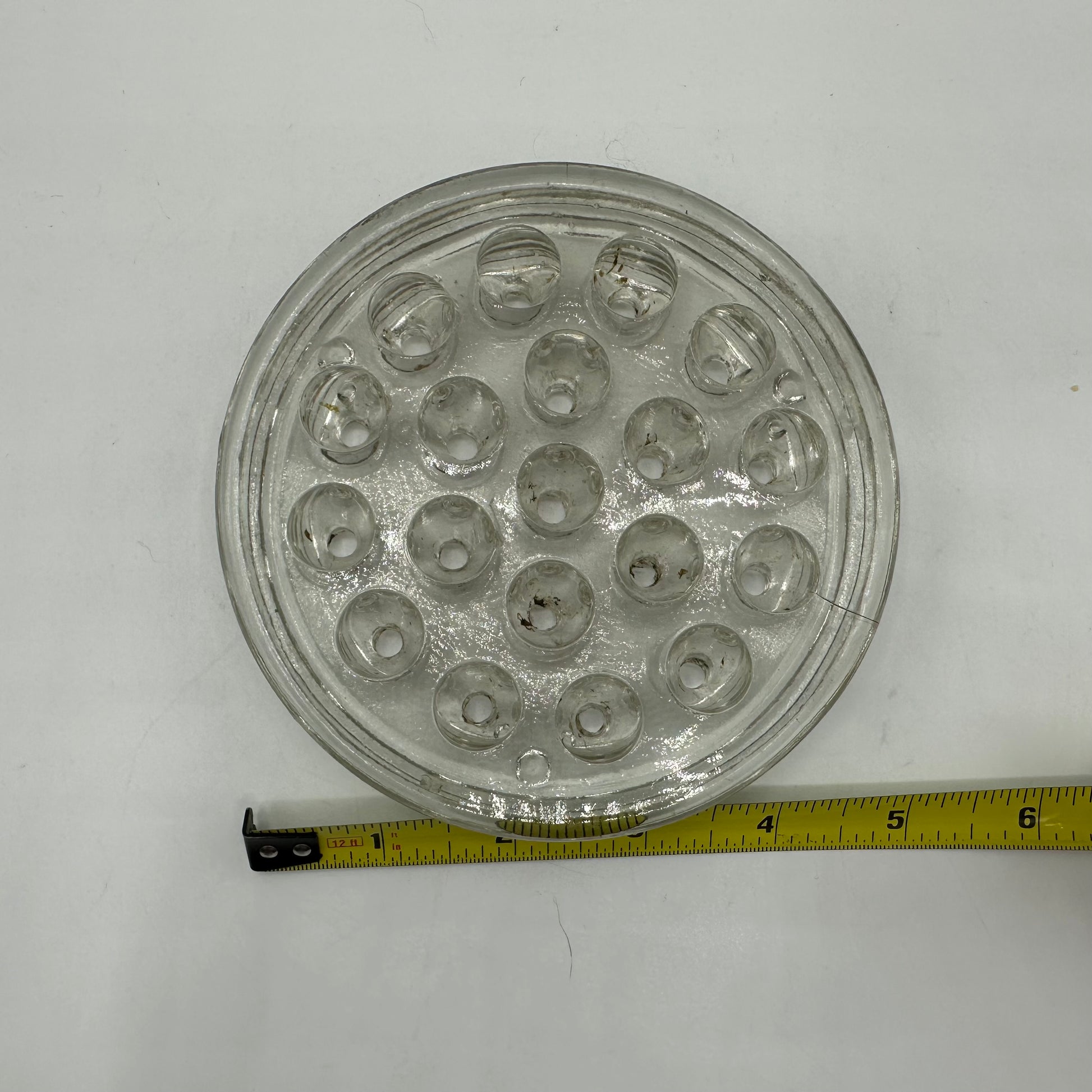 This is a lovely 19-hole frogger. It features clear glass and a patterned rim. There are some slight wear patterns from use, but it is otherwise in fantastic vintage condition for its age.