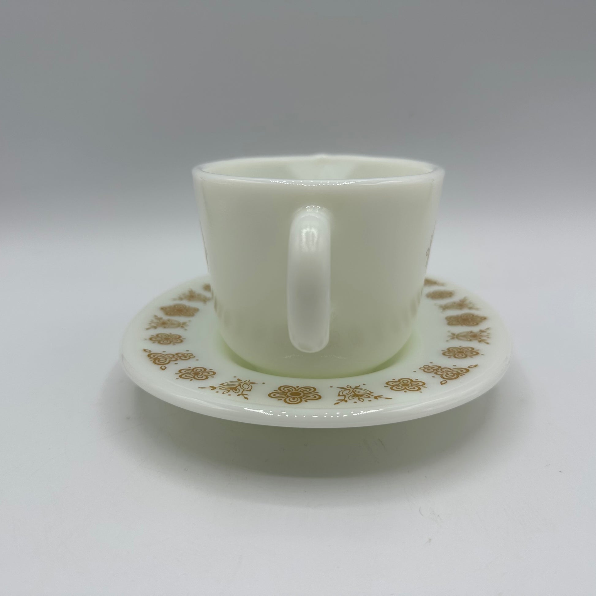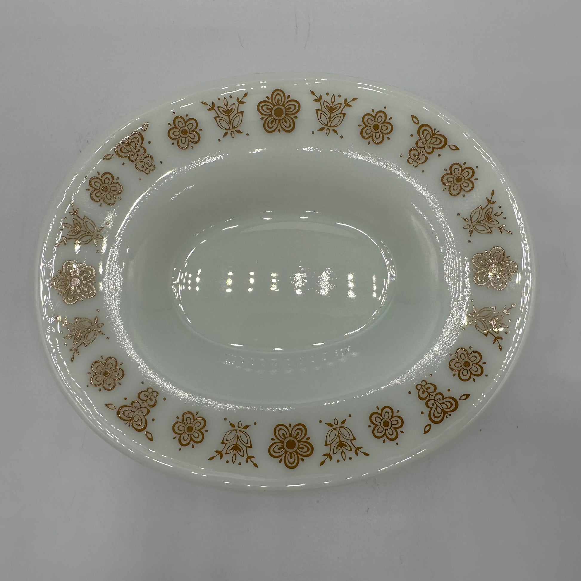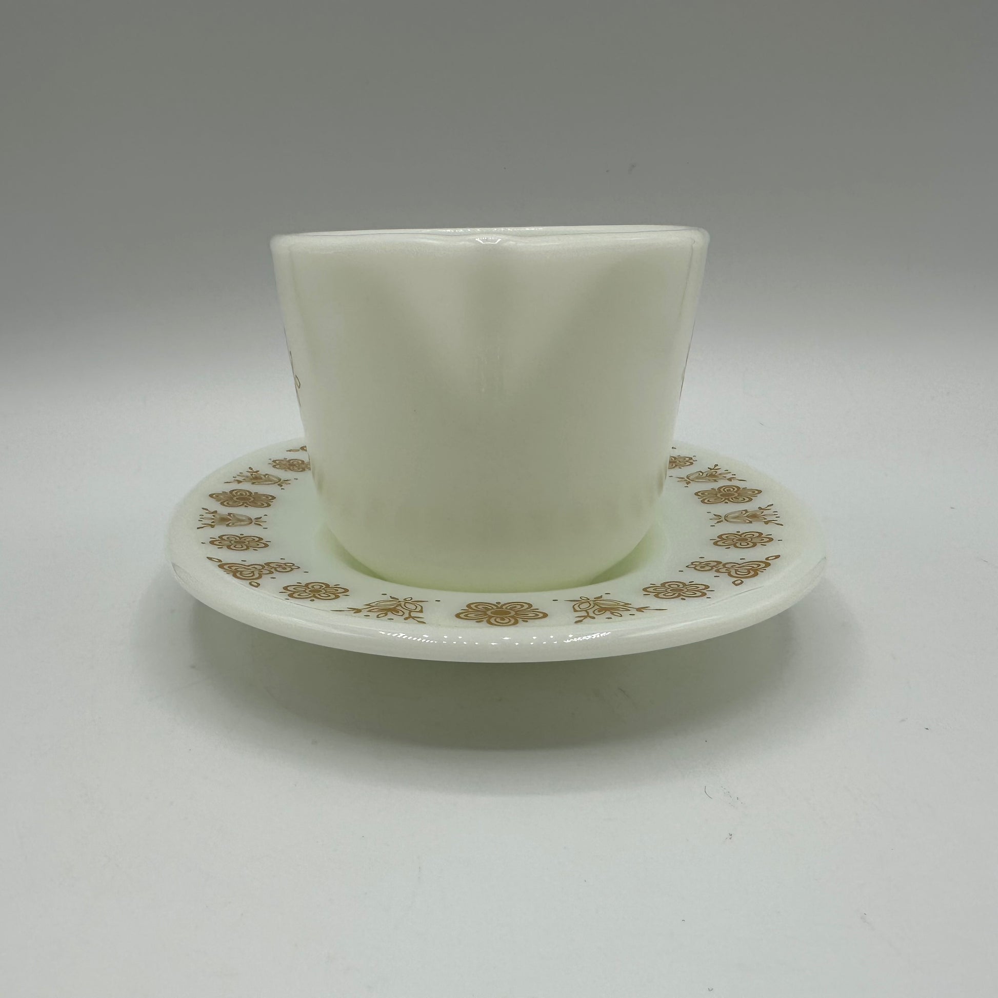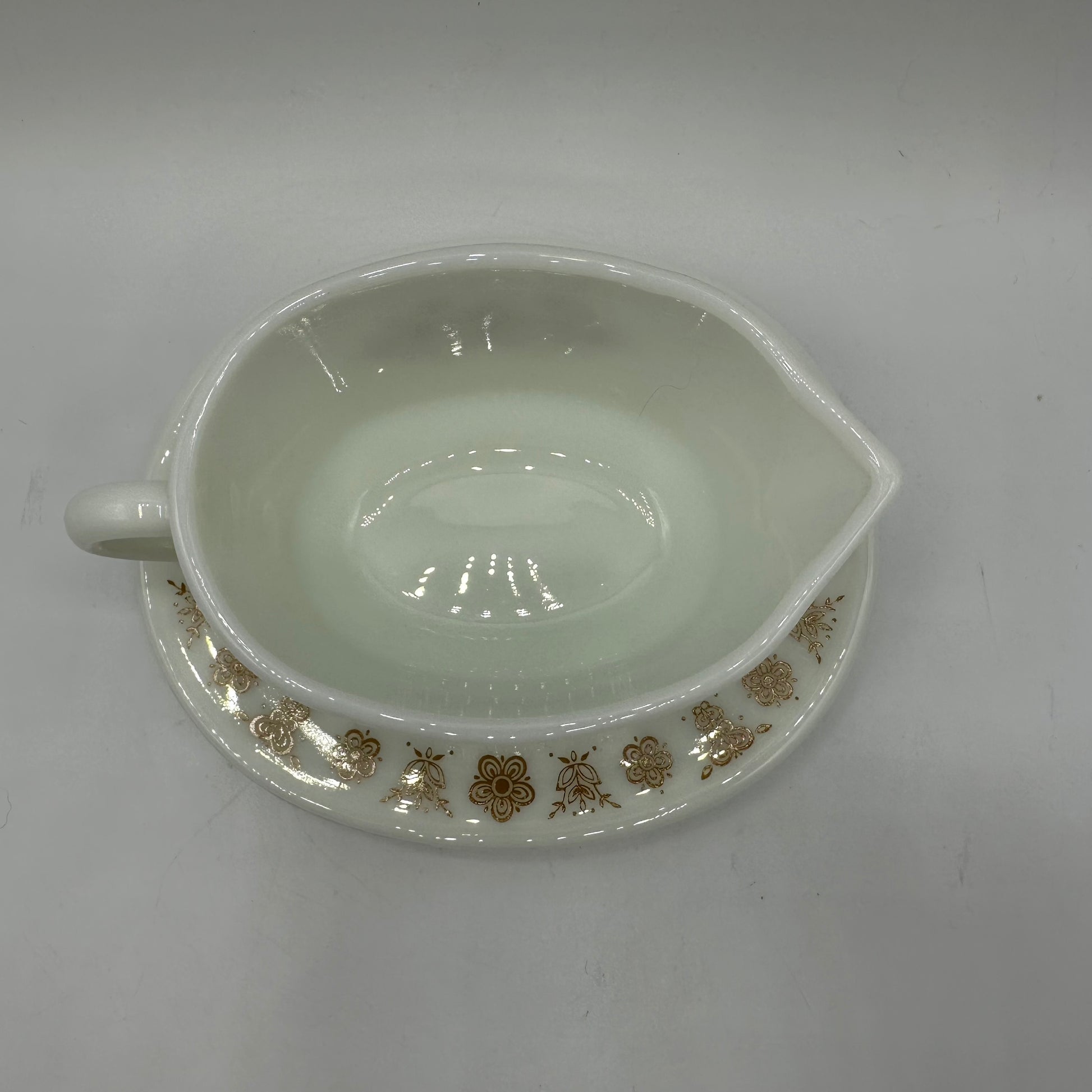 1970s Gold Butterfly Pyrex Milk Glass Gravy Boat & Platter