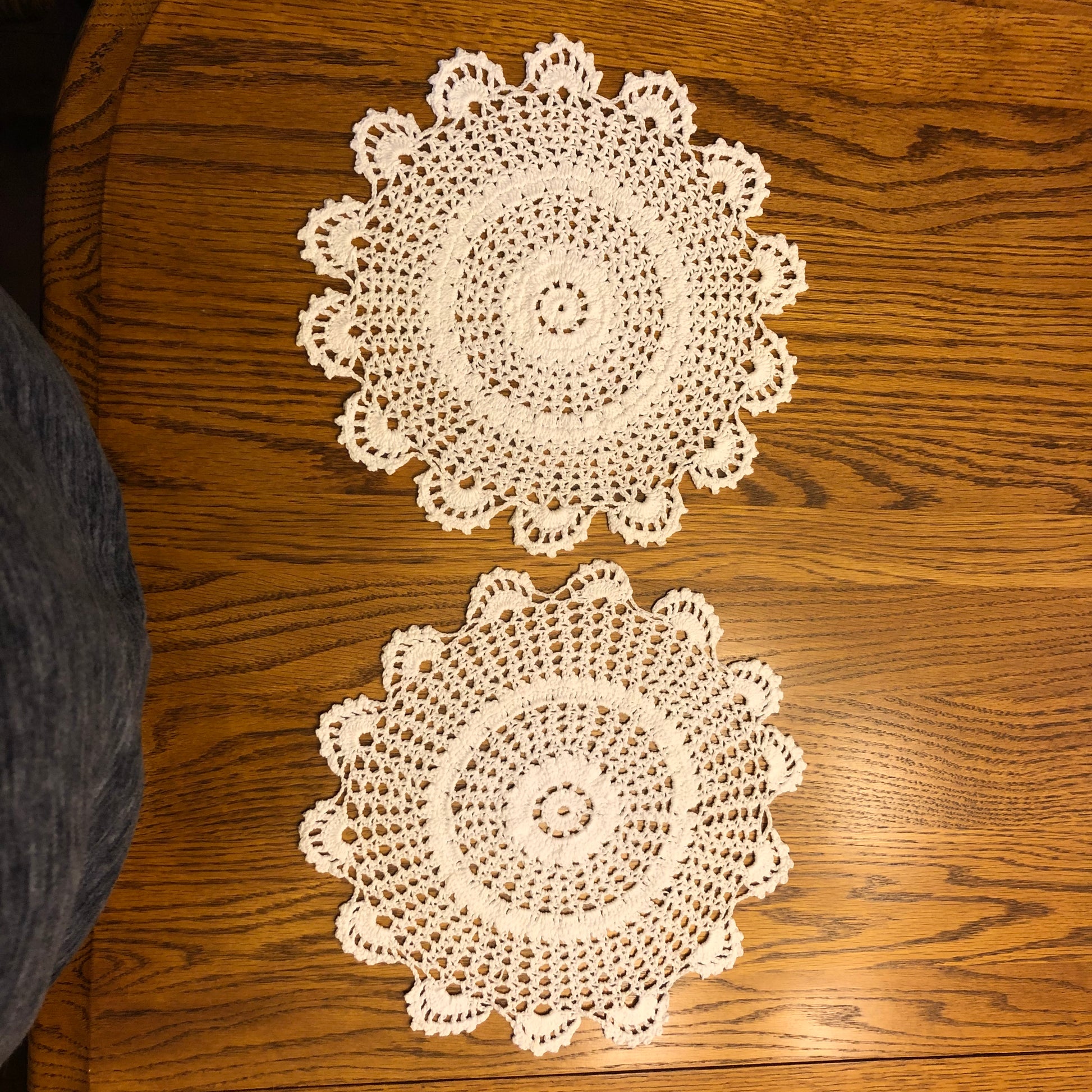 2 Vintage Handmade Crochet Doilies with Scalloped Edges- Beautiful