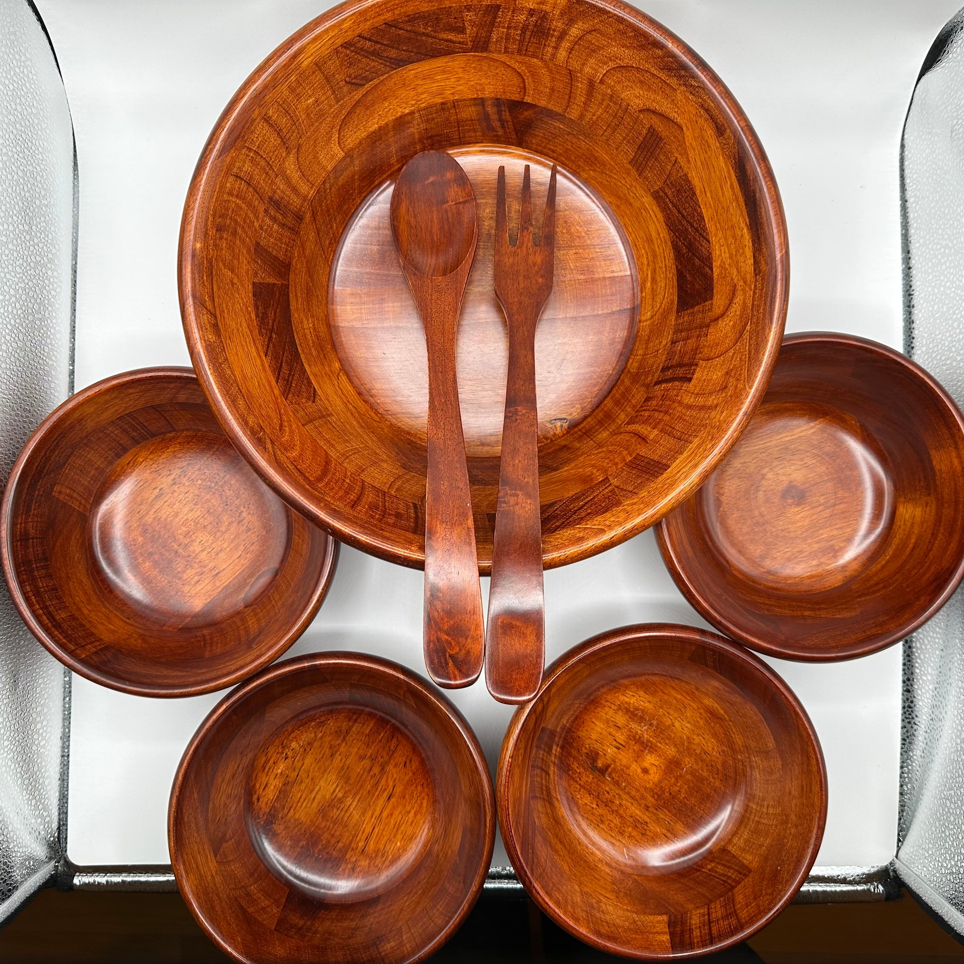 7 Piece Wooden Salad Bowl Set- 1 Serving Bowl, 4 Salad Bowl & 2 Serving Utensils