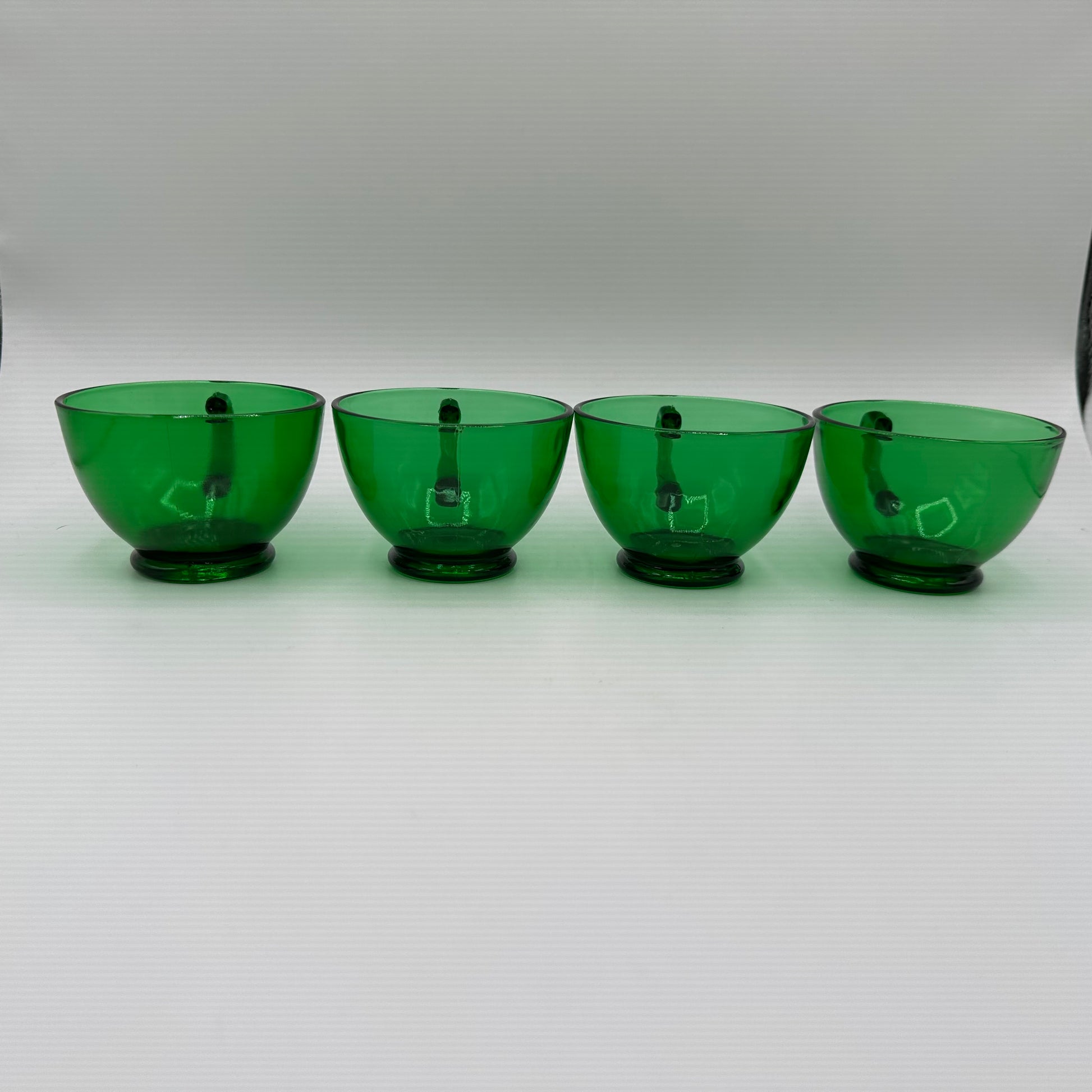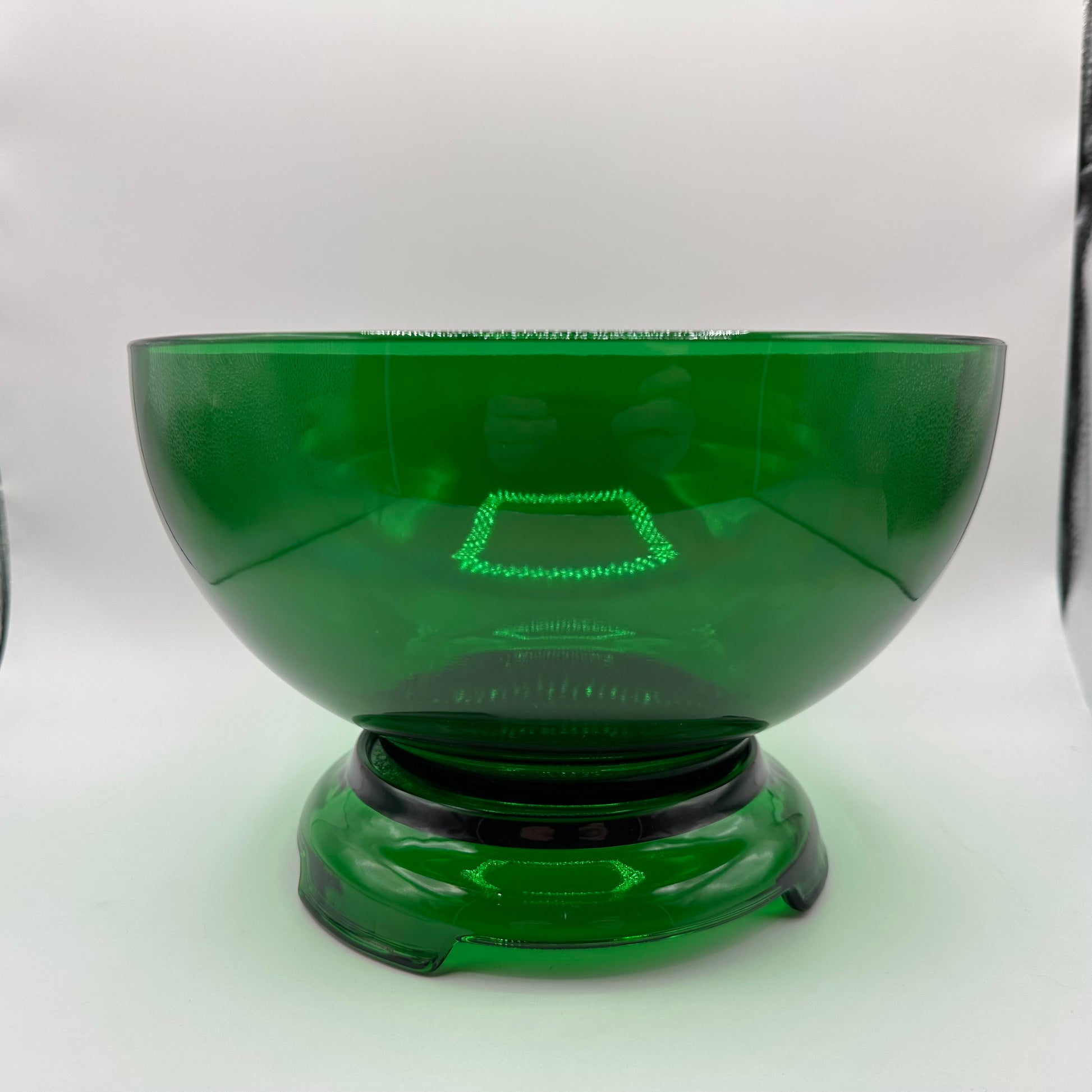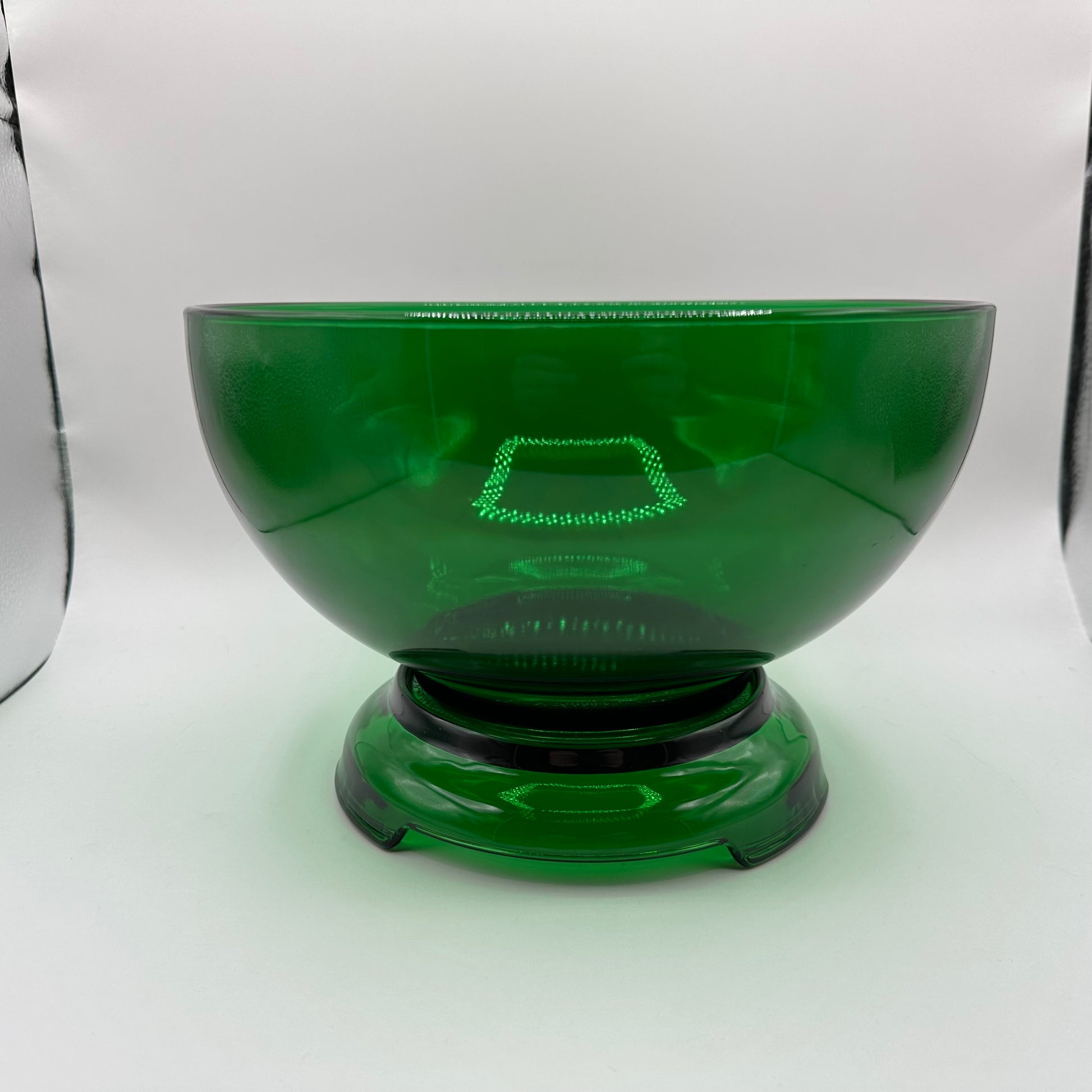 Anchor Hocking Forest Green Punch Bowl Set W/12 Cups and Base