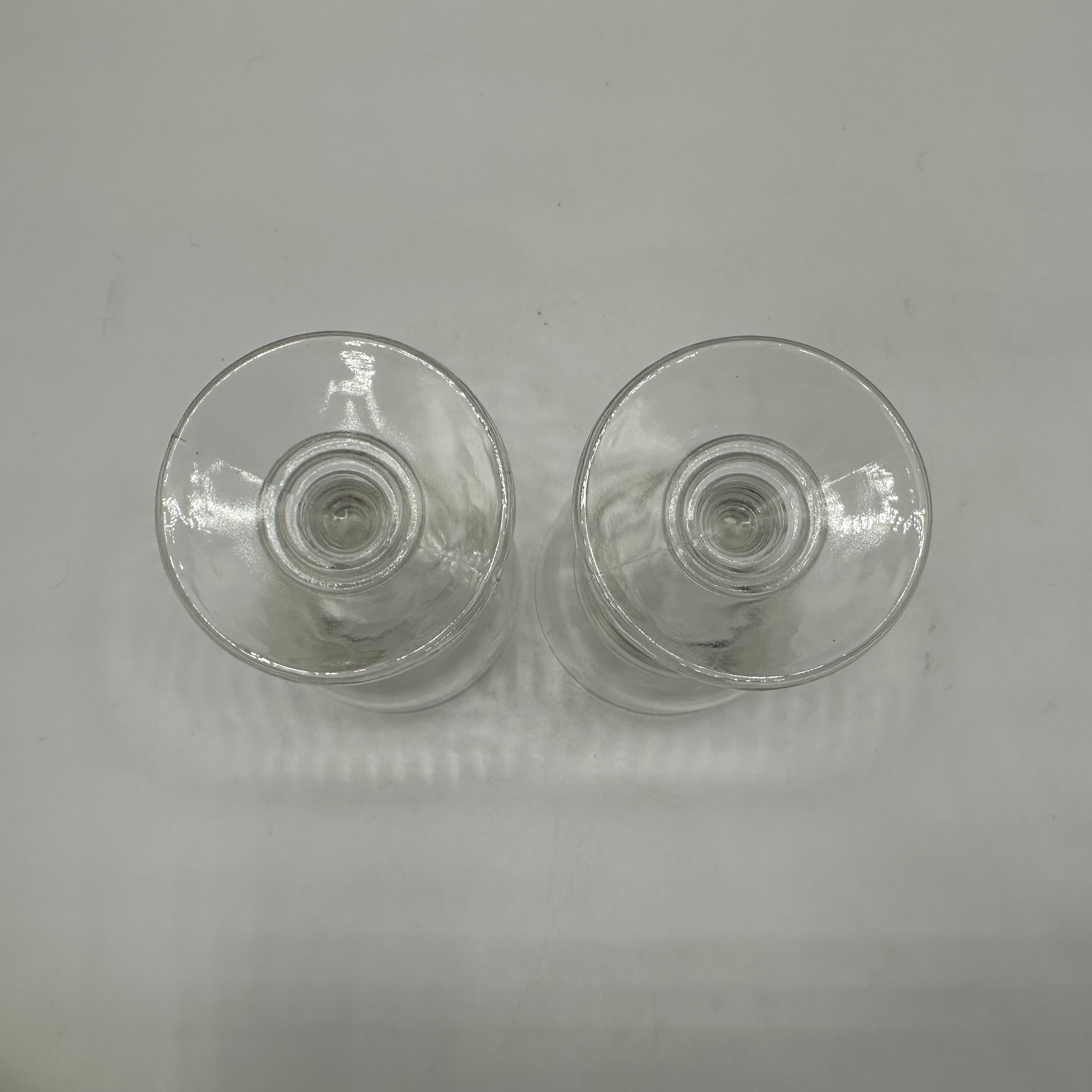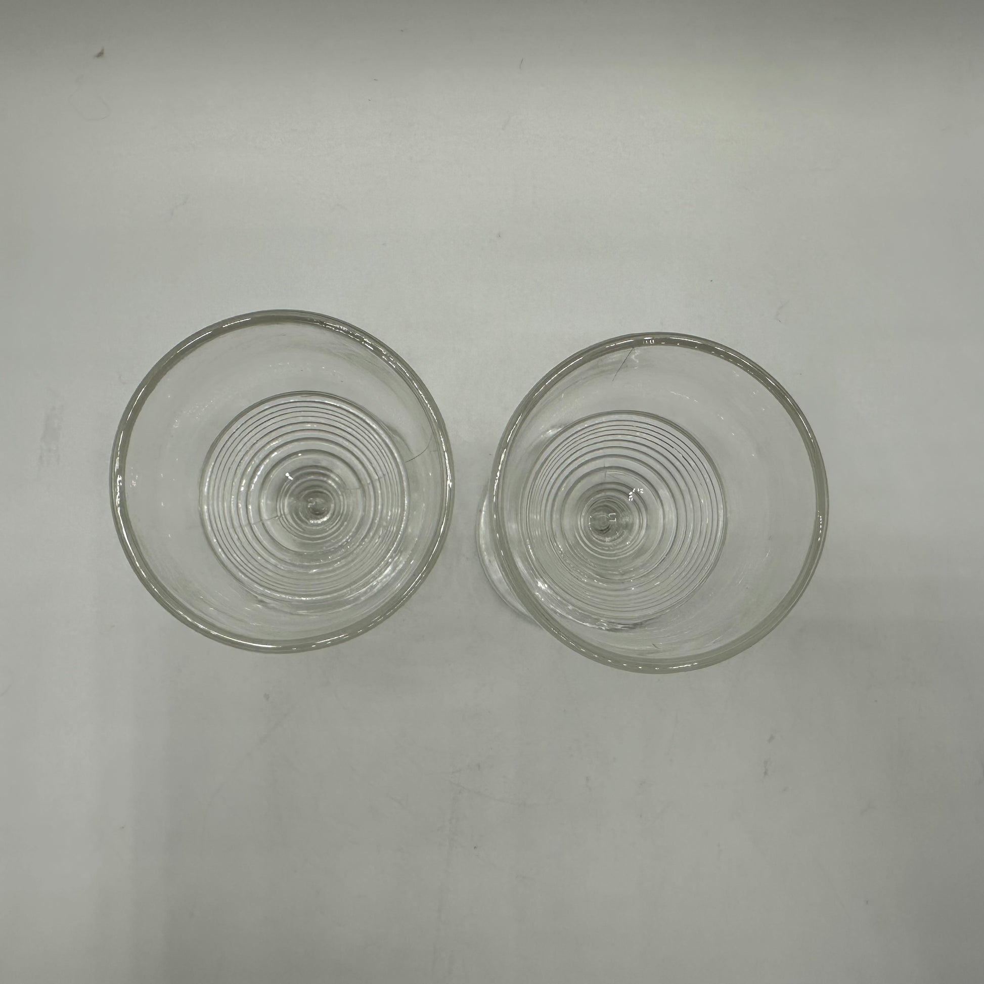 This set includes two cordial glasses from Anchor Hocking, showcasing the elegant Manhattan pattern characterized by distinctive rings around the base and stem. These vintage glasses are in excellent pre-owned condition, making them a delightful addition to any glassware collection.