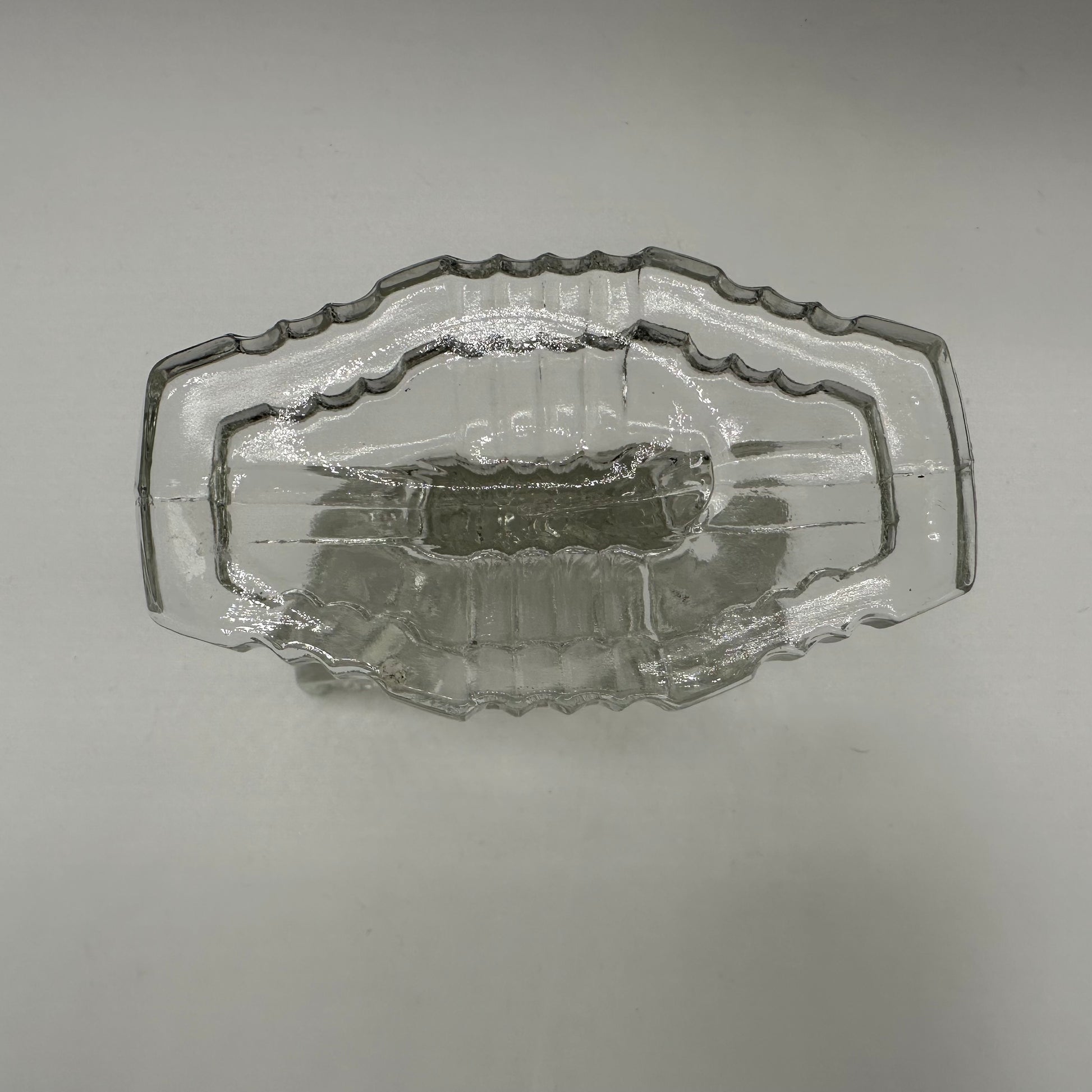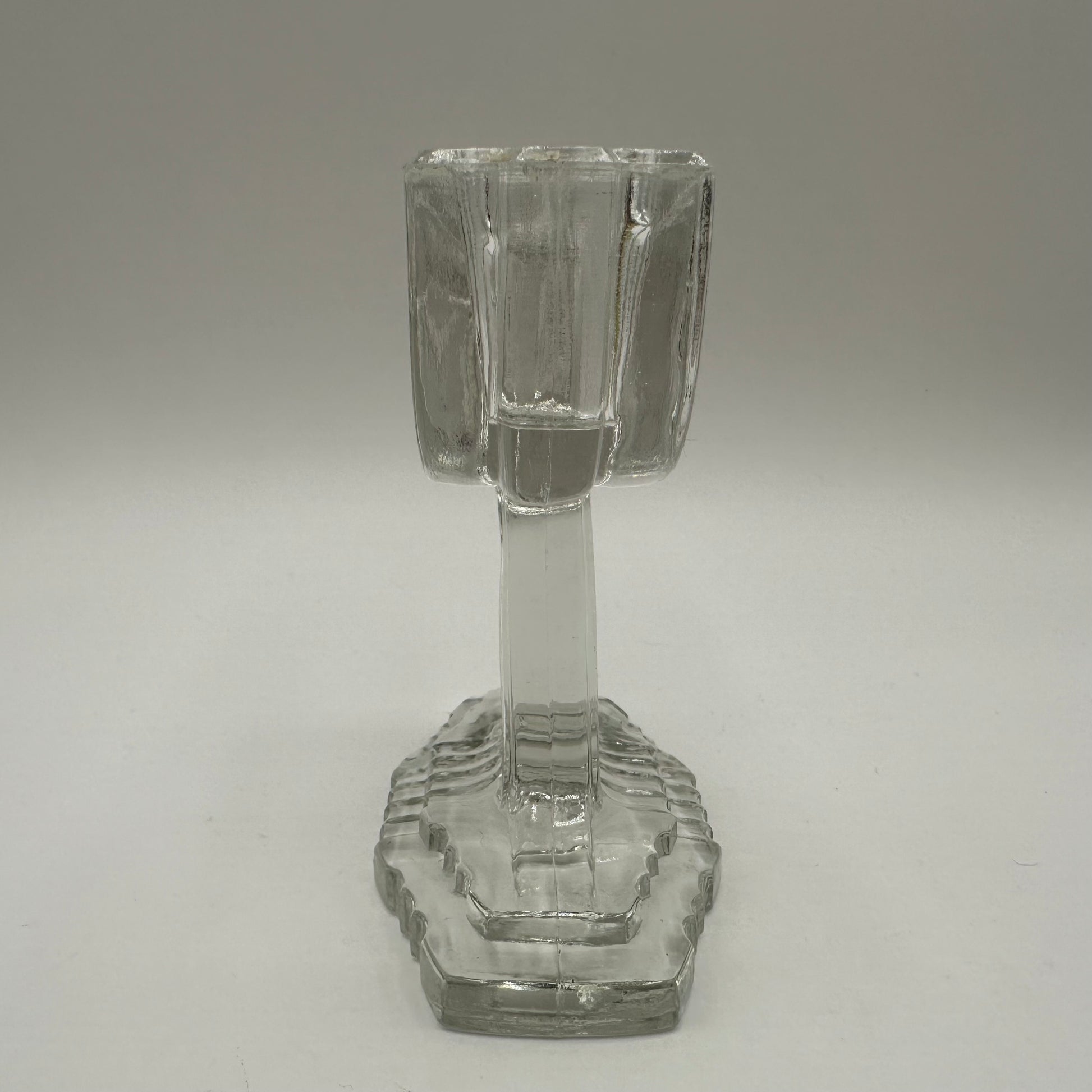 This is a lovely double candlestick from Anchor Hocking. It features the Queen Mary pattern in clear glass. The candlestick holder is in excellent vintage pre-owned condition.
