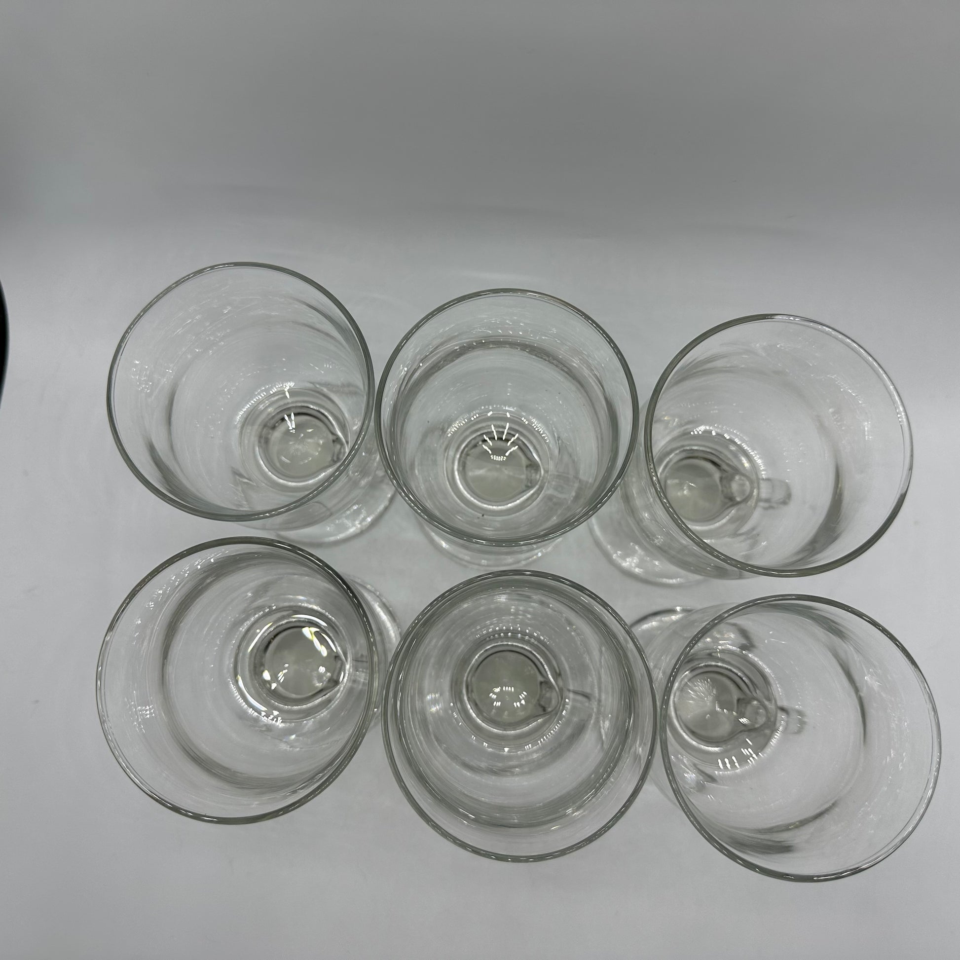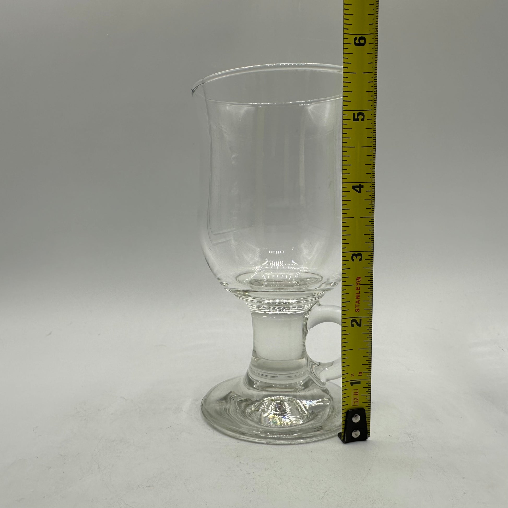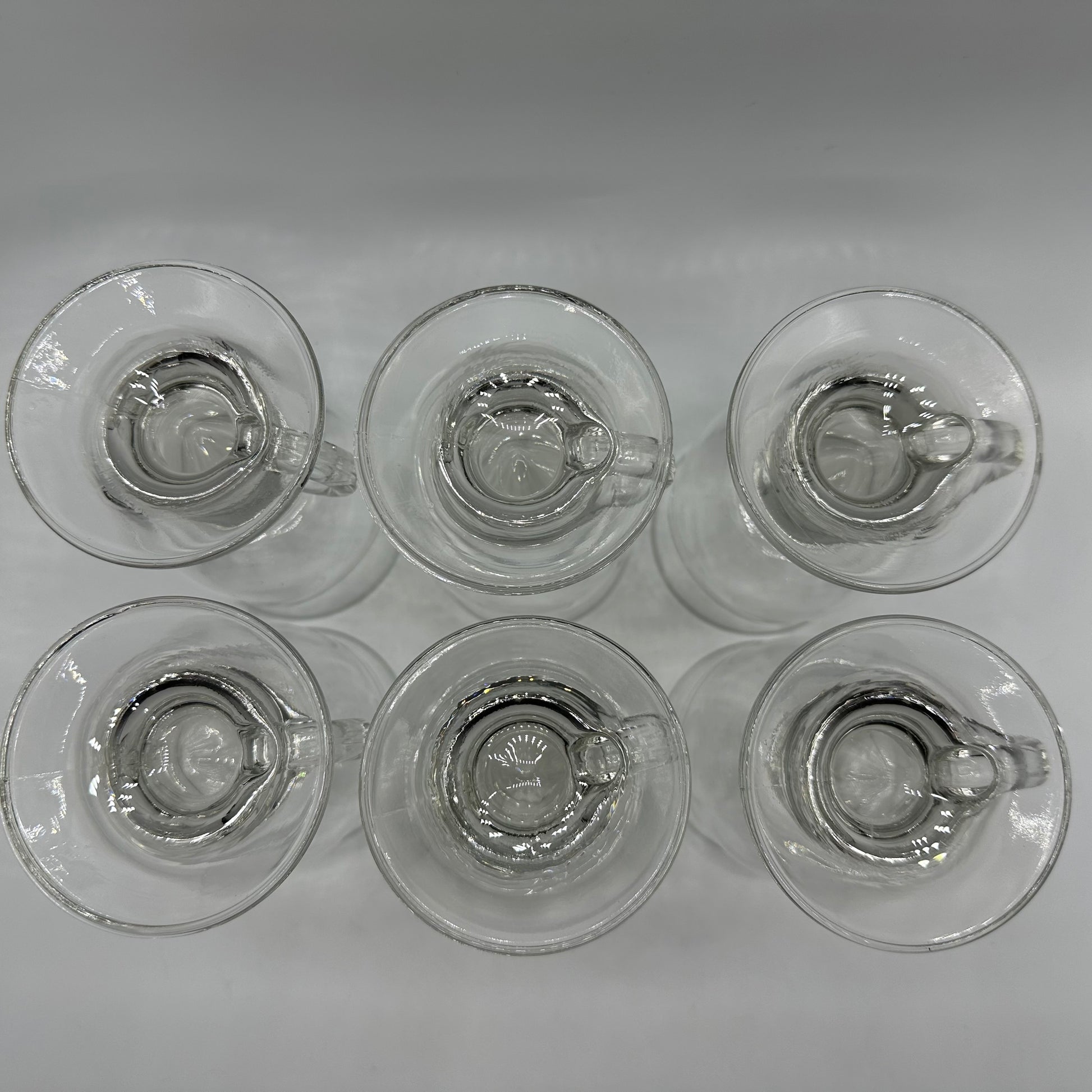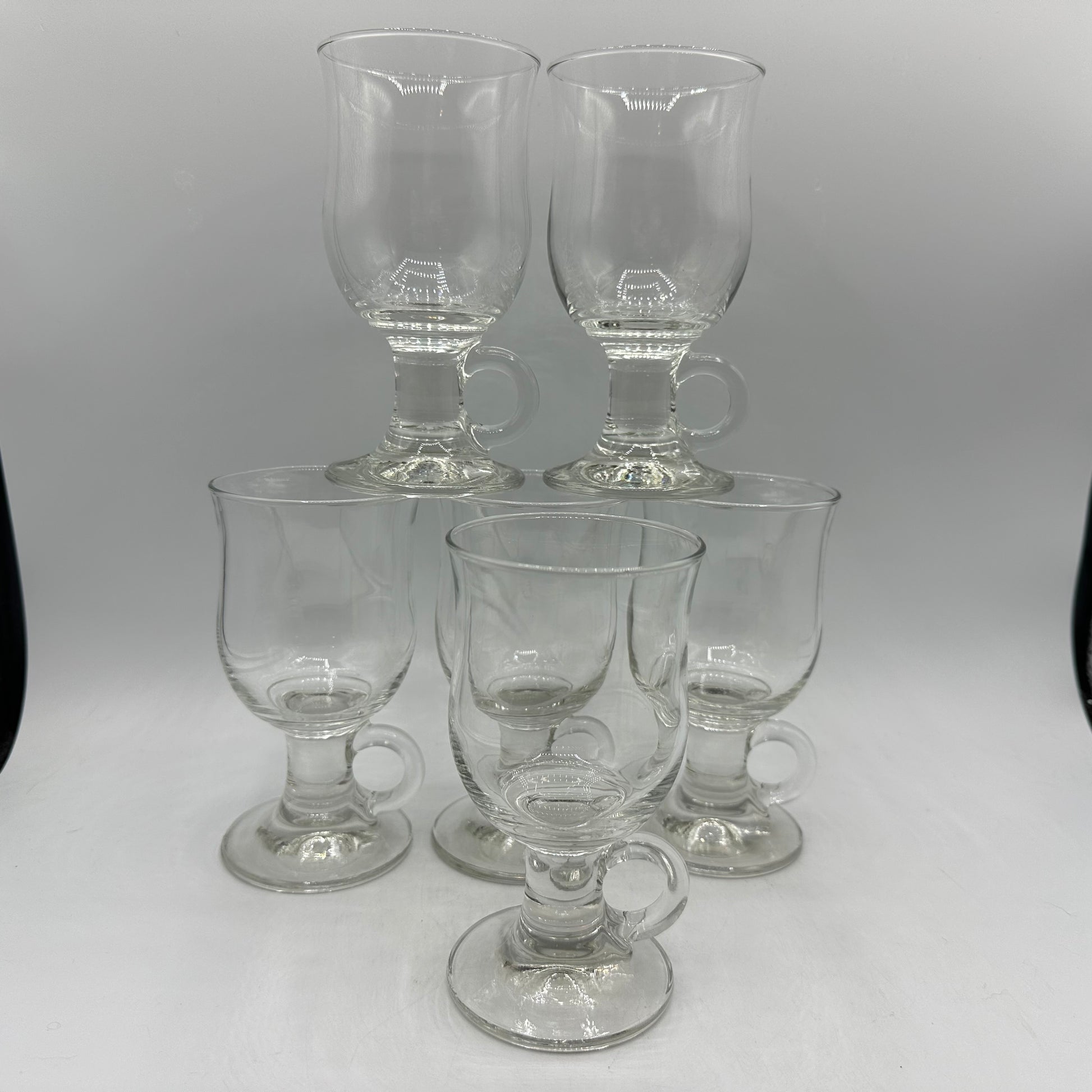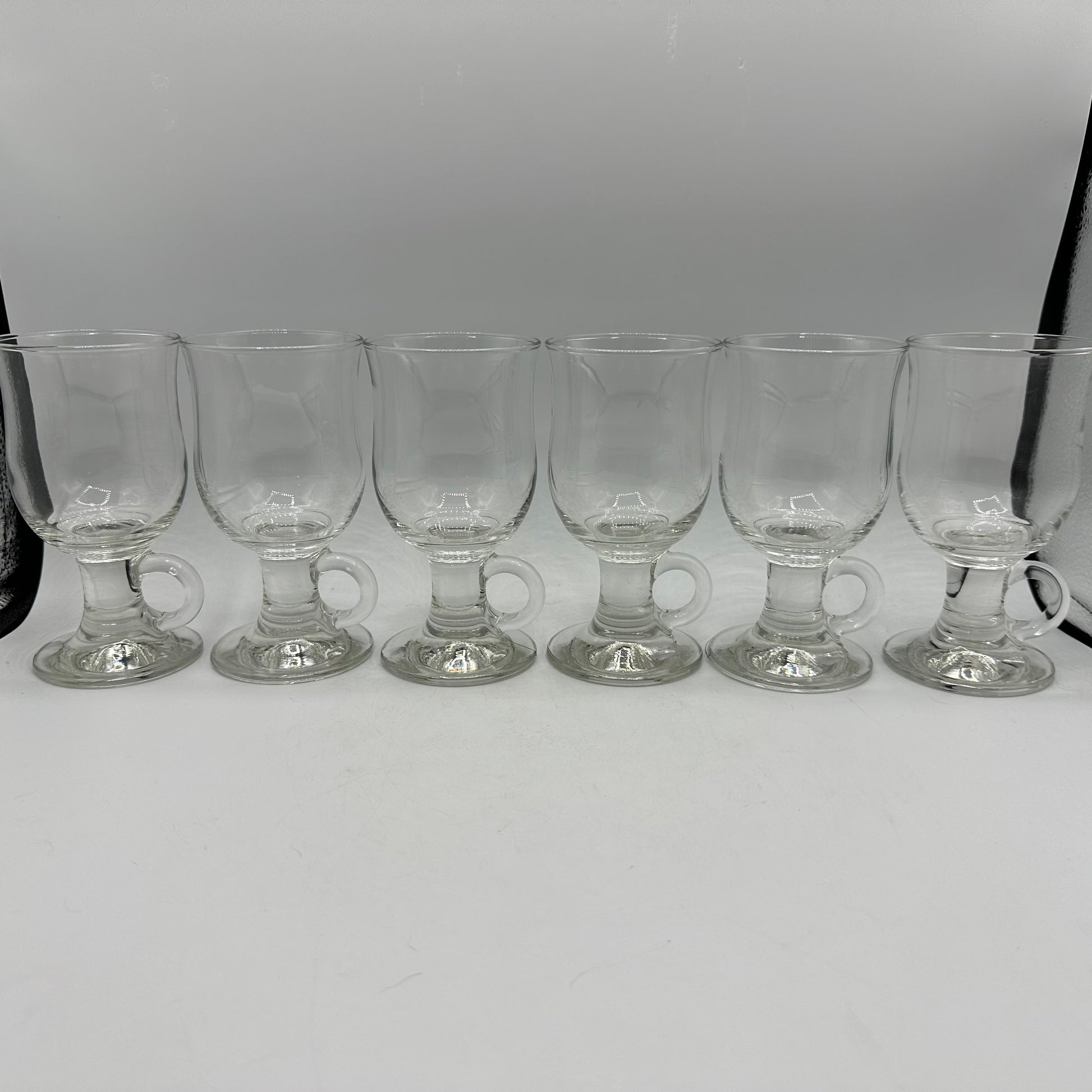 A wonderful set of 6 Irish coffee mugs. They feature a finger loop and are clear in color. The mugs are in excellent vintage used condition.