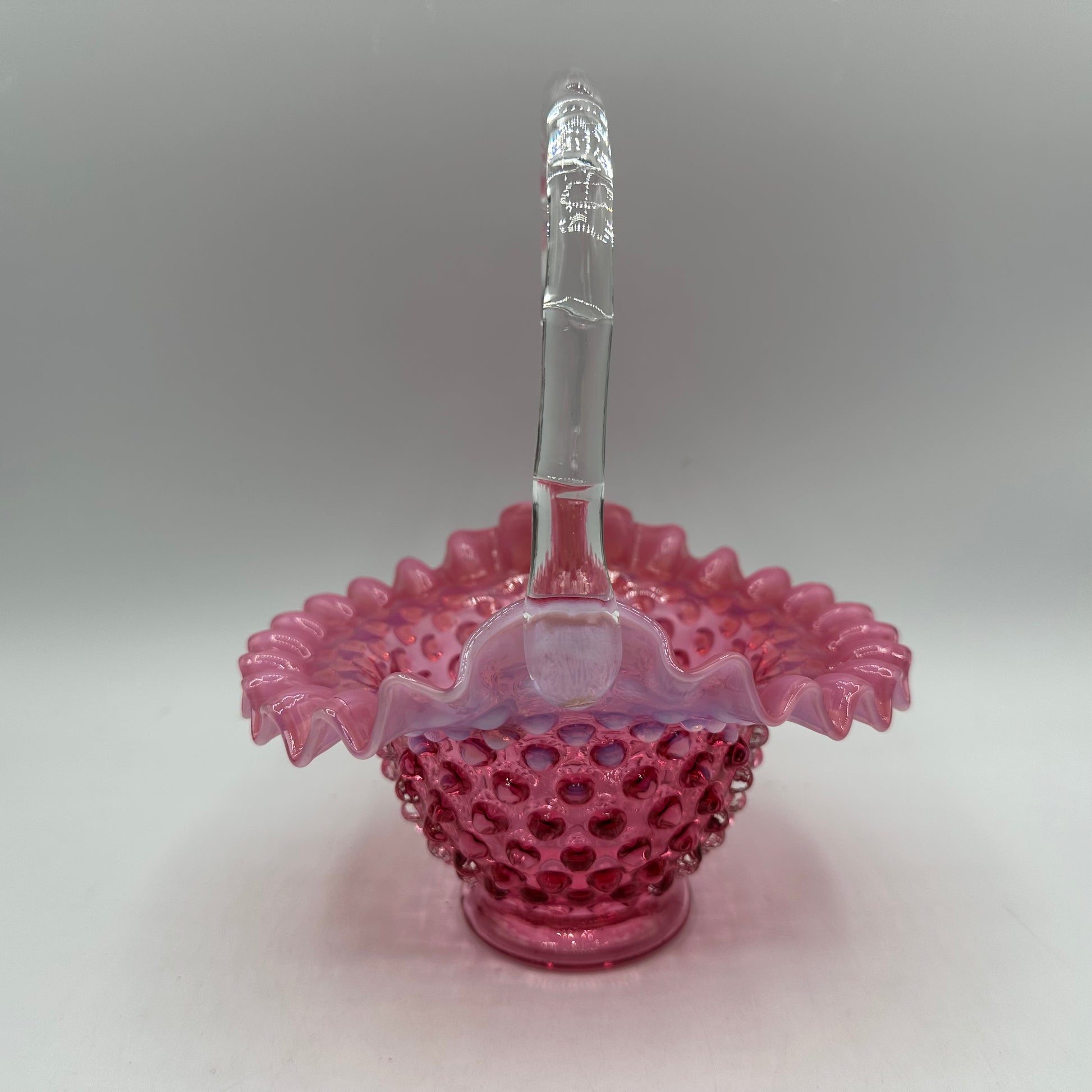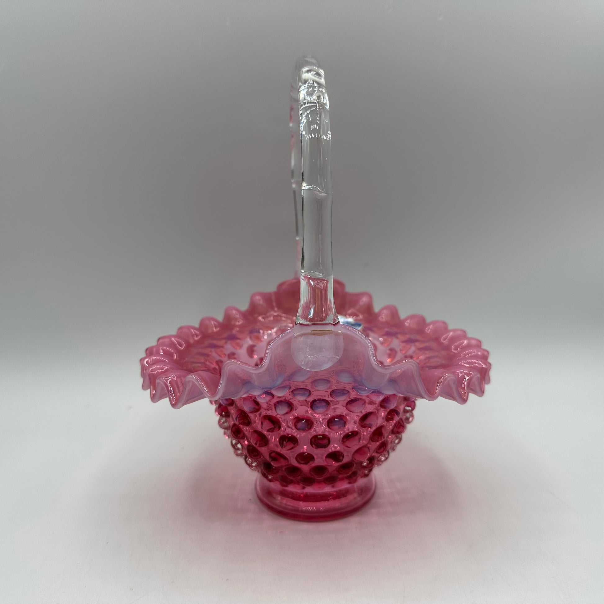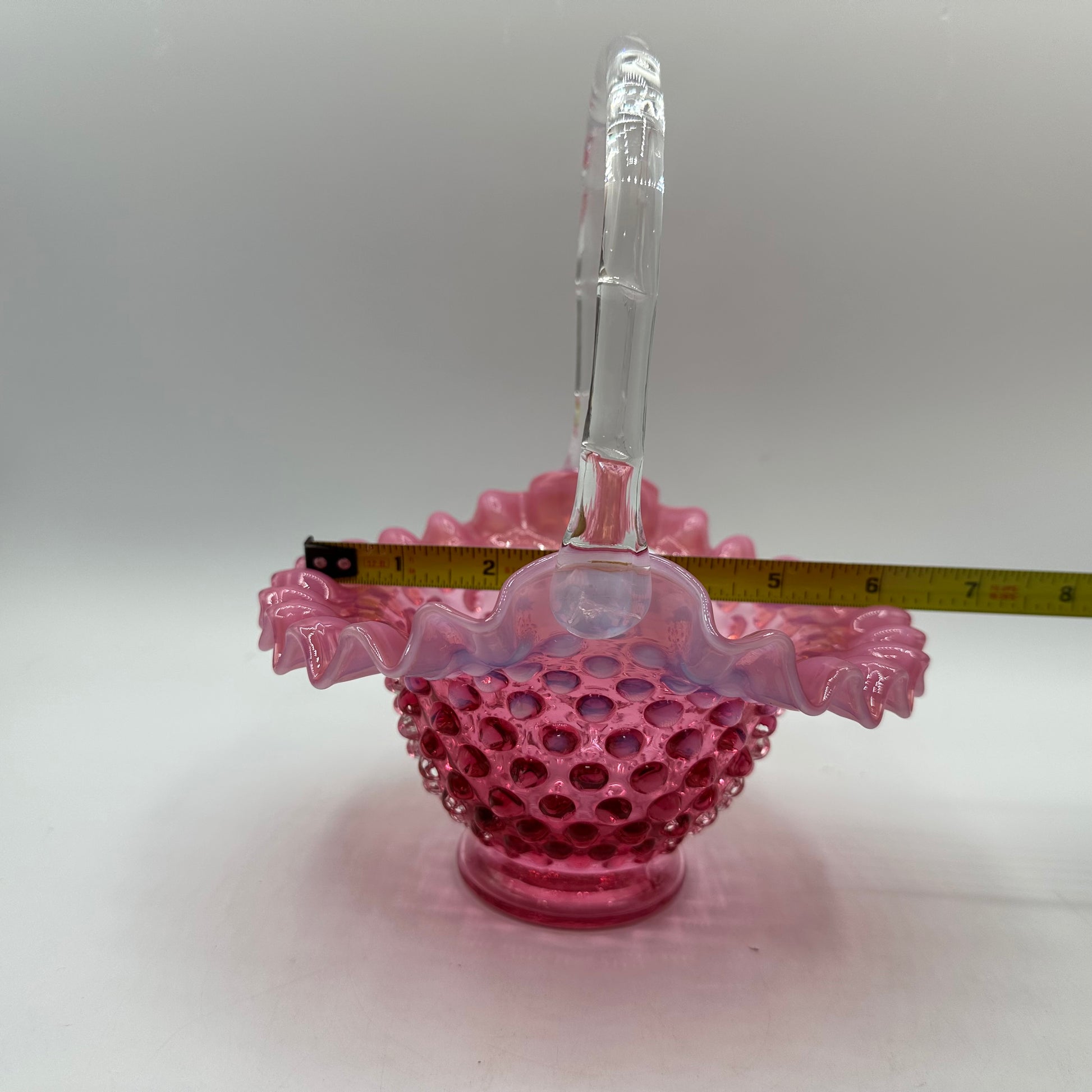 Fenton Cranberry Opalescent Hobnail Basket 7 1/2" Pre-Logo