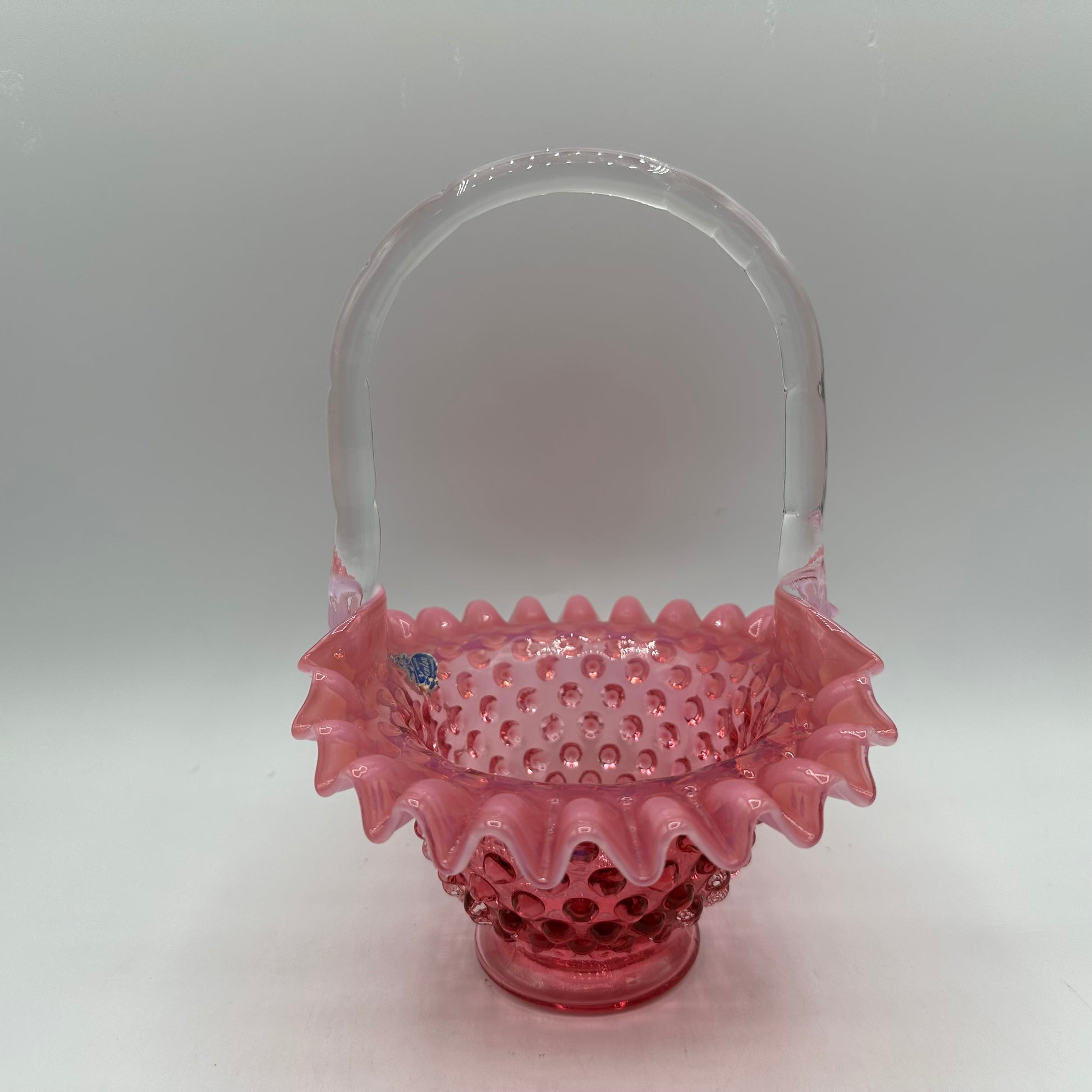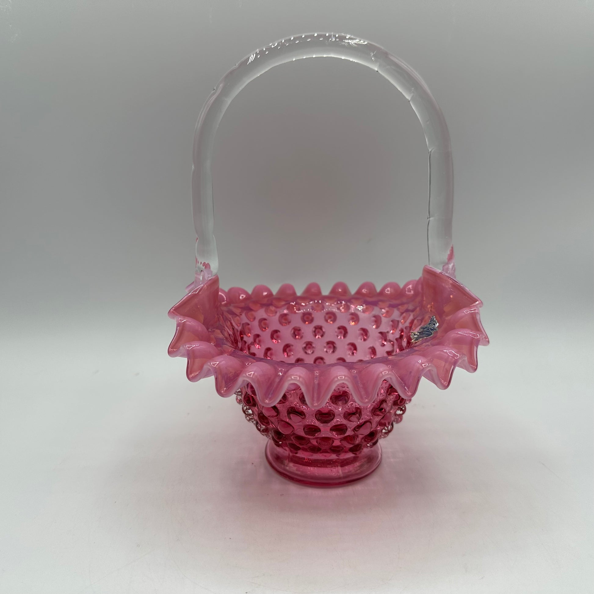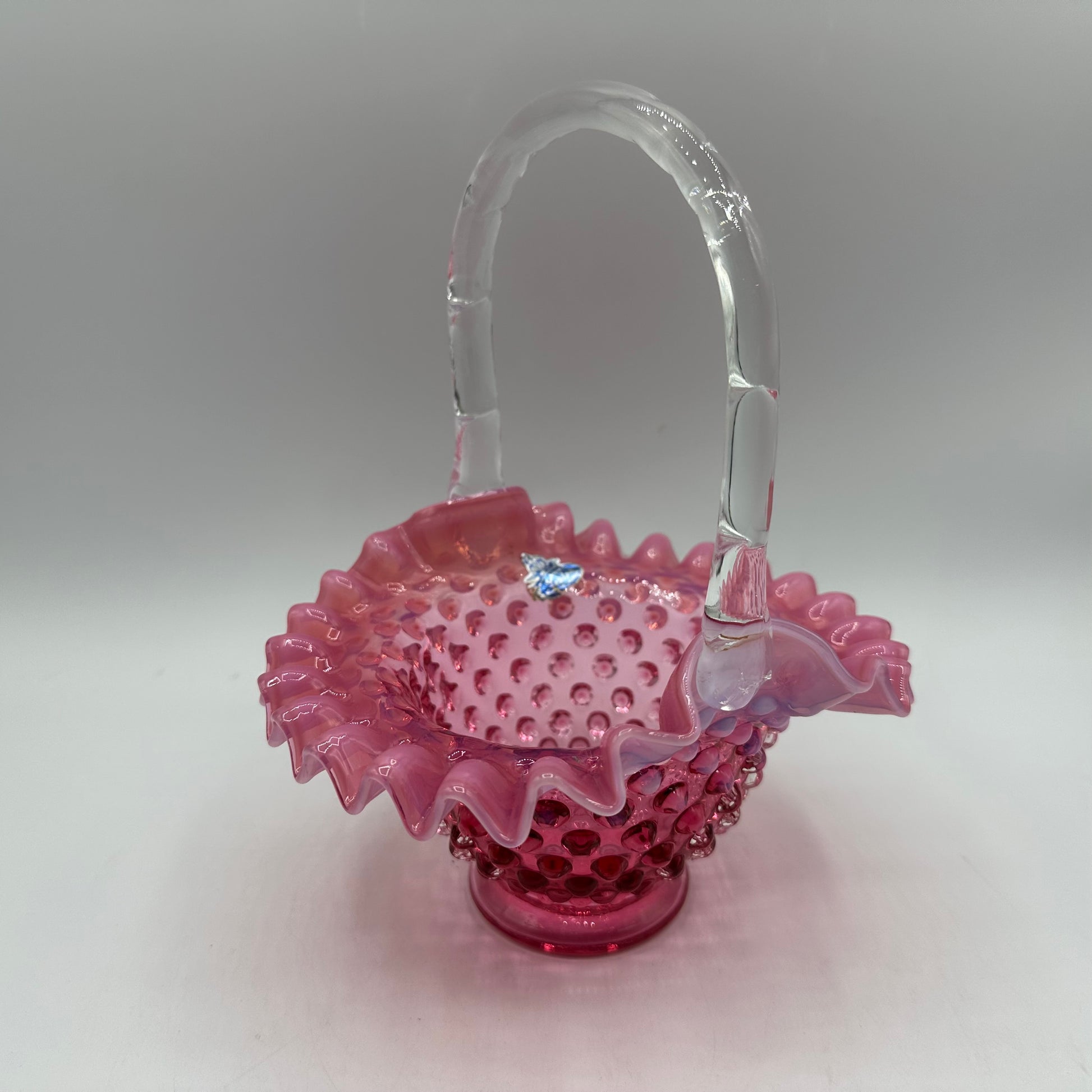 Fenton Cranberry Opalescent Hobnail Basket 7 1/2" Pre-Logo