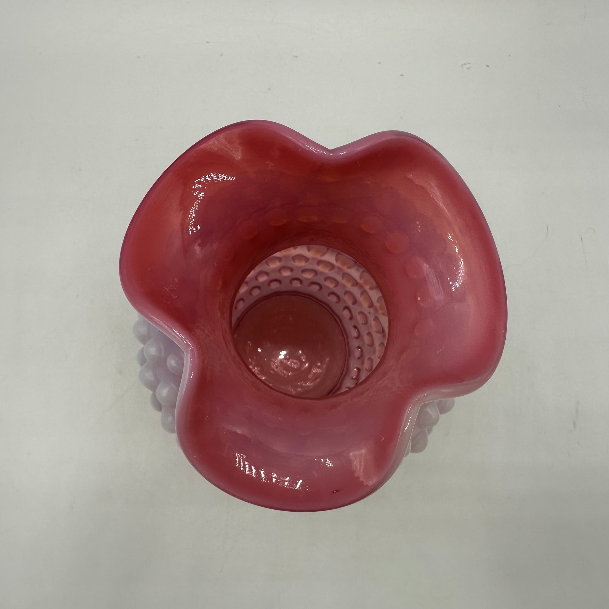 Fenton Cranberry Opalescent Hobnail Crimped Triangle Vase 5" Tall