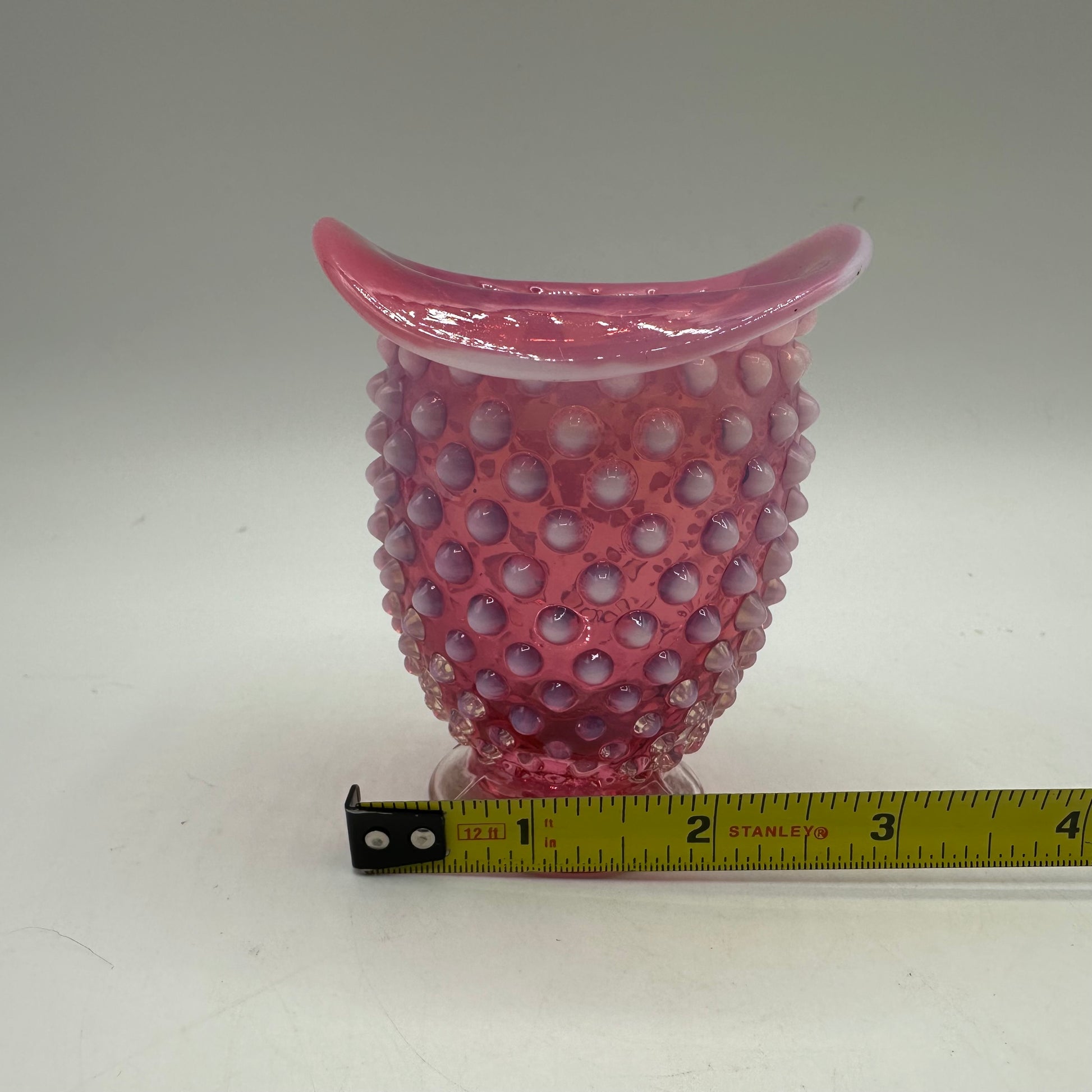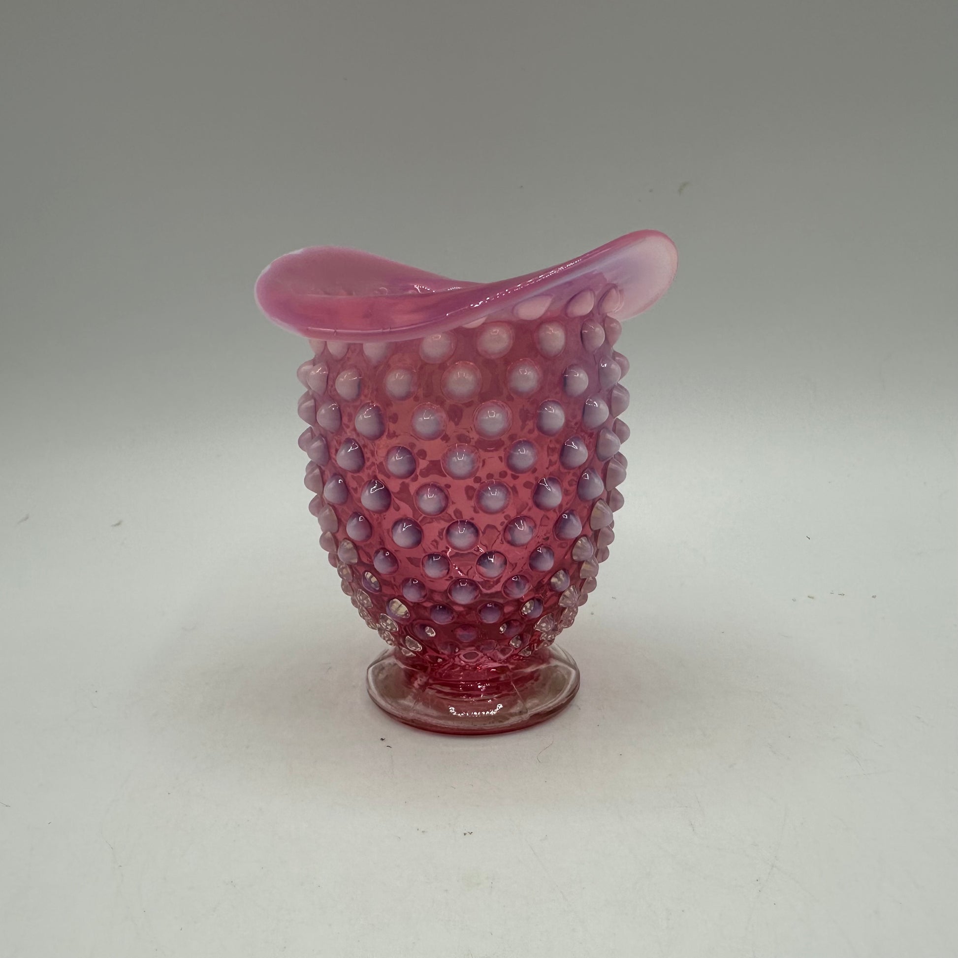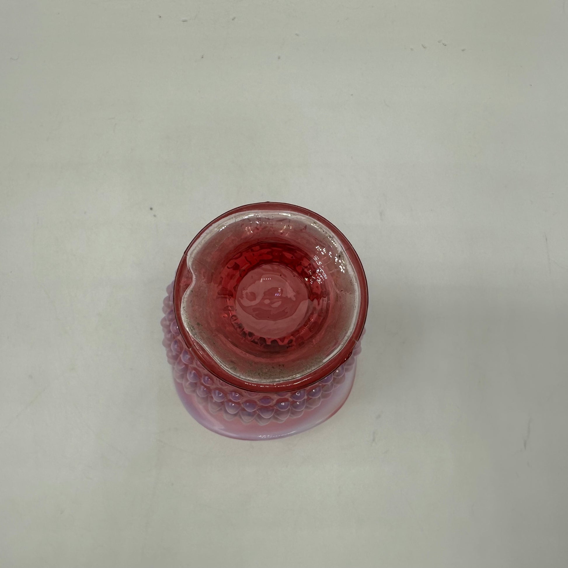 Fenton Cranberry Opalescent Hobnail Rimmed Vase, 3.5"