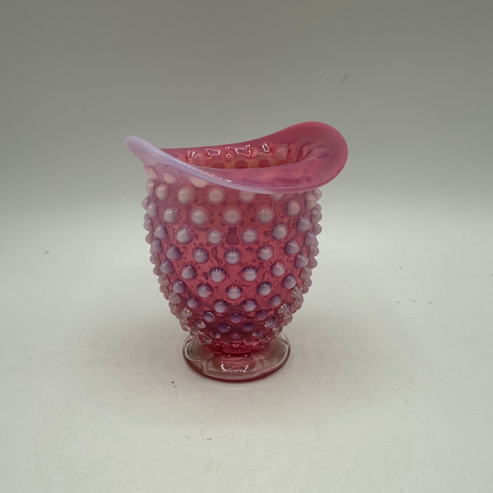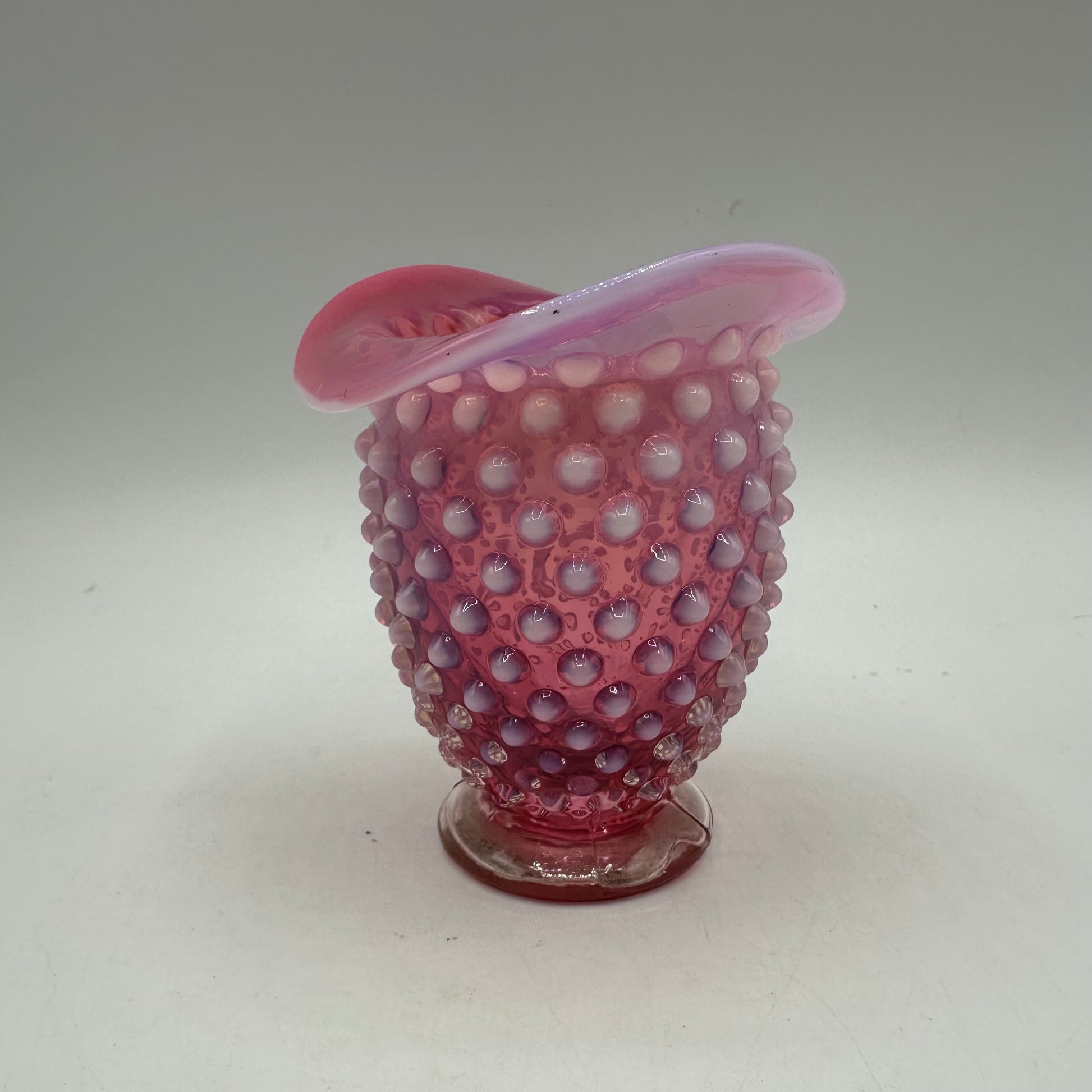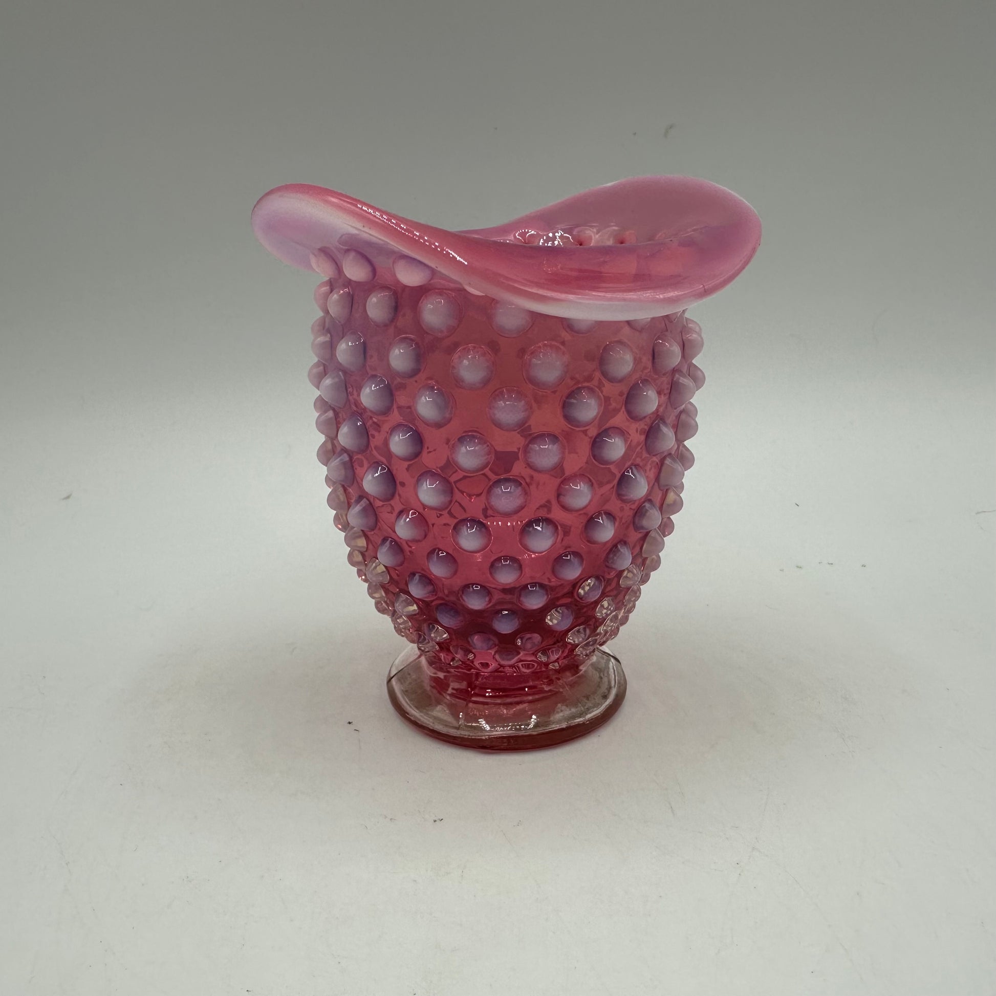 Fenton Cranberry Opalescent Hobnail Rimmed Vase, 3.5"