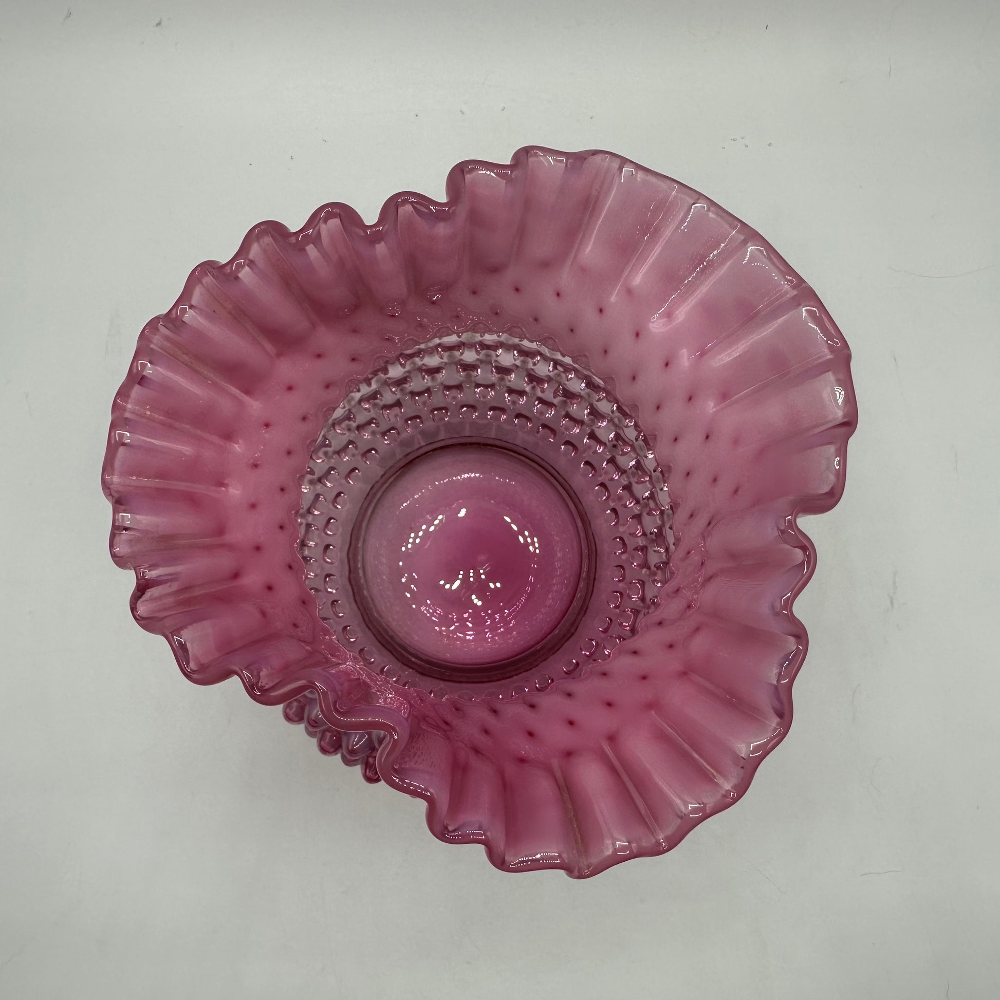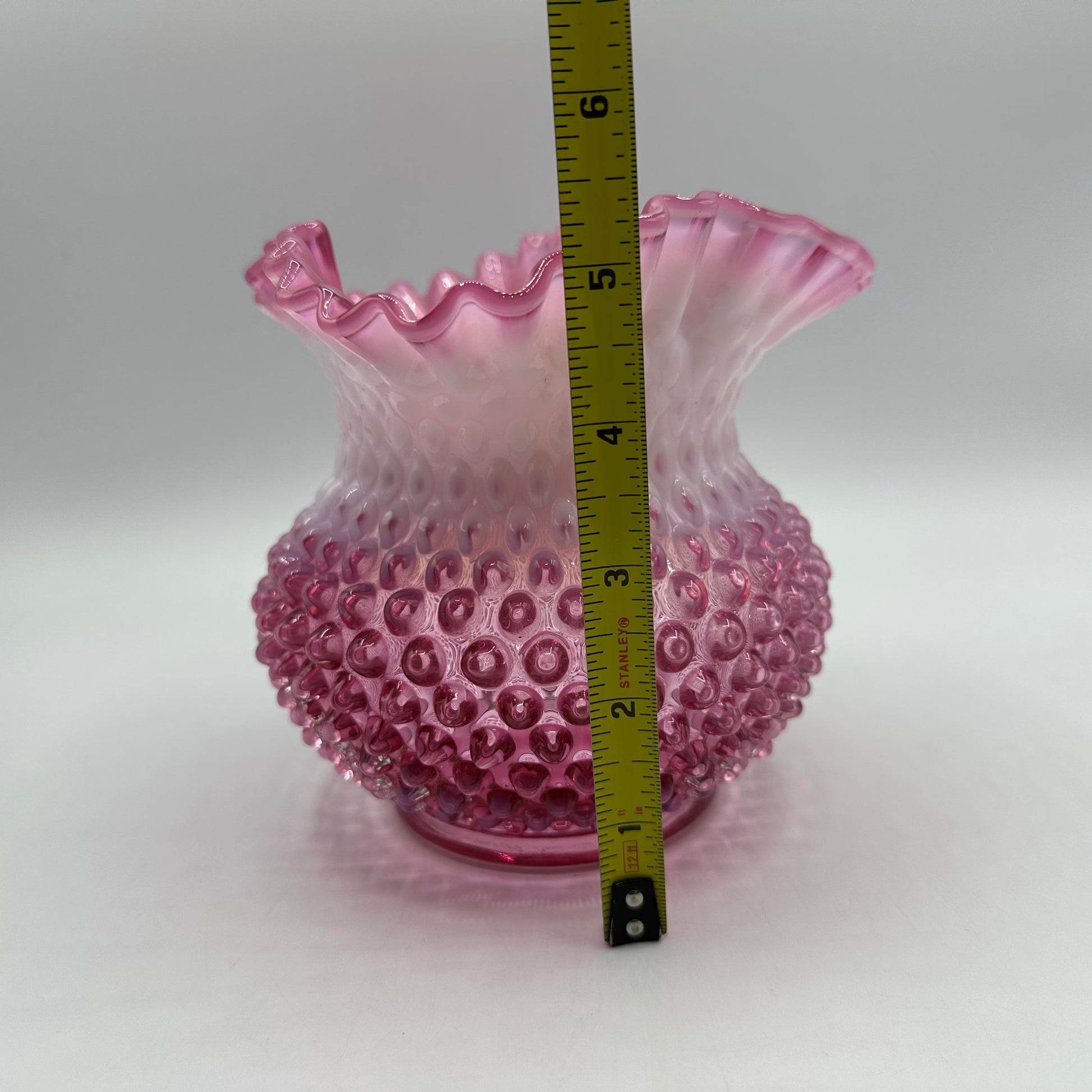 Fenton Cranberry Opalescent Hobnail Ruffled Vase 5.5" Tall