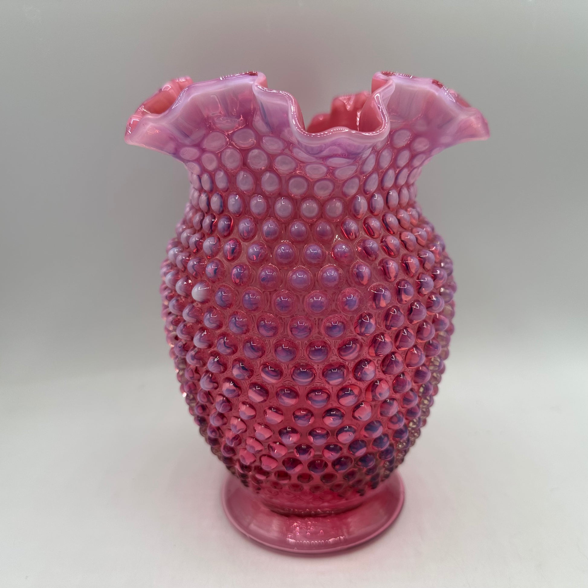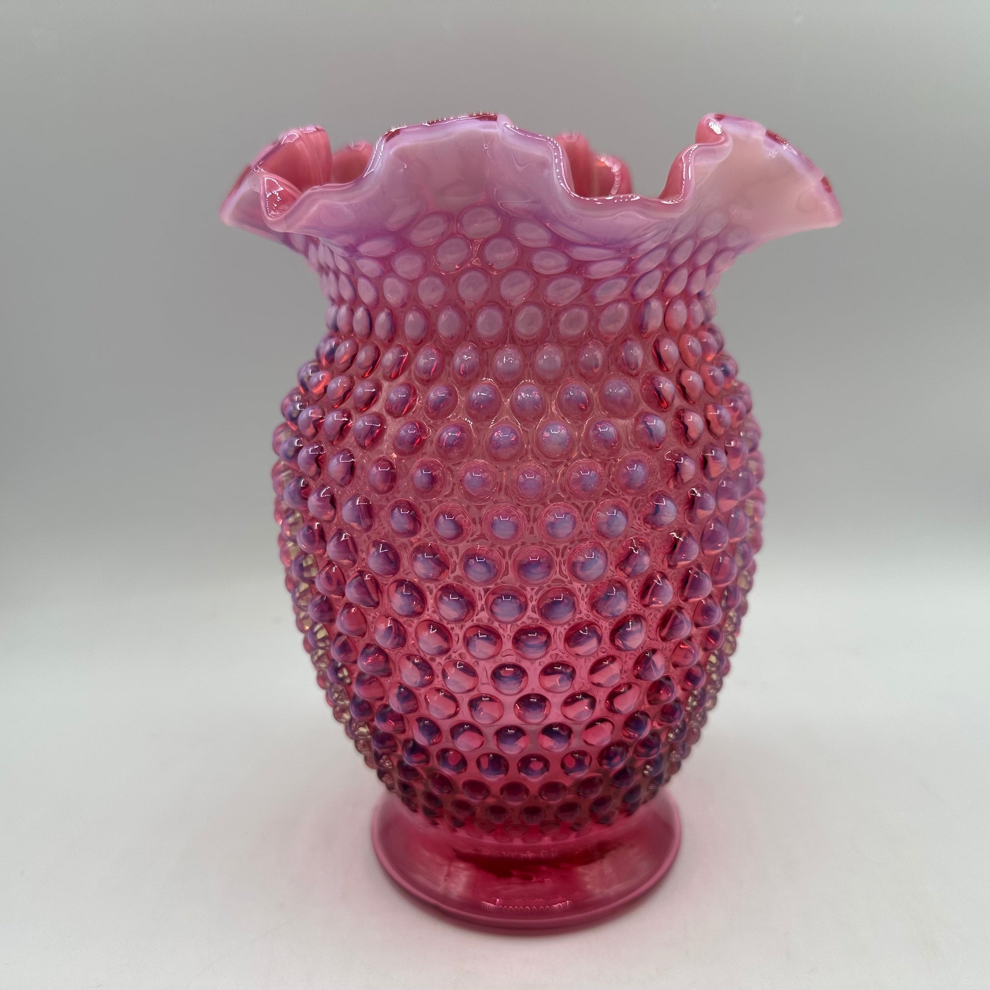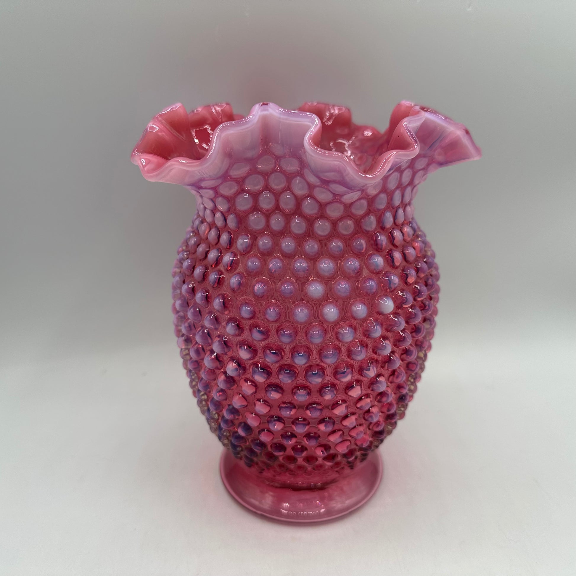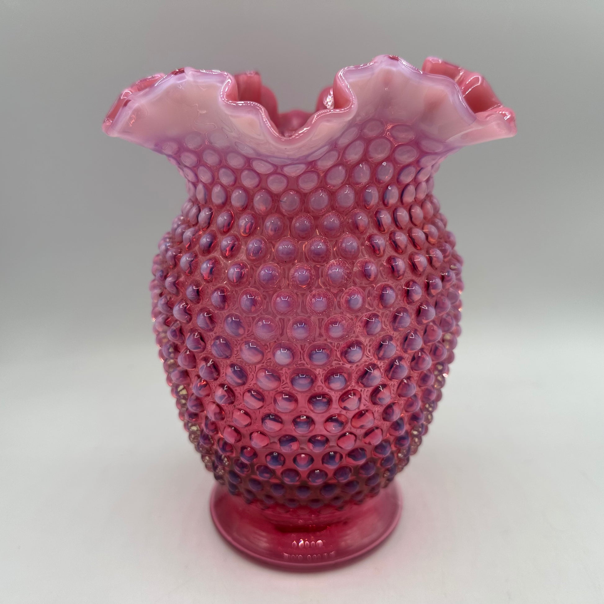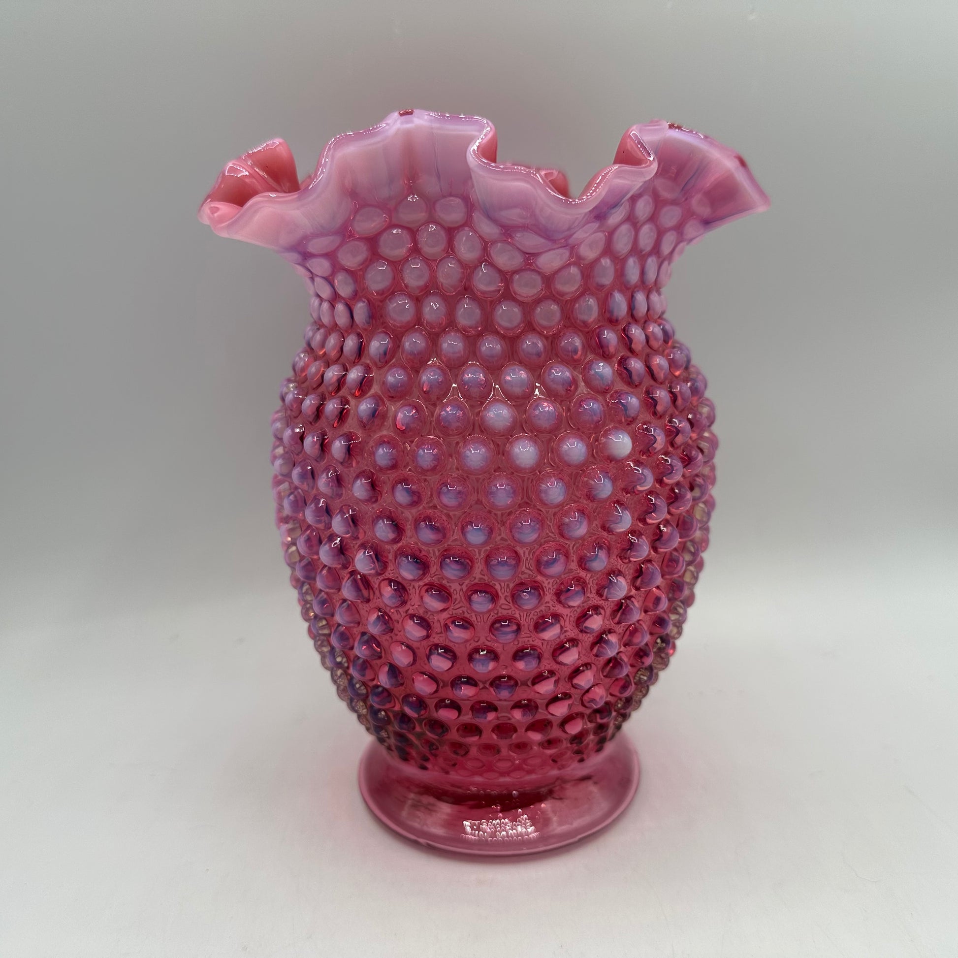 This is a wonderful 8" vase from Fenton. It features the hobnail pattern in cranberry opalescent glass. The vase is in excellent vintage pre-condition.