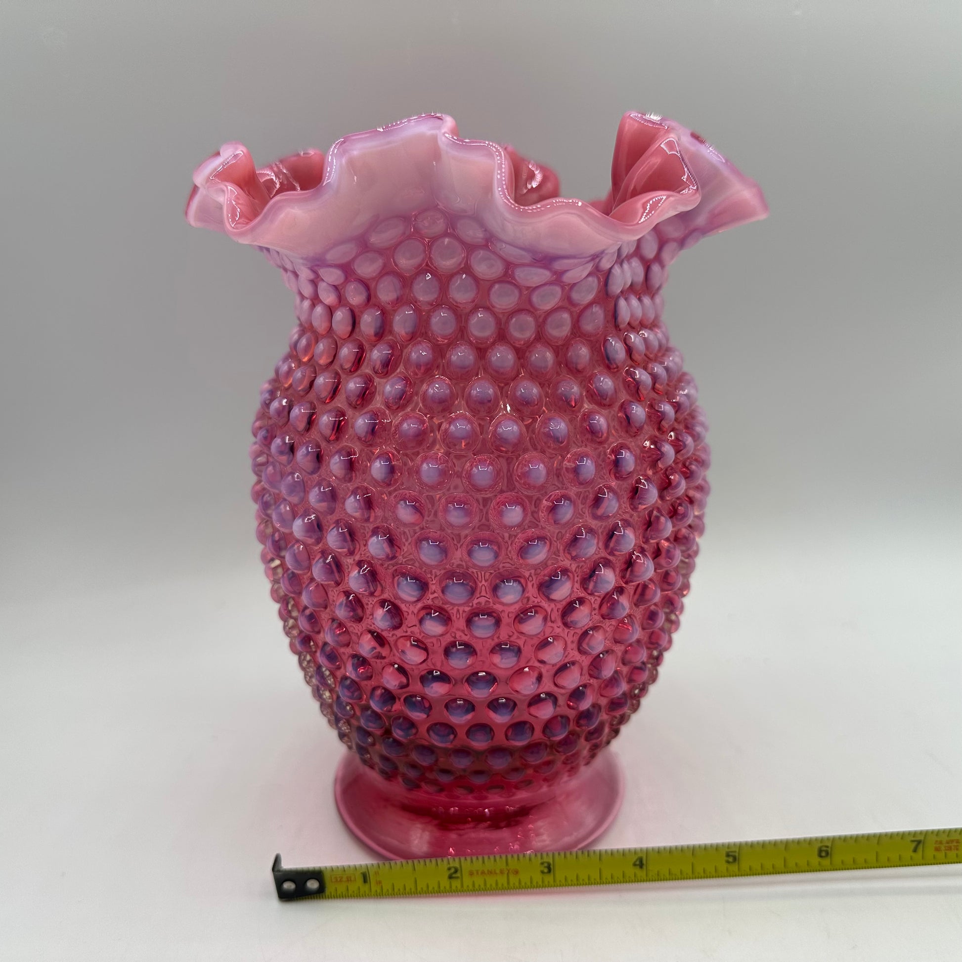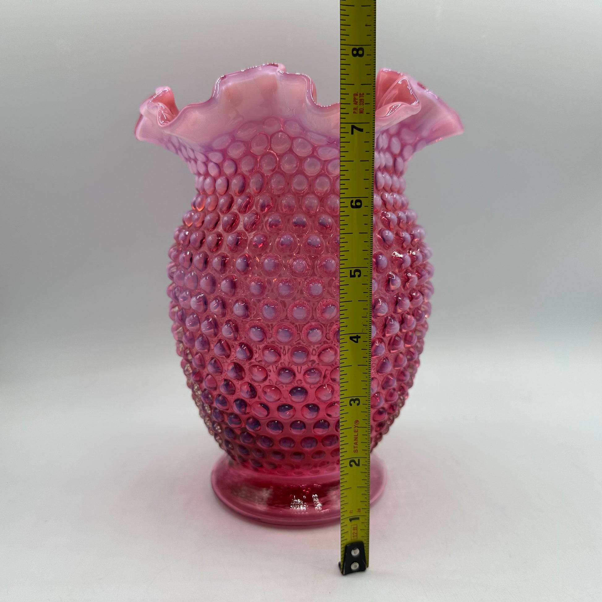 Fenton Cranberry Opalescent Hobnail Ruffled Vase, 8"