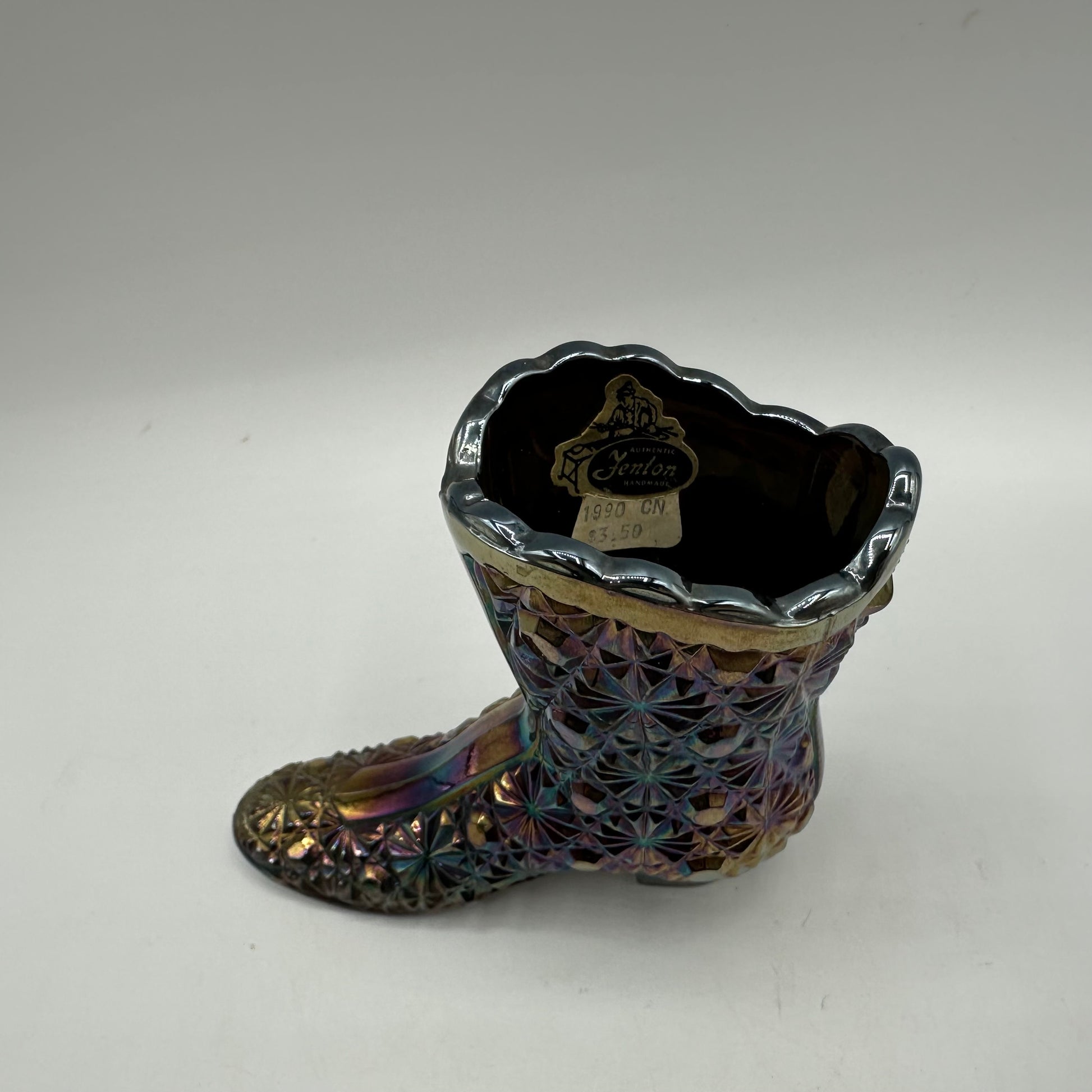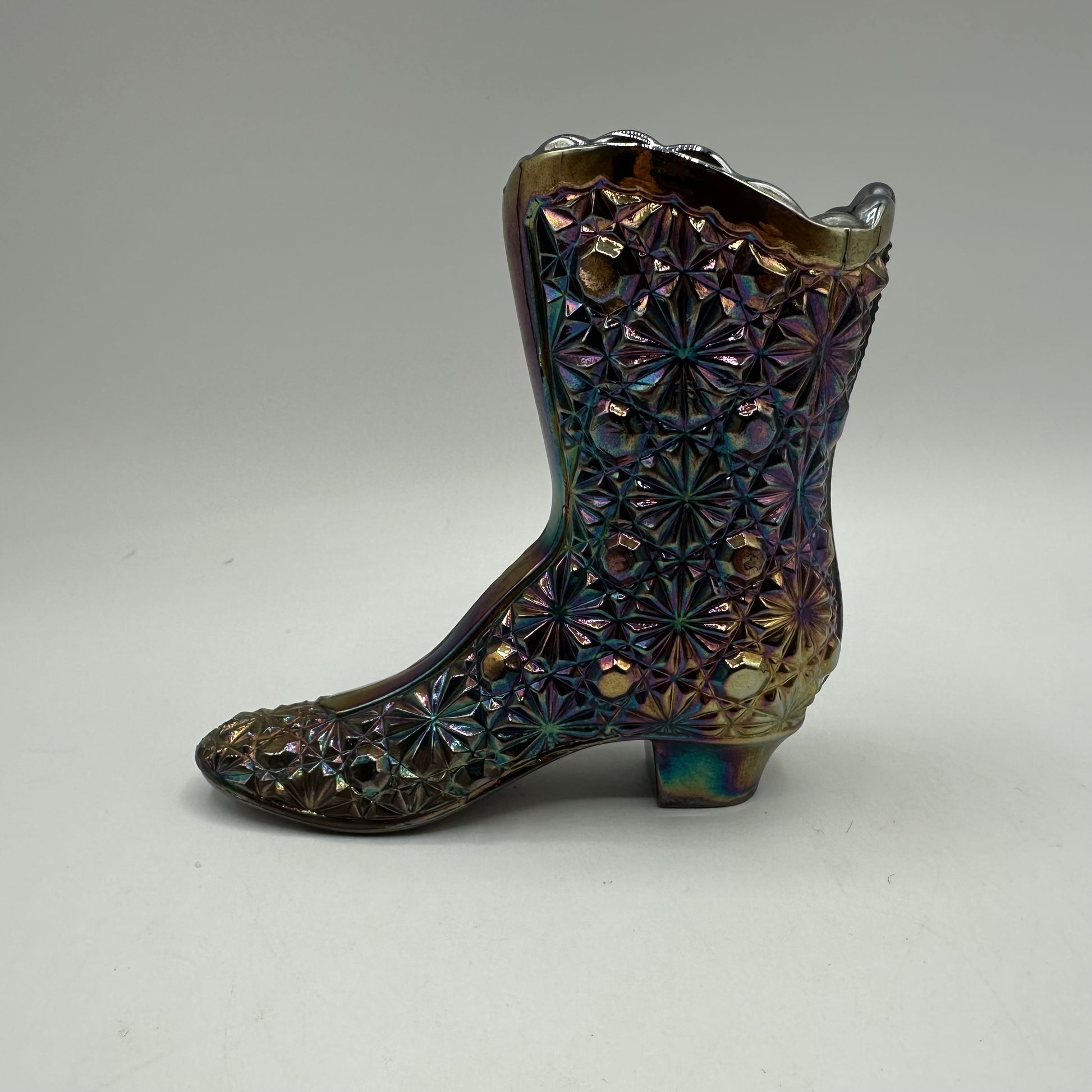 Fenton Iridescent Carnival Boot, Daisy & Button Pattern