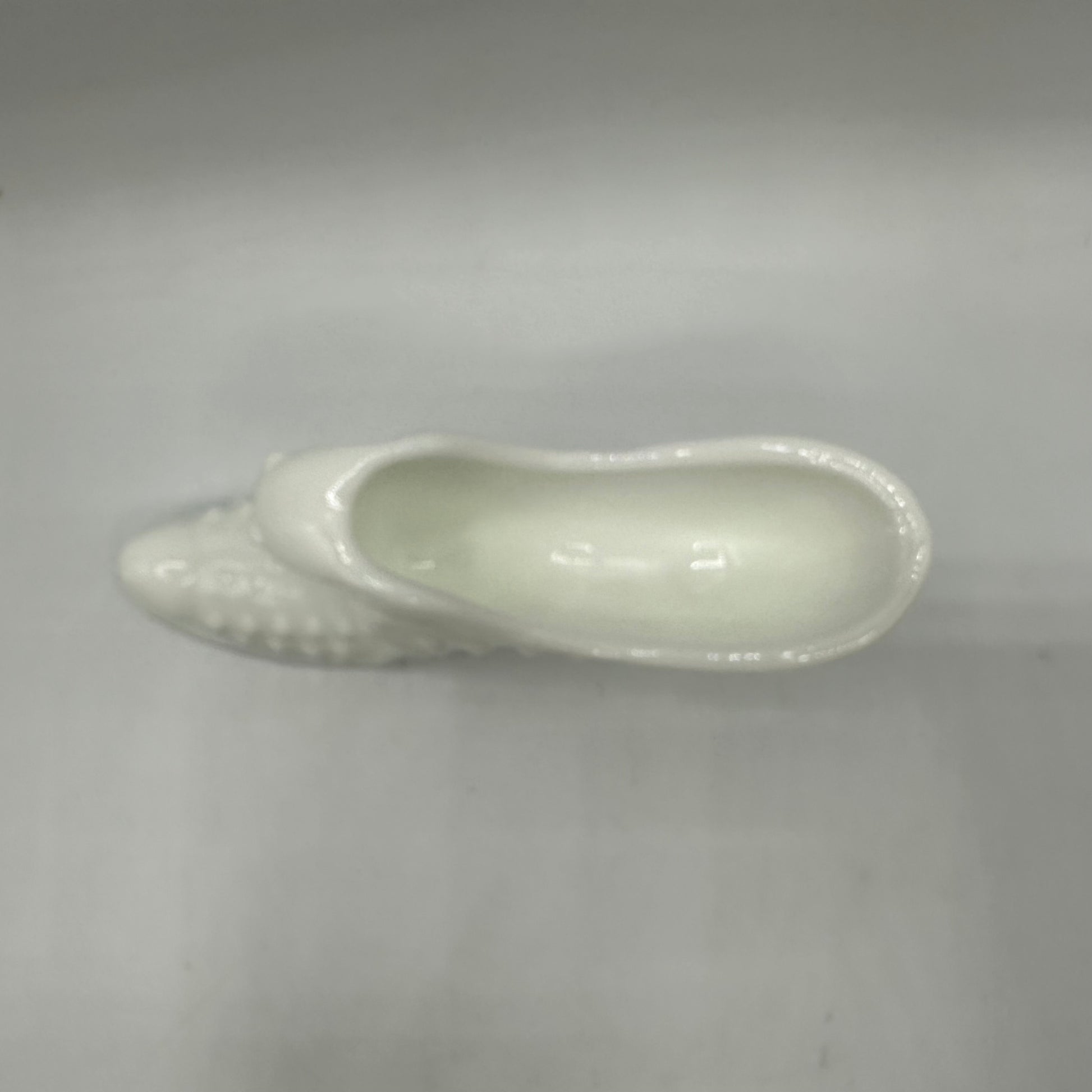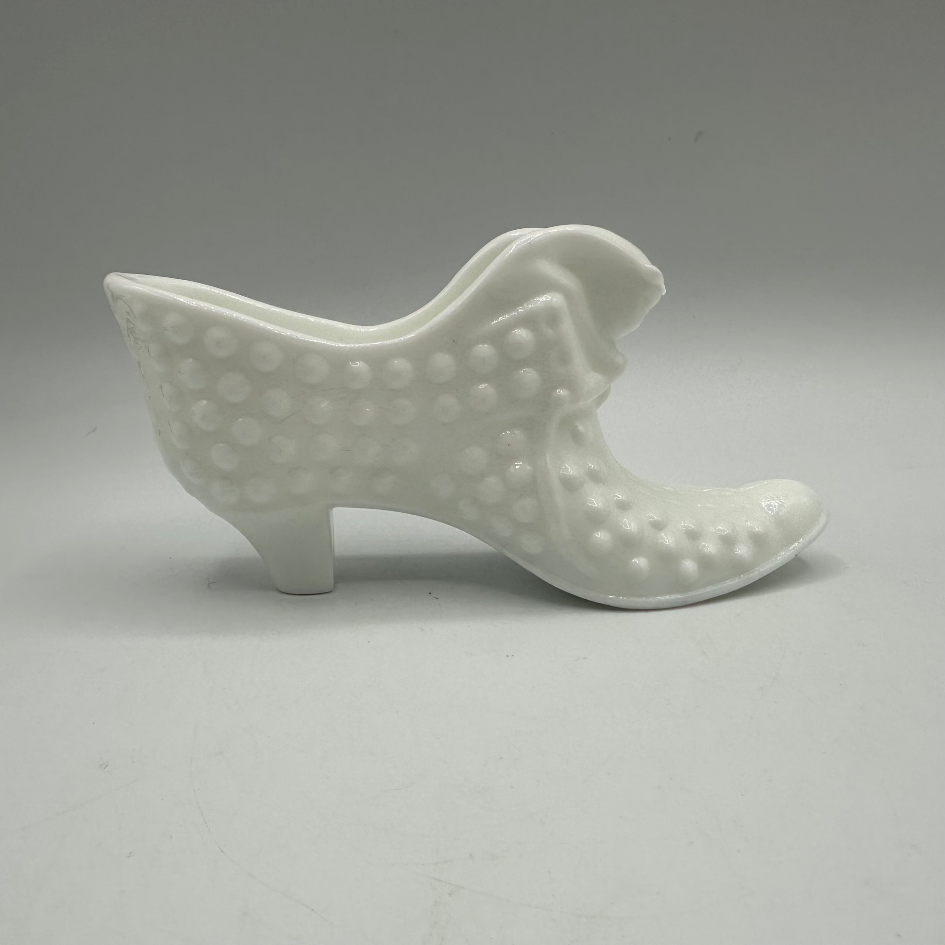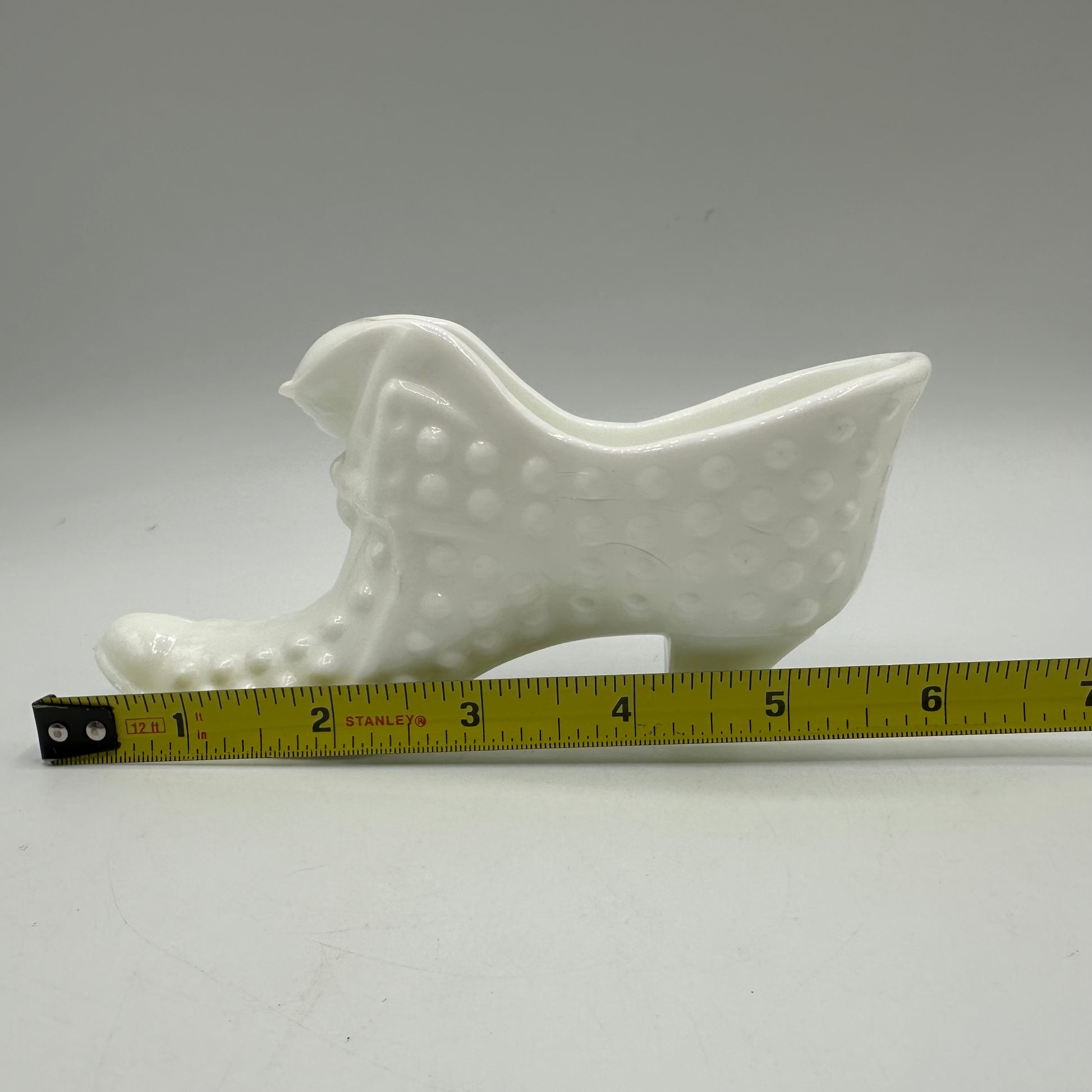 Fenton Milk Glass Hobnail Cat Shoe, Signed