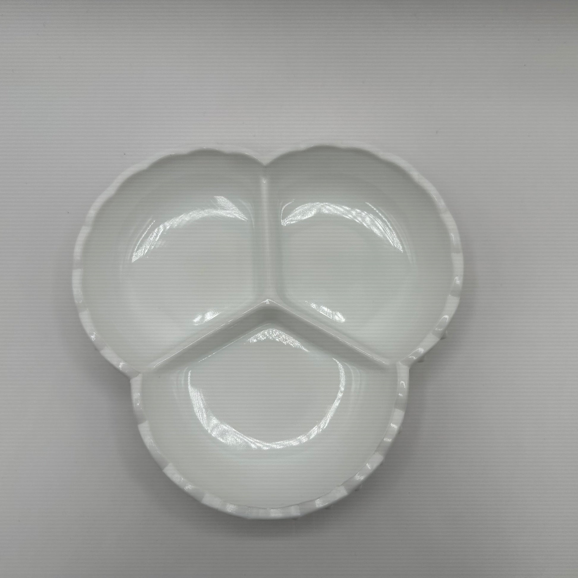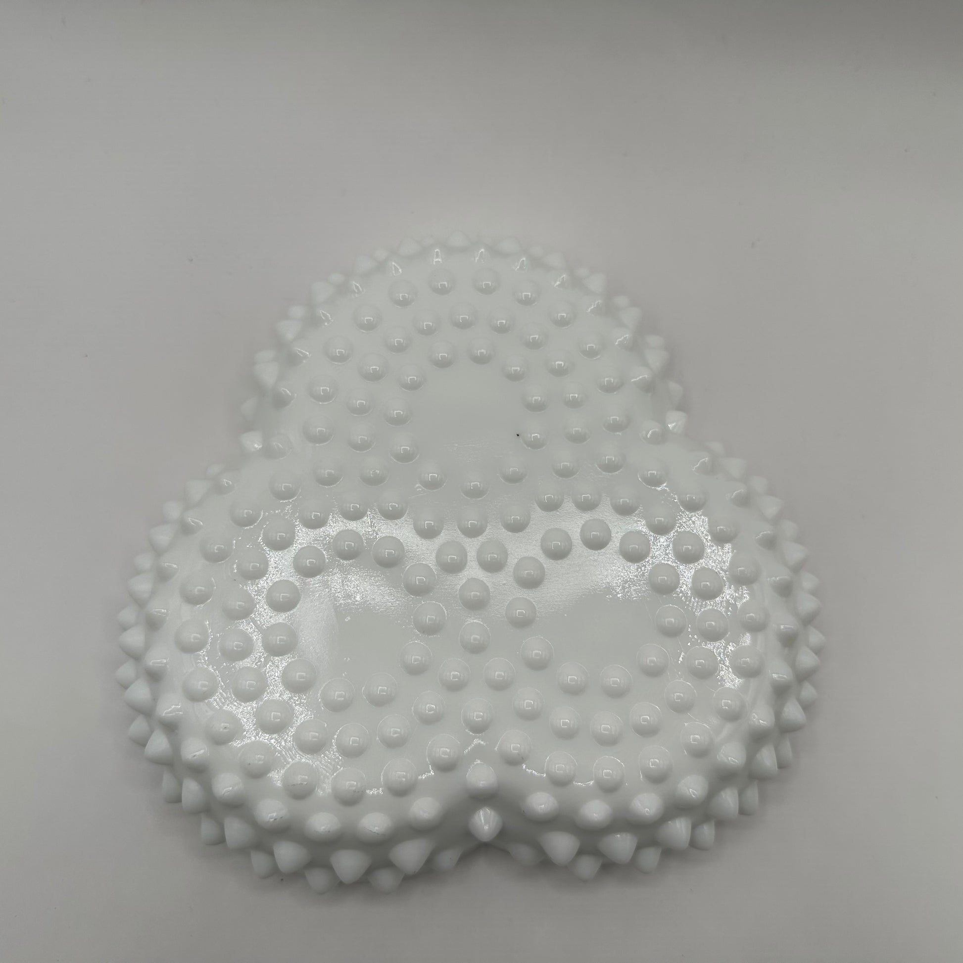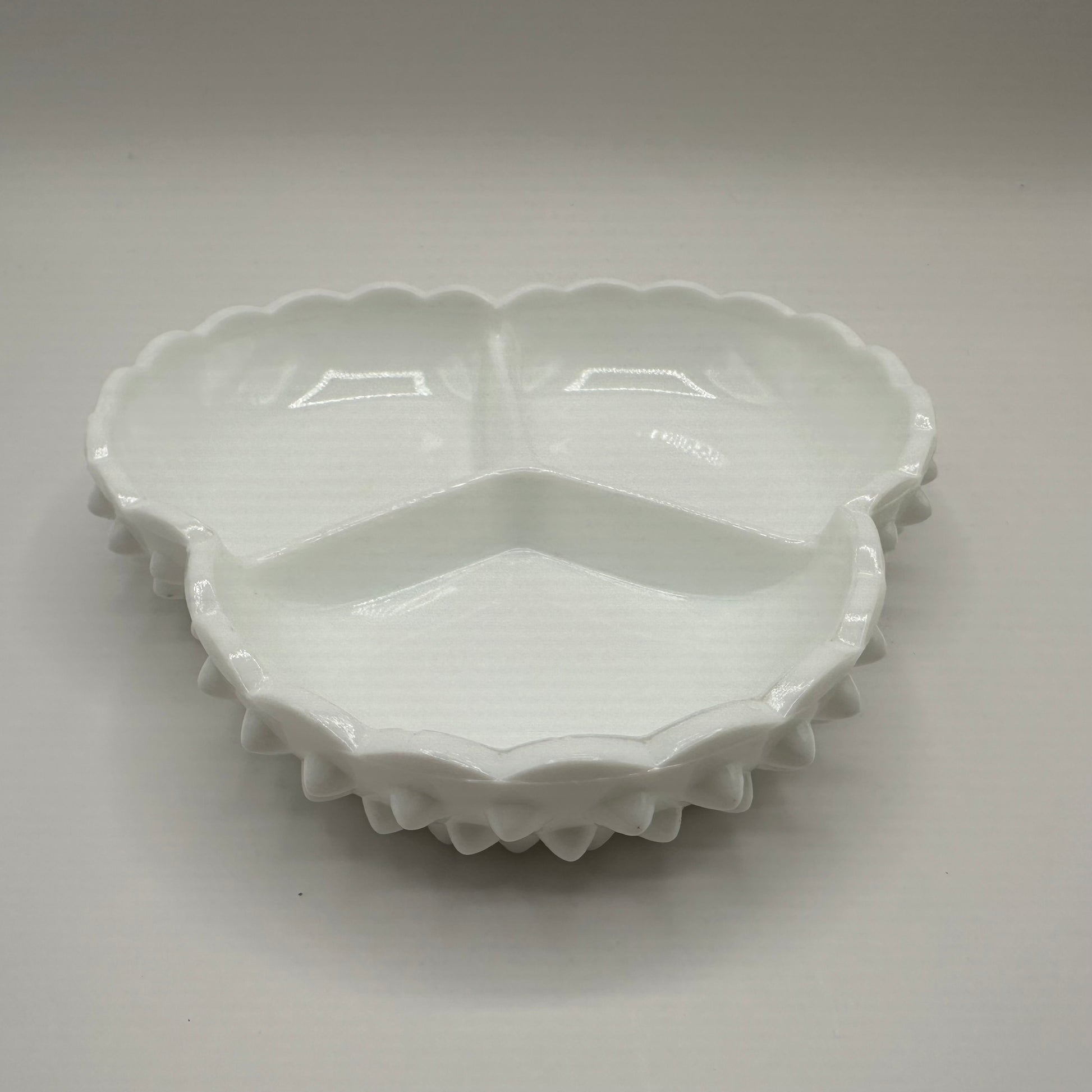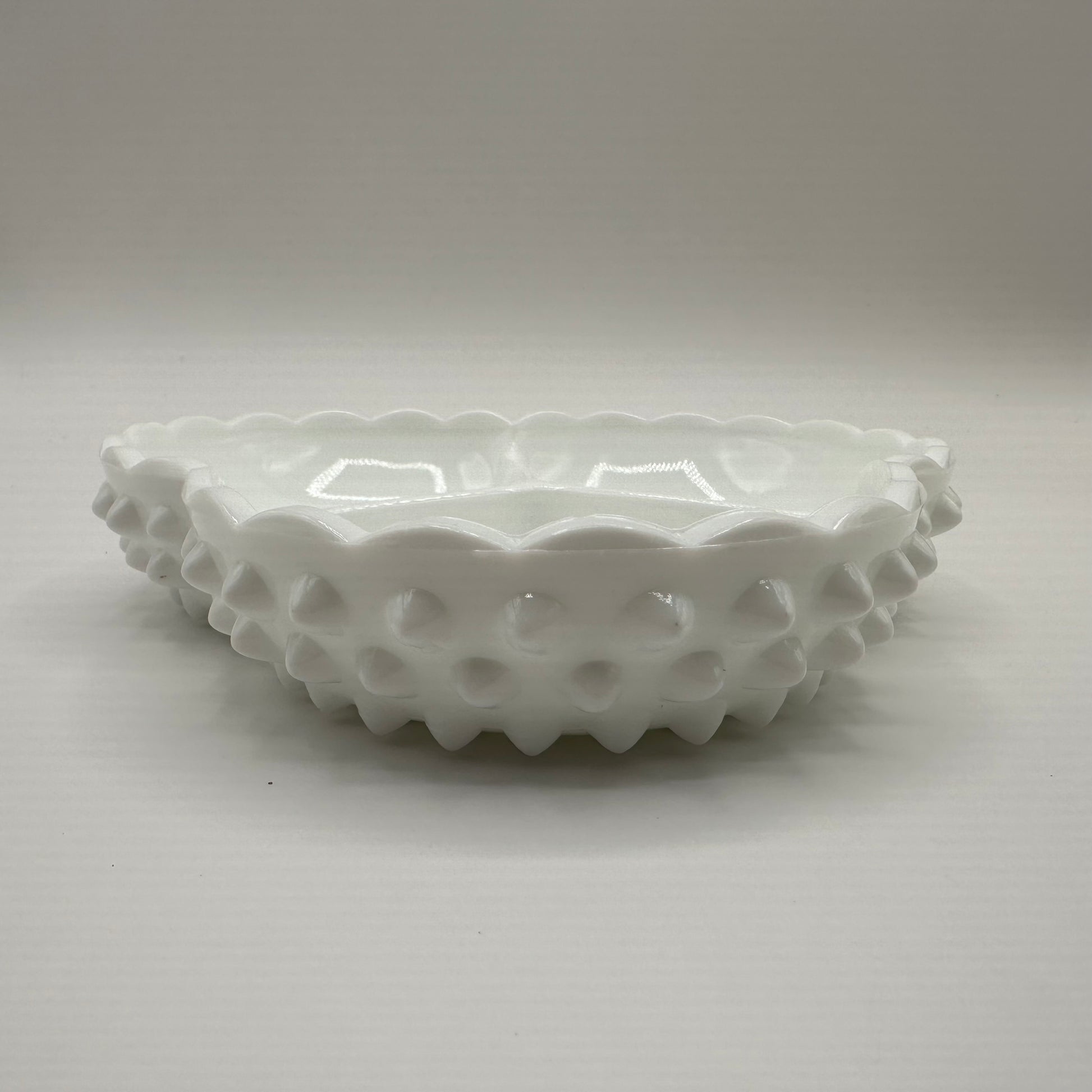 Fenton Milk Glass Hobnail Scalloped Edge Divided Dish