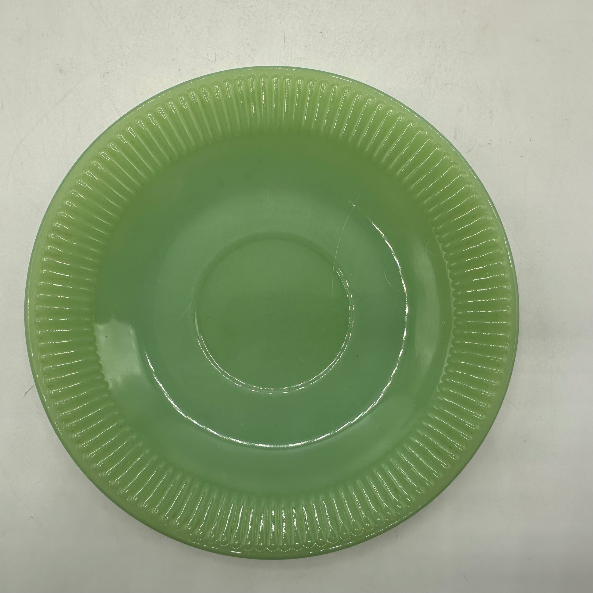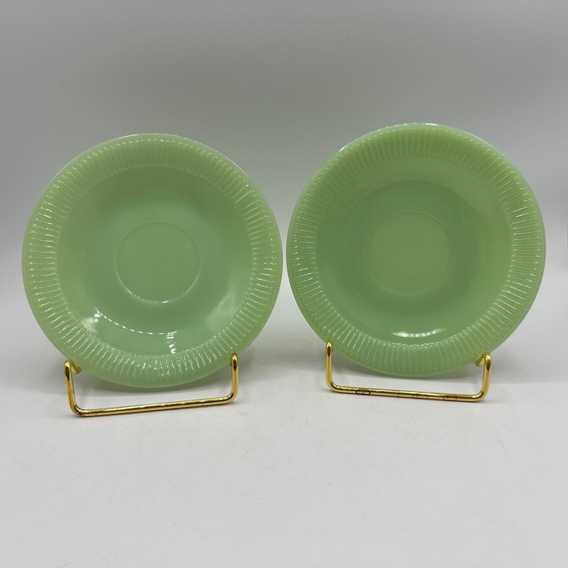 Fire King Jadeite Saucers, Jane Ray Pattern, Set of 2
