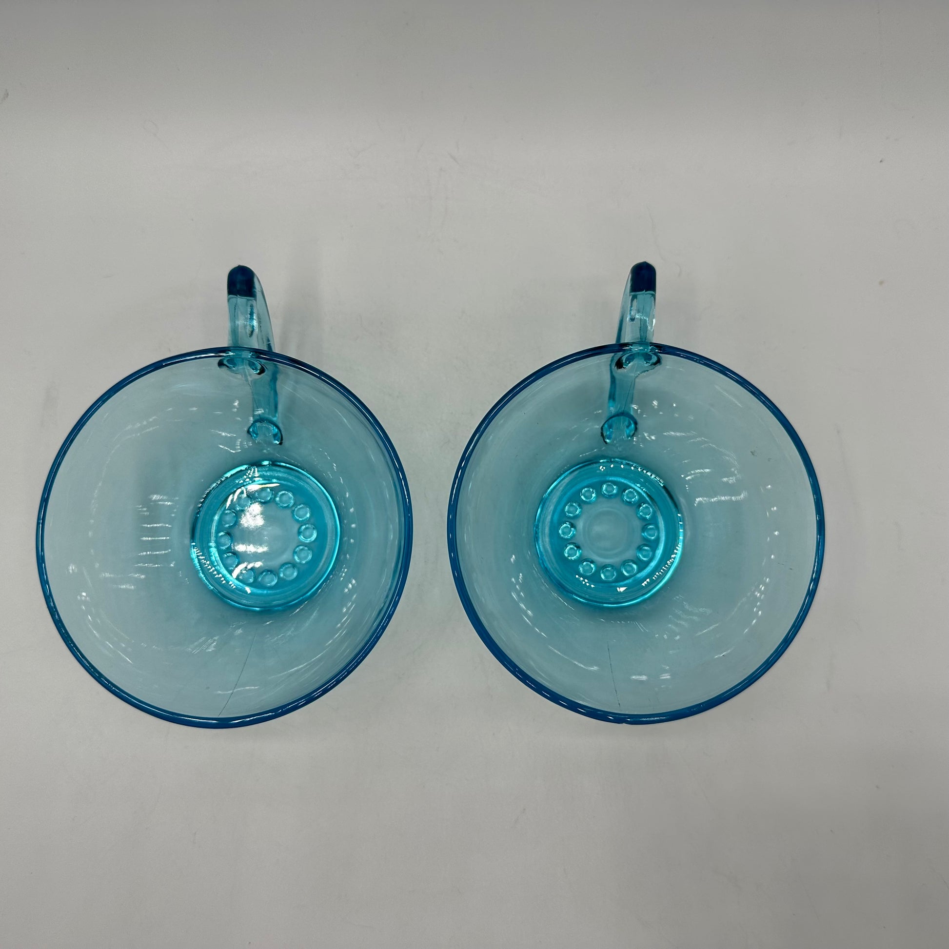 A fabulous set of 2 Hazel Atlas Teacups. They feature the Capri hobnail pattern in blue. The set of teacups is in excellent vintage used condition.