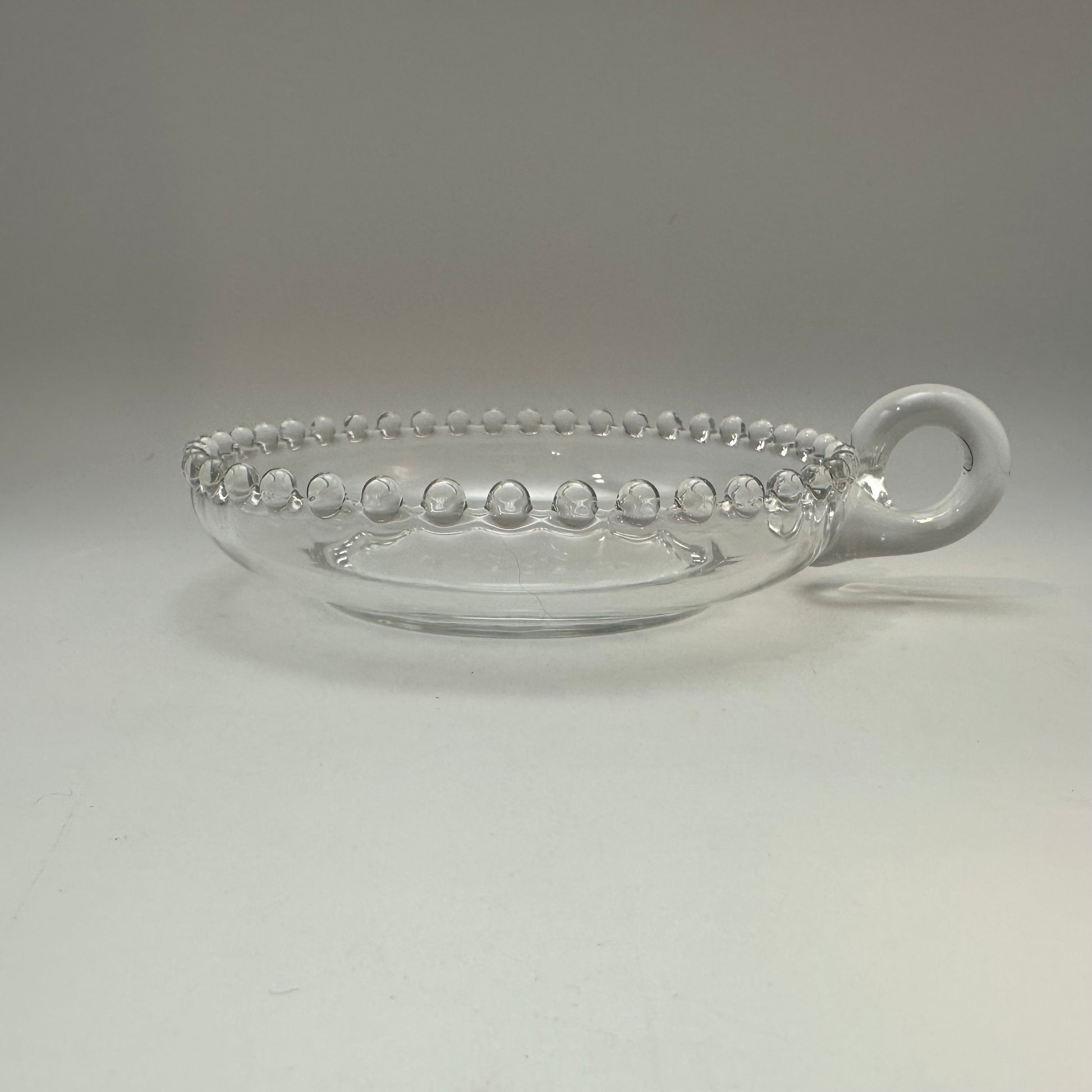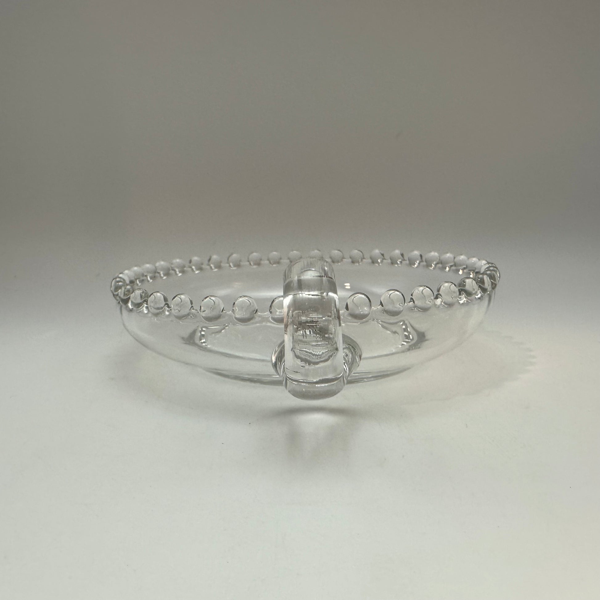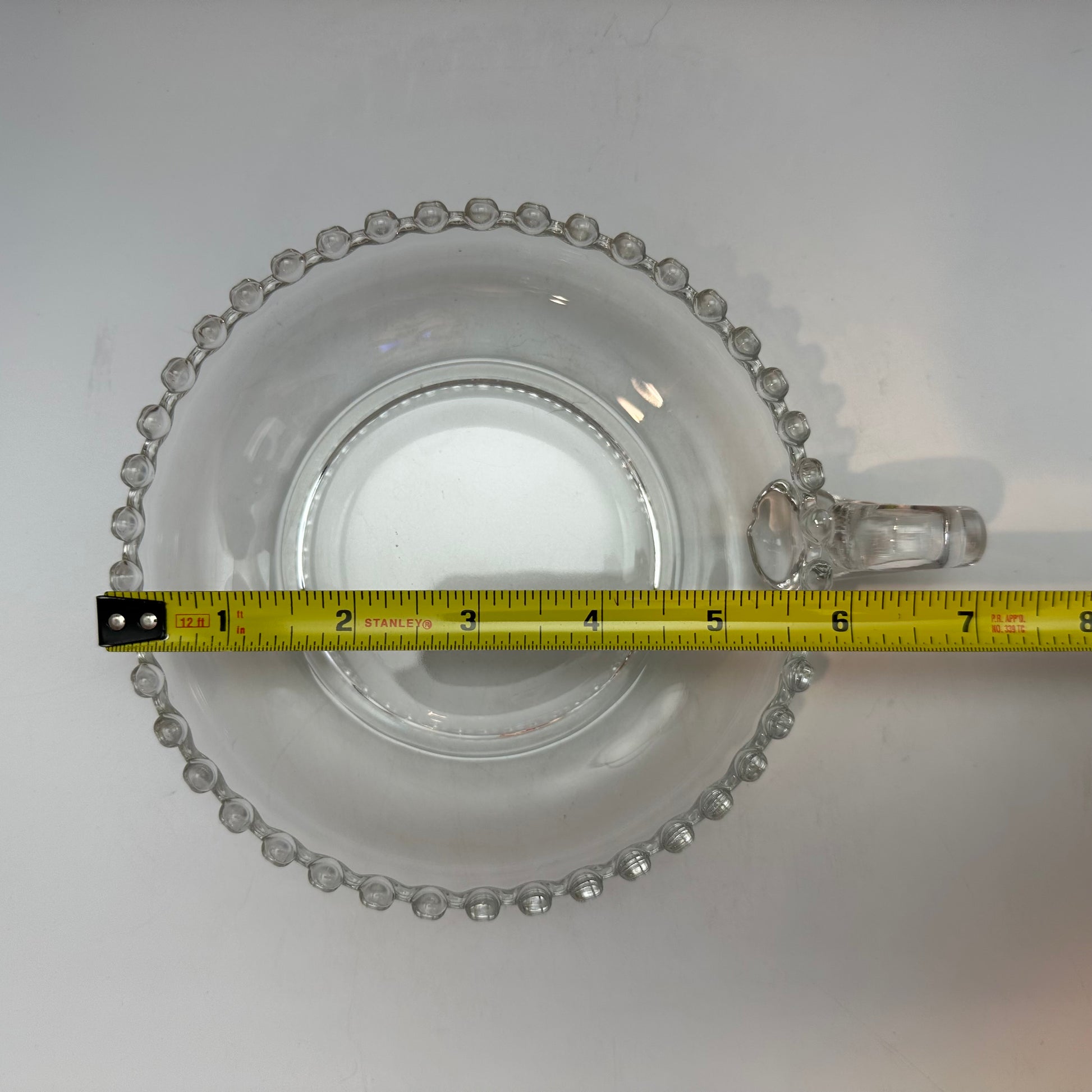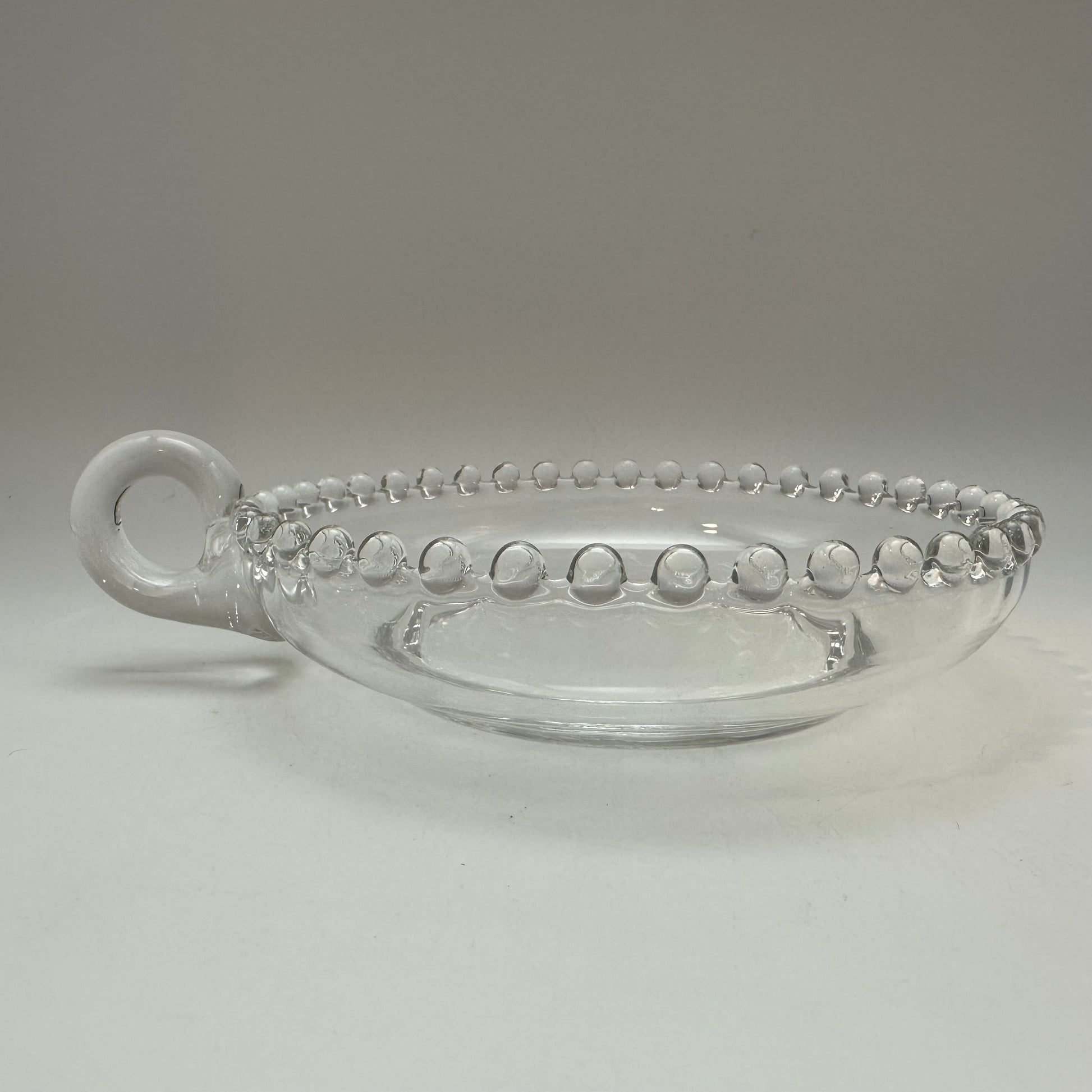 A handled Candlewick nappy bowl from Imperial Glass. It is in excellent vintage used condition.