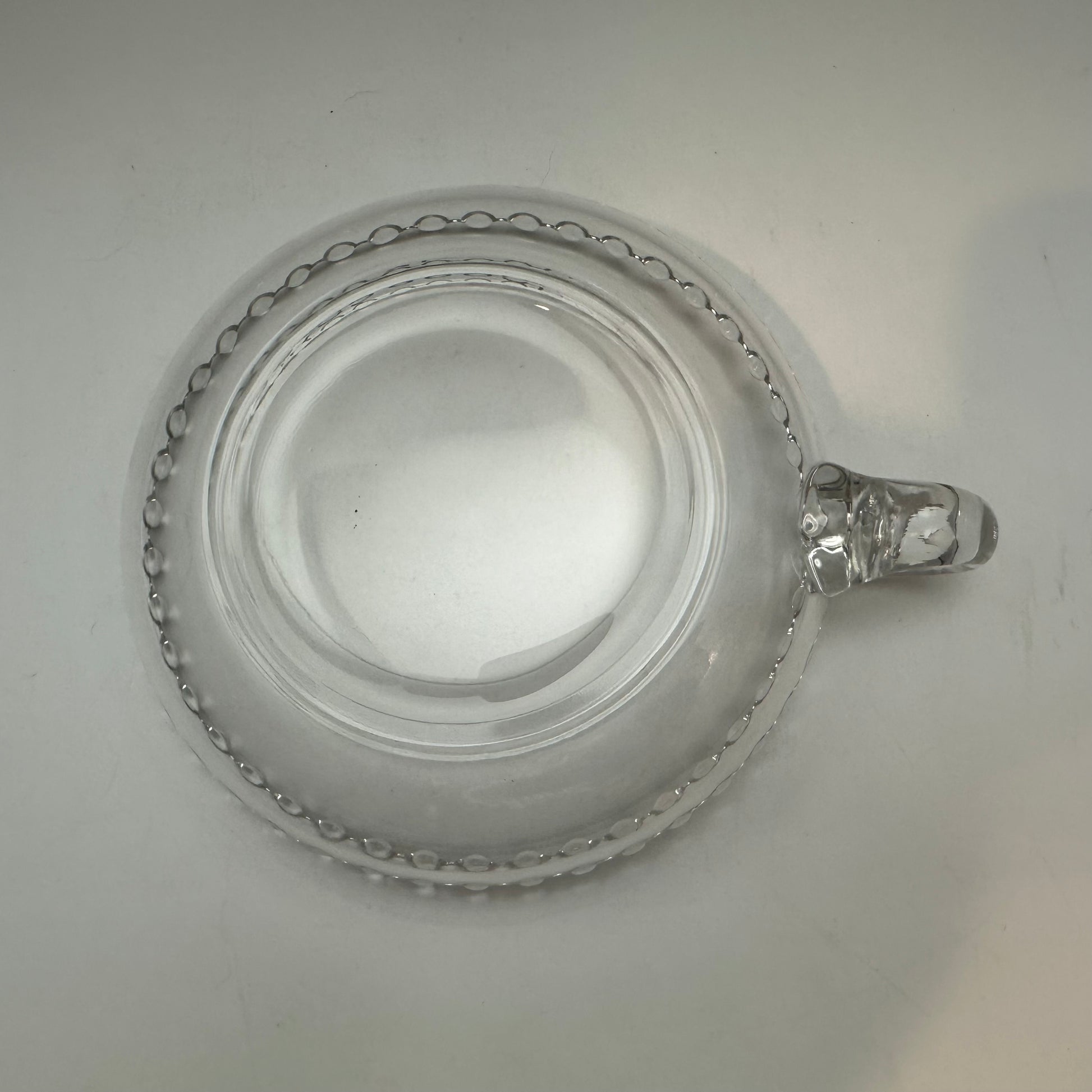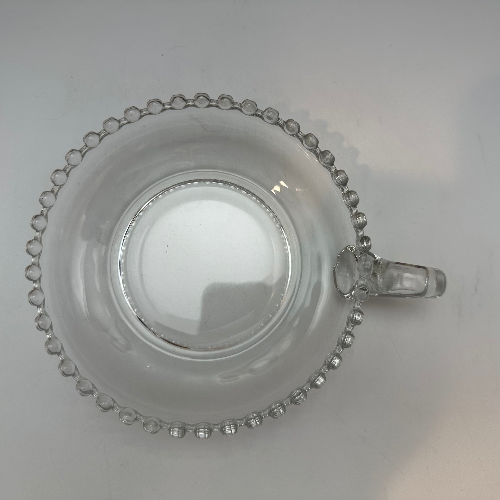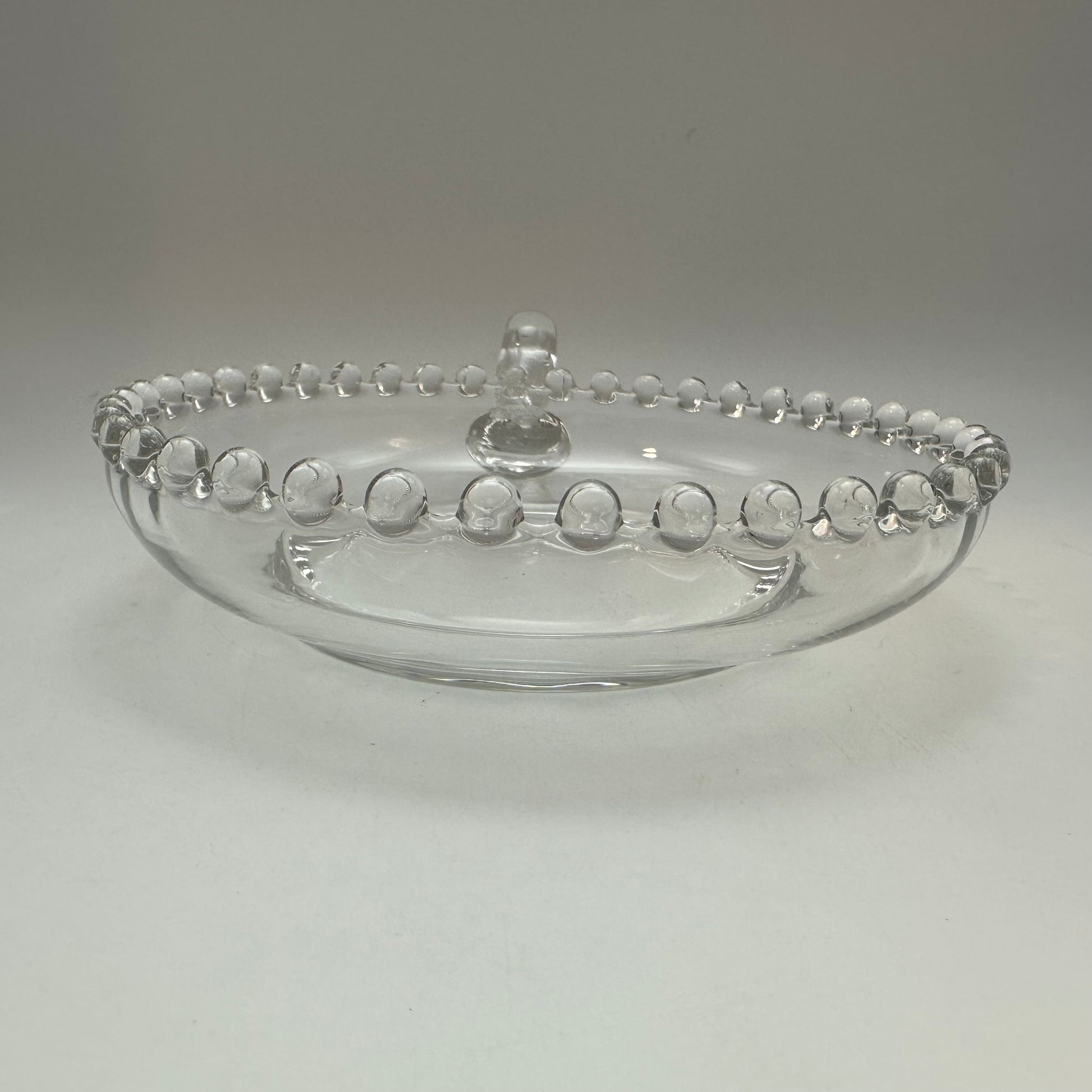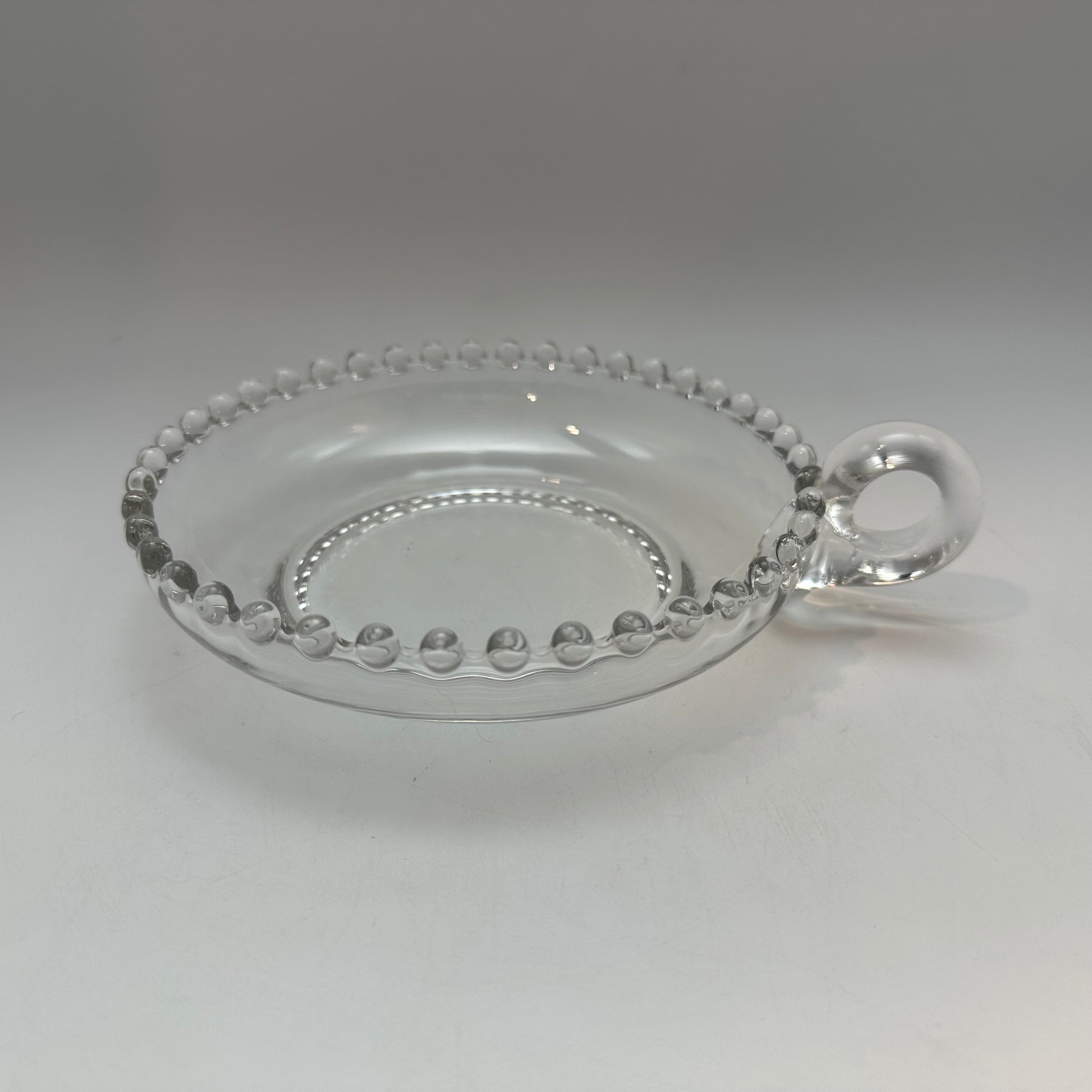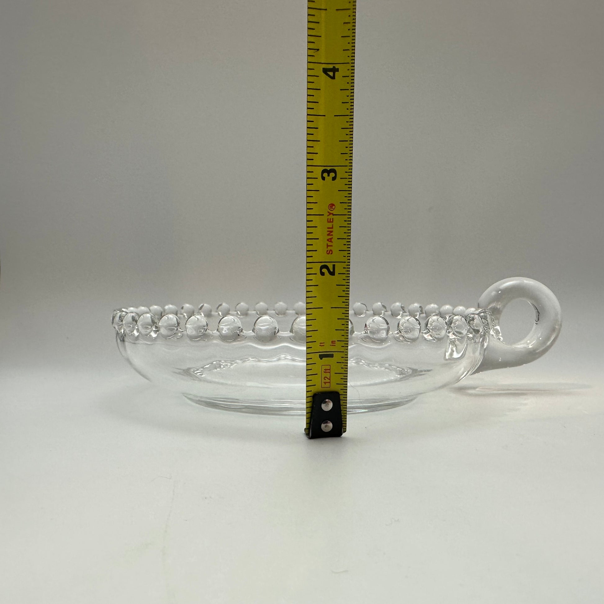 A handled Candlewick nappy bowl from Imperial Glass. It is in excellent vintage used condition.