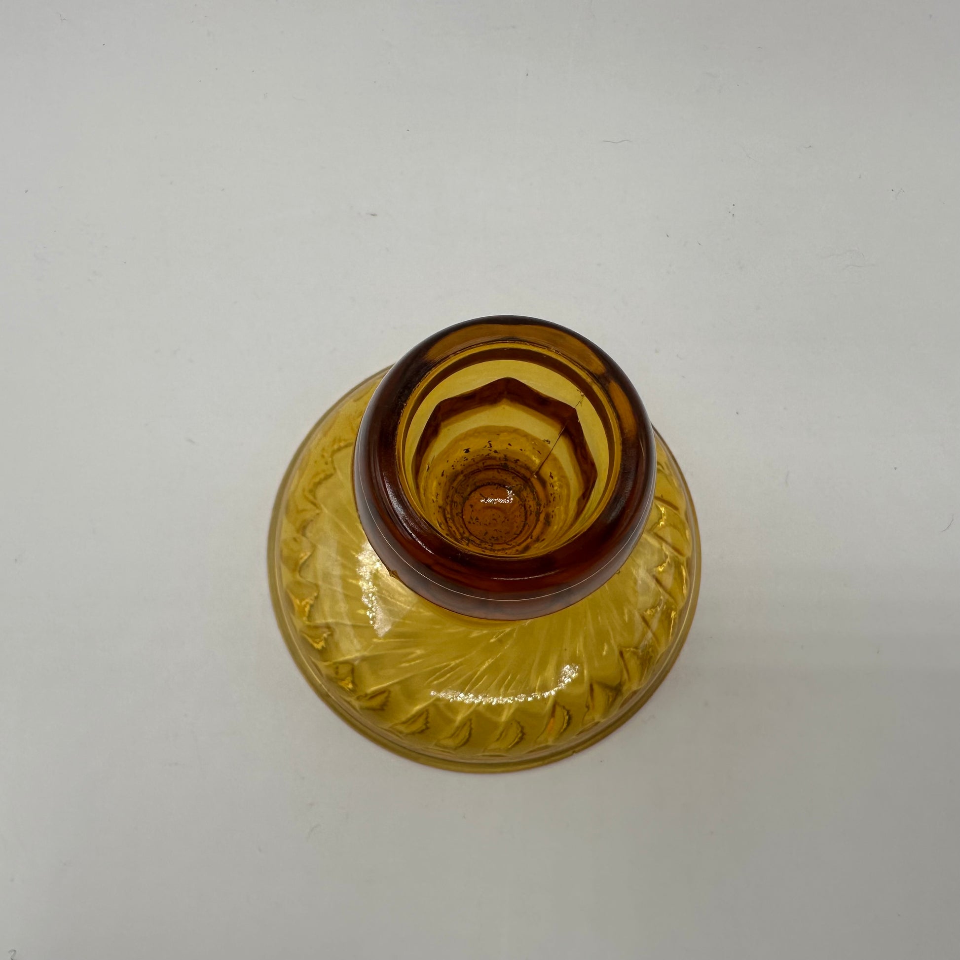 Introducing a stunning candlestick holder from Imperial Glass, showcasing the exquisite Twisted Optic pattern in amber glass. This piece is in excellent vintage pre-owned condition, making it a fantastic addition to any collection or home decor.
