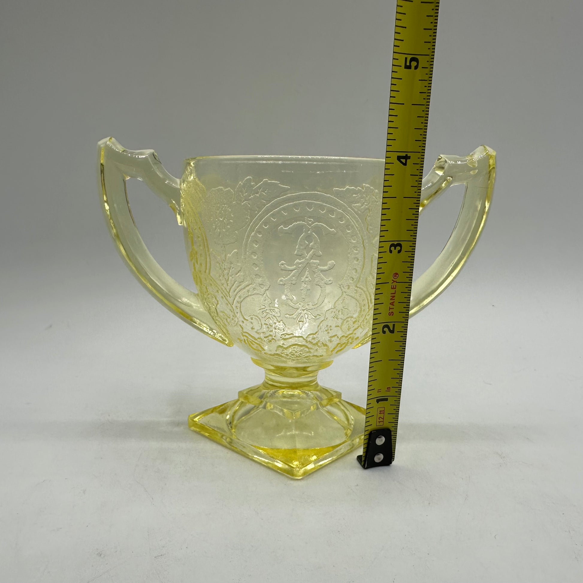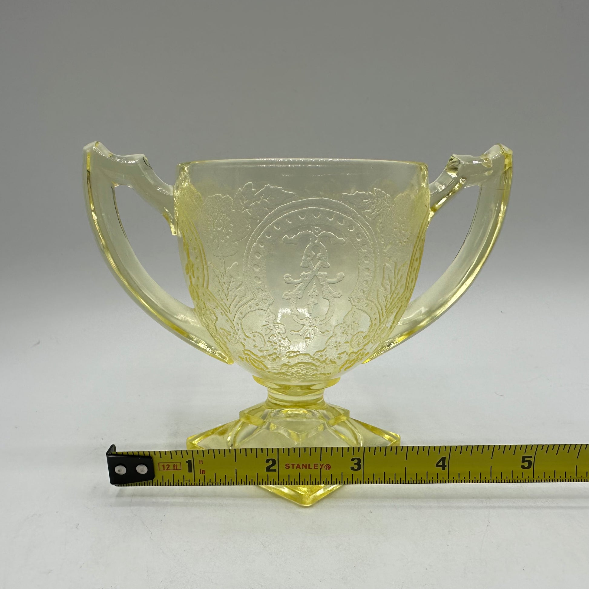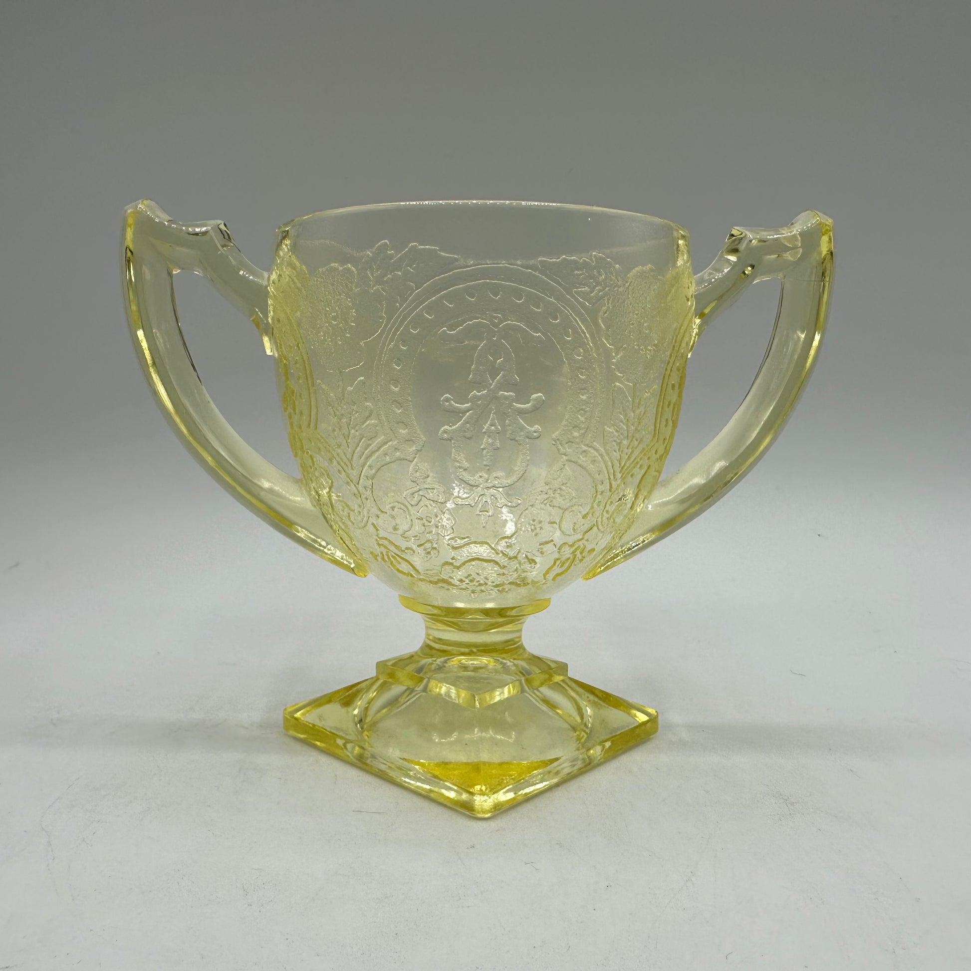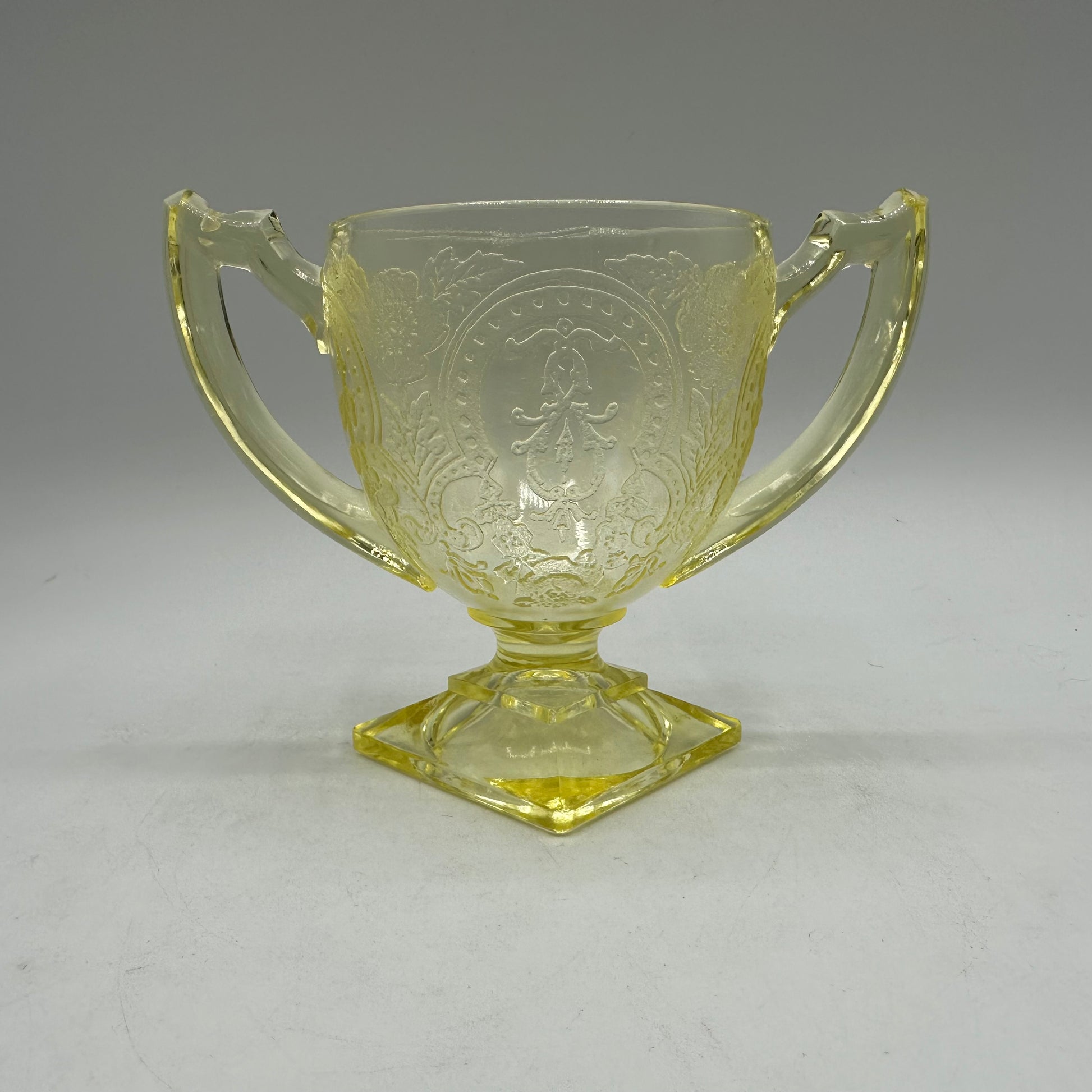 Indiana Glass Yellow Footed Sugar Bowl, Horseshoe Pattern