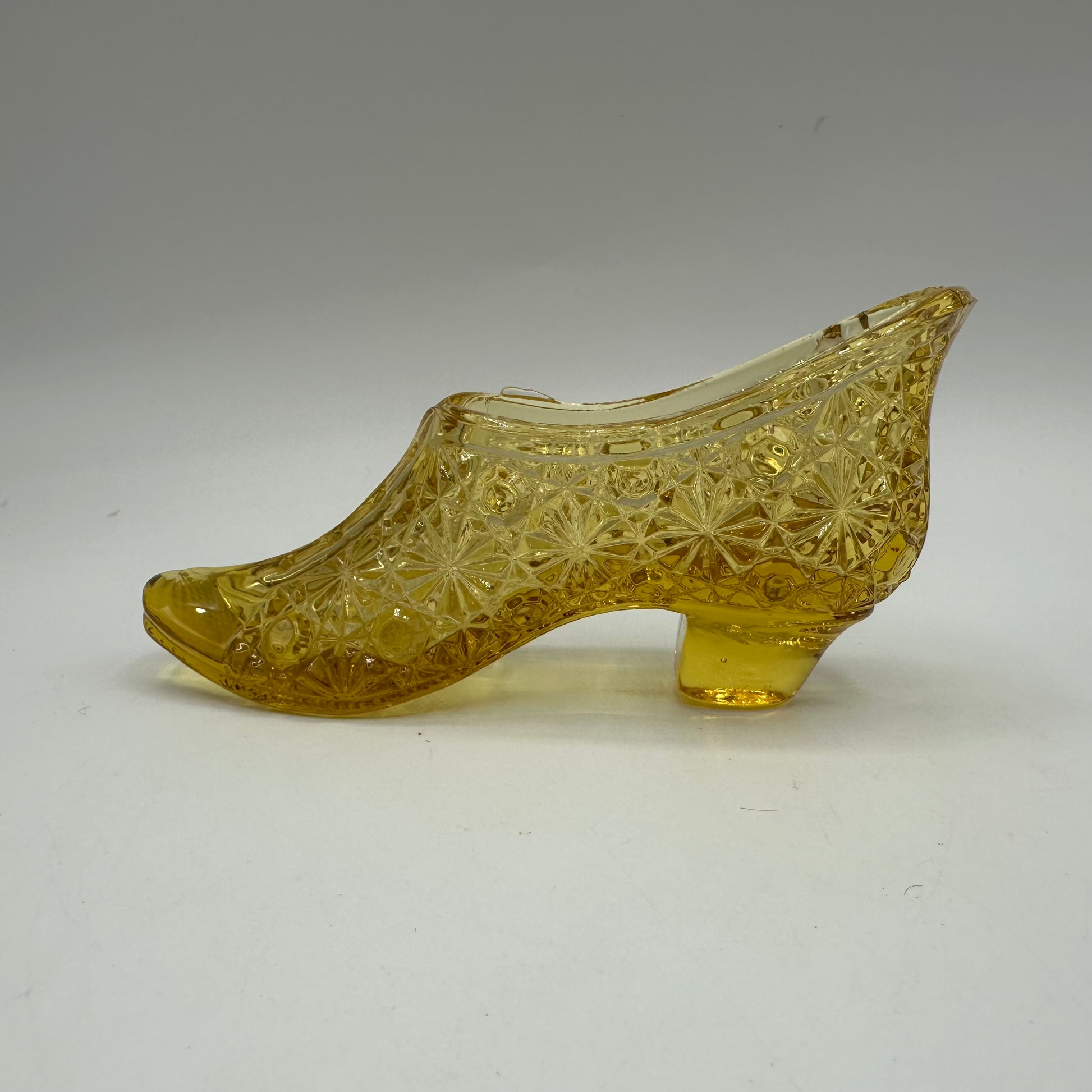 L.E. Smith Glass Slipper Amber with Daisy & Button Pattern