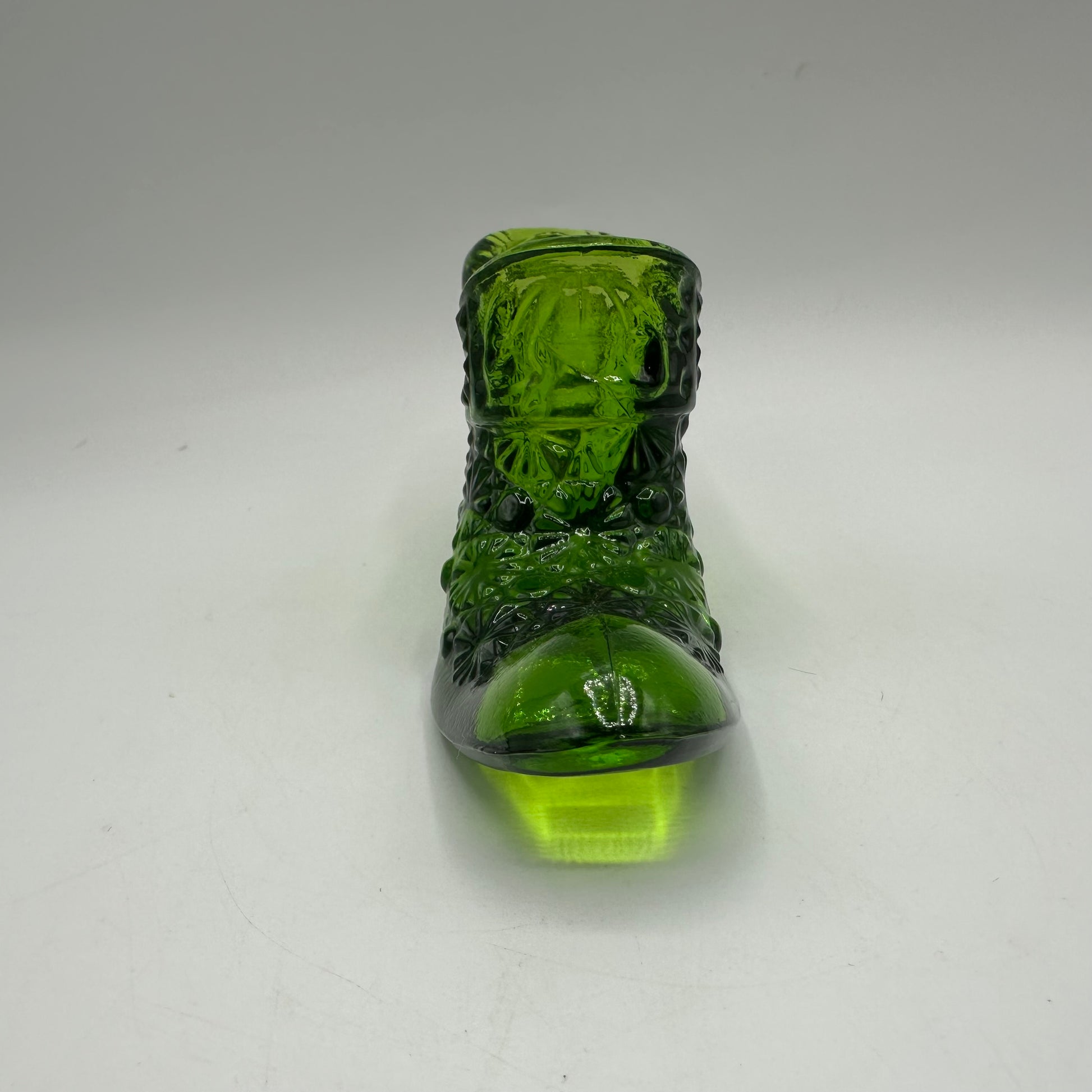 L.E. Smith Glass Slipper Green with Daisy & Button Pattern