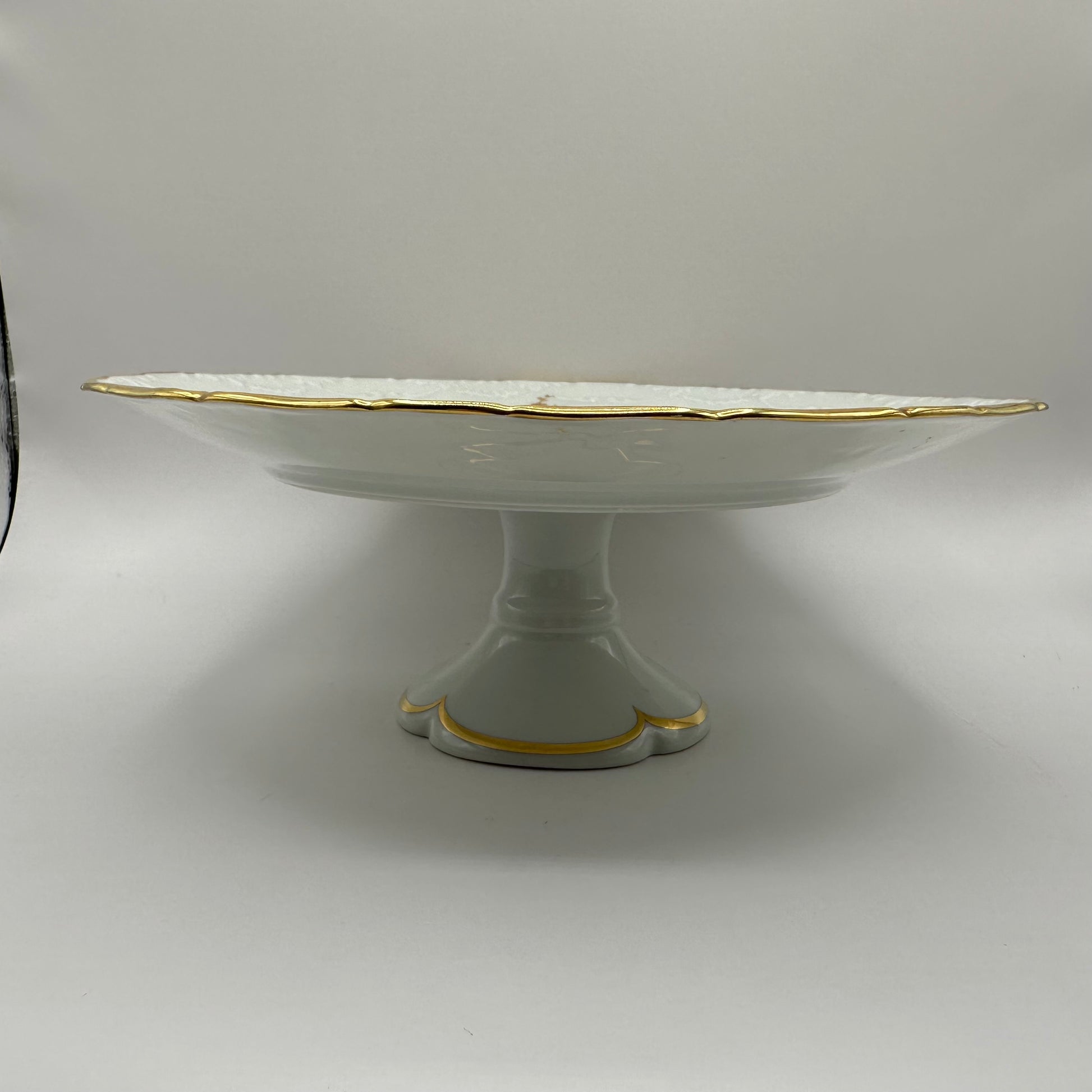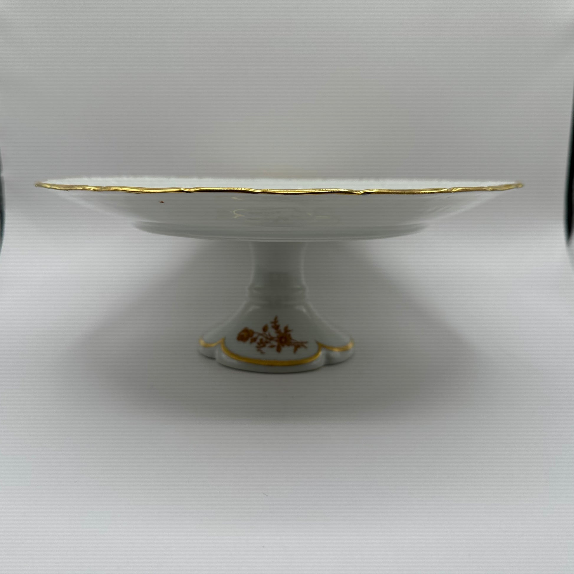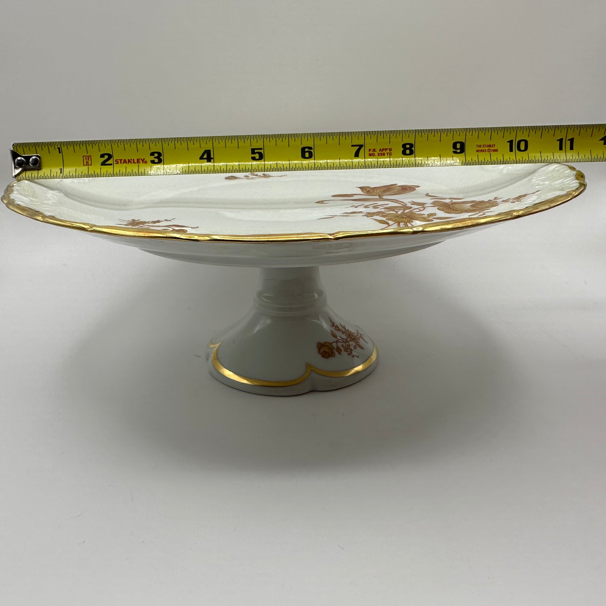 Limoges France Cake Stand Pedestal Plate Golden Roses 10-3/4"