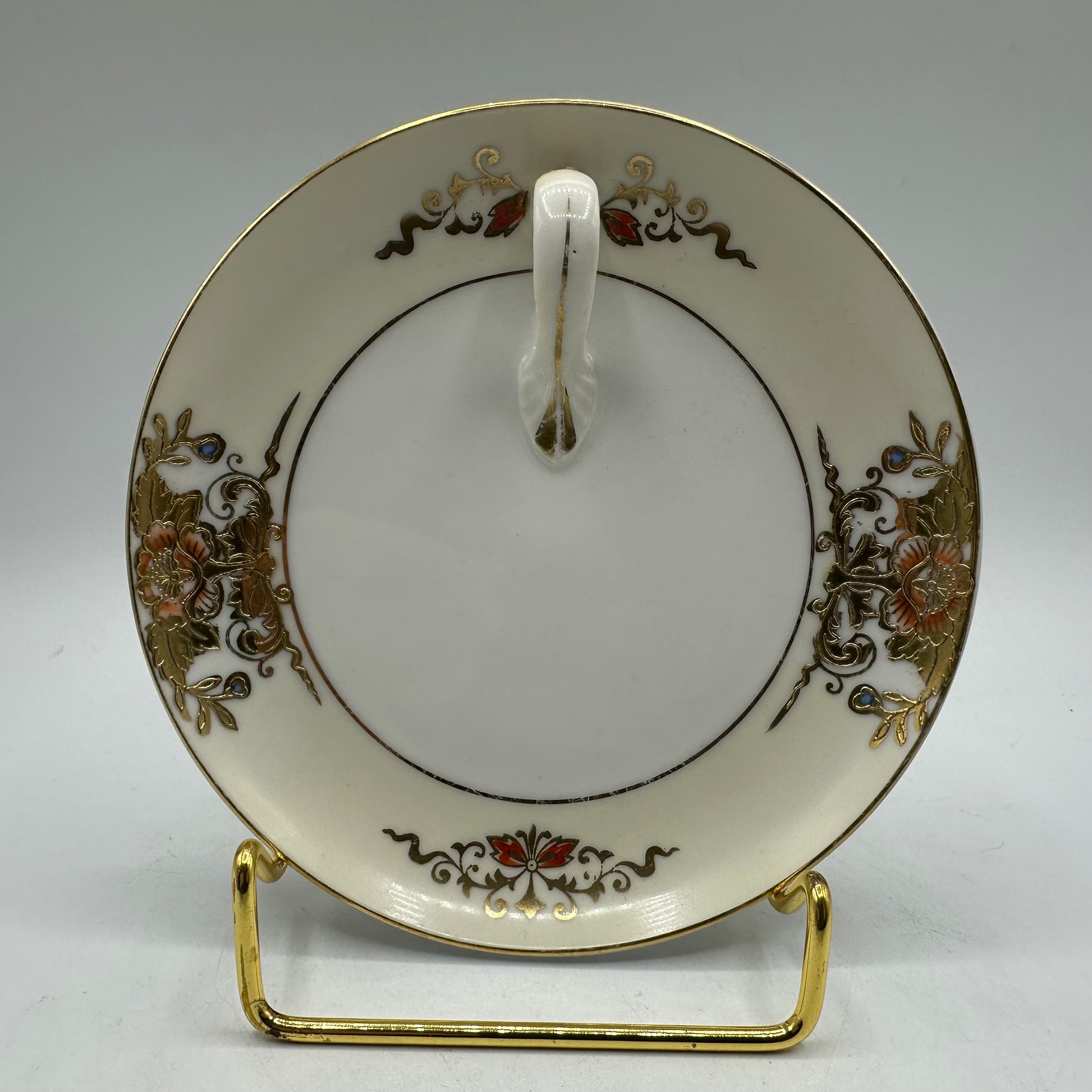 A beautiful lemon plate from Noritake. It features a handpainted floral design in gold moriage. The lemon plate is in excellent vintage used condition.