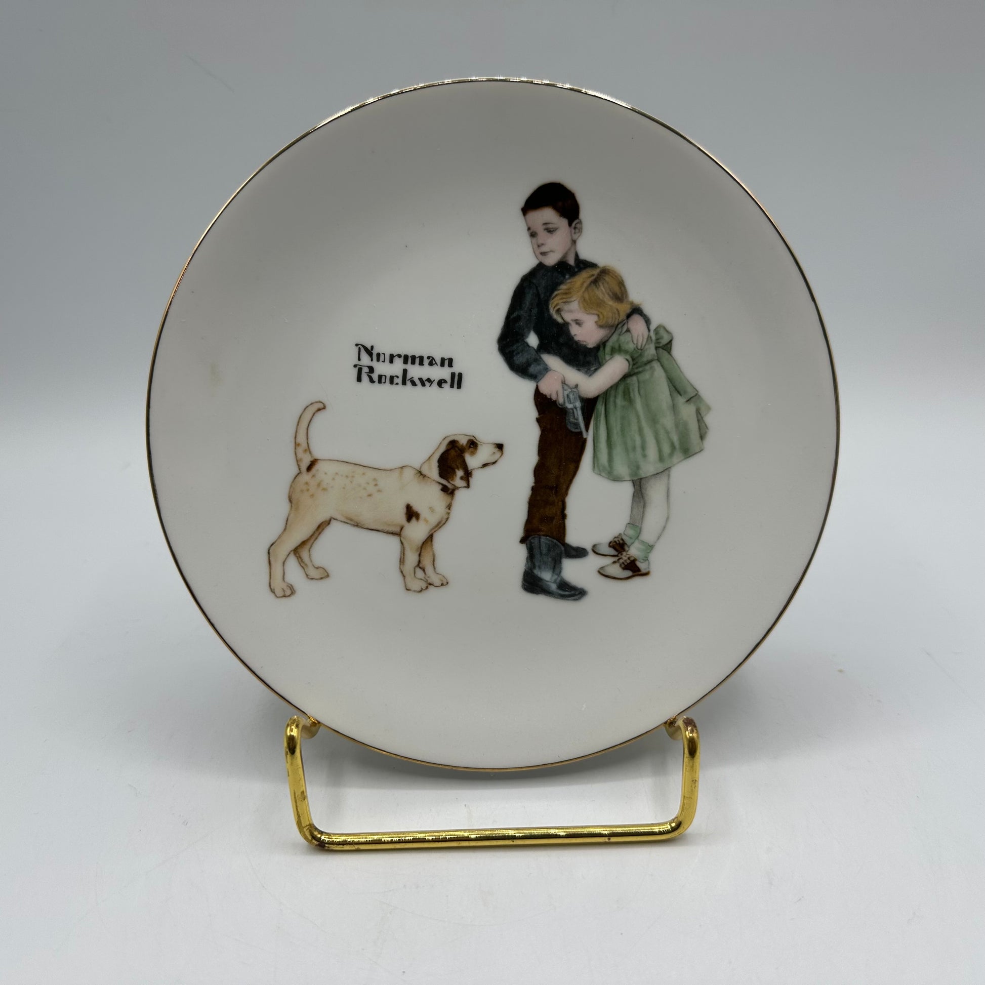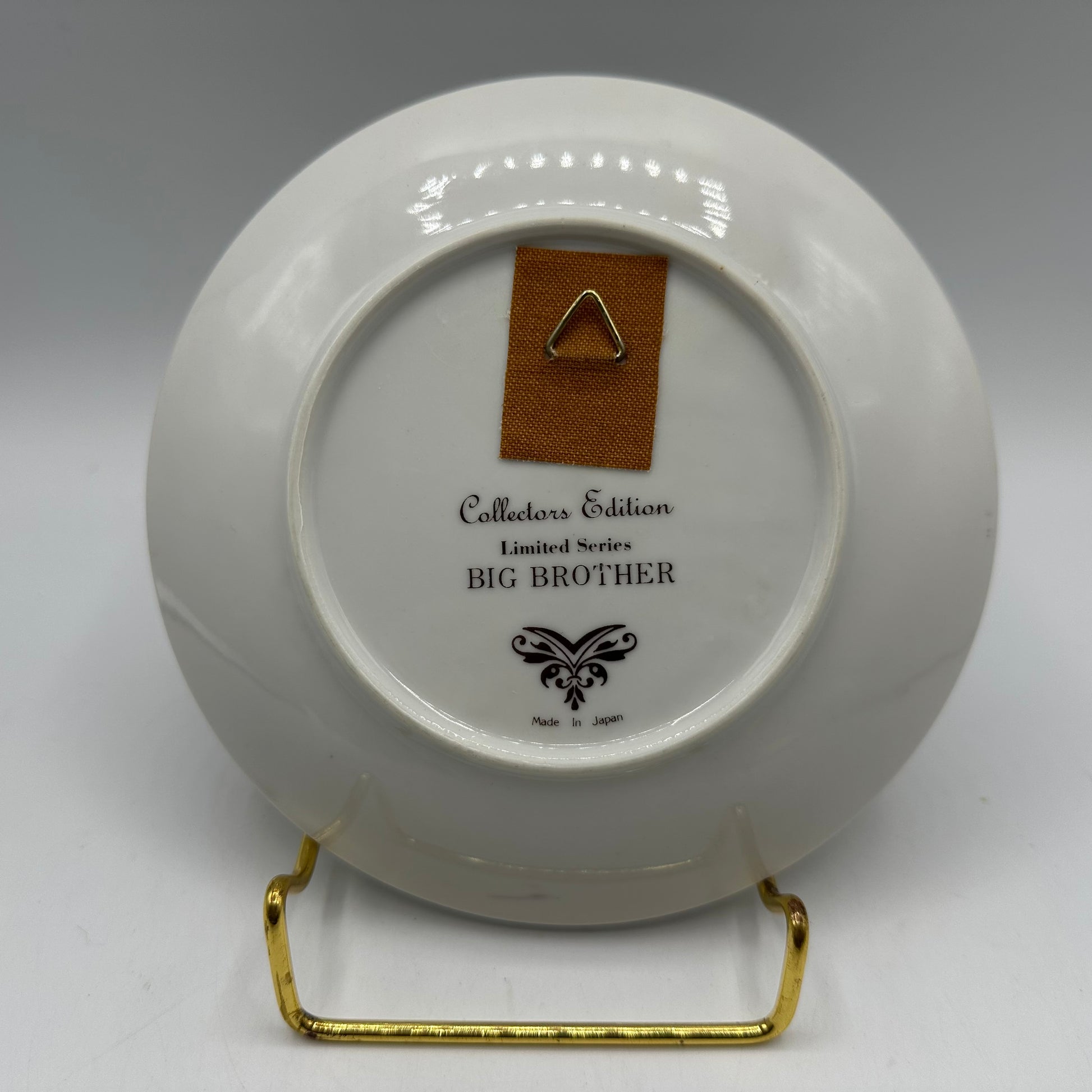 This limited edition plate by Norman Rockwell showcases a "Big Brother" theme and includes the original packaging. It is in excellent condition, reflecting its vintage pre-owned status.