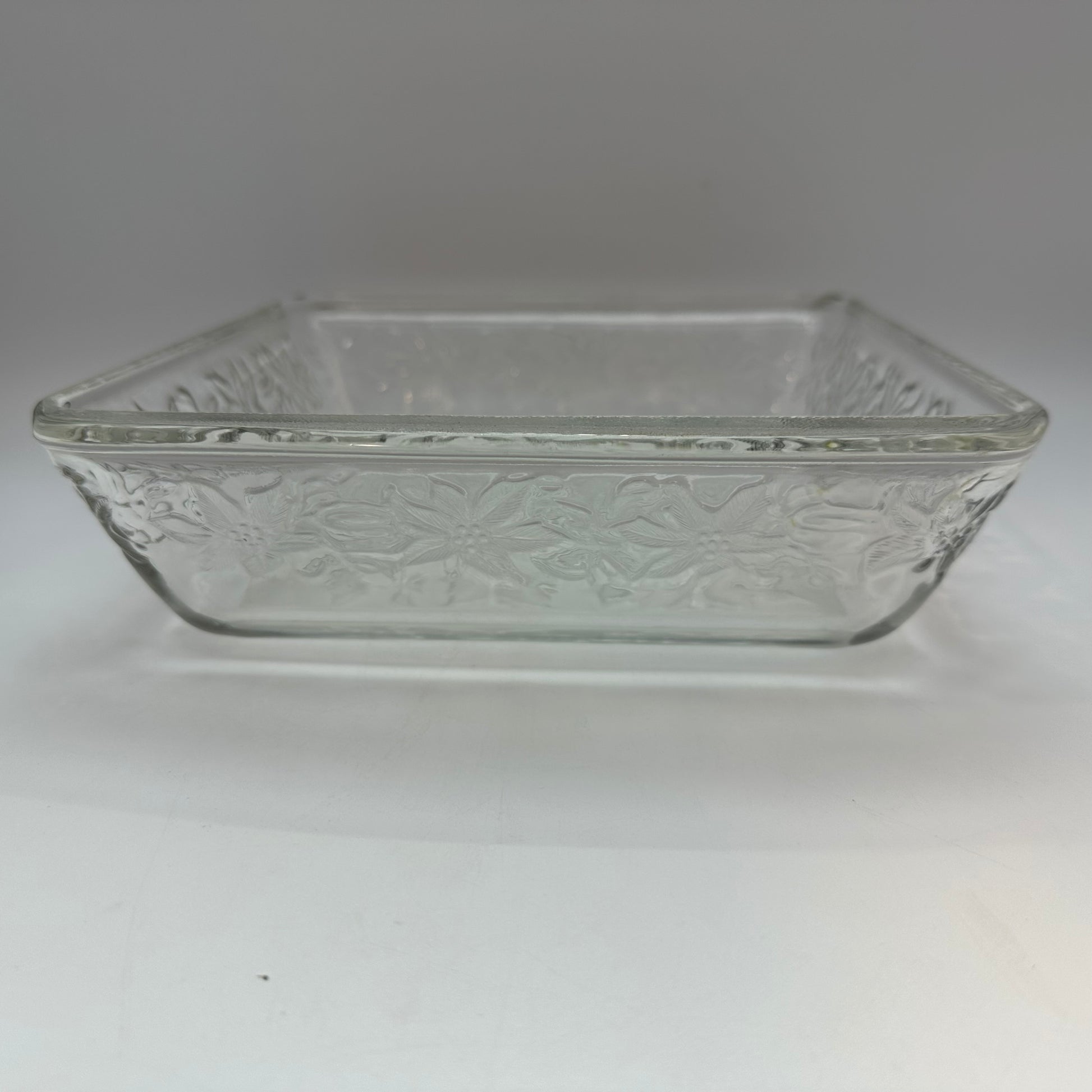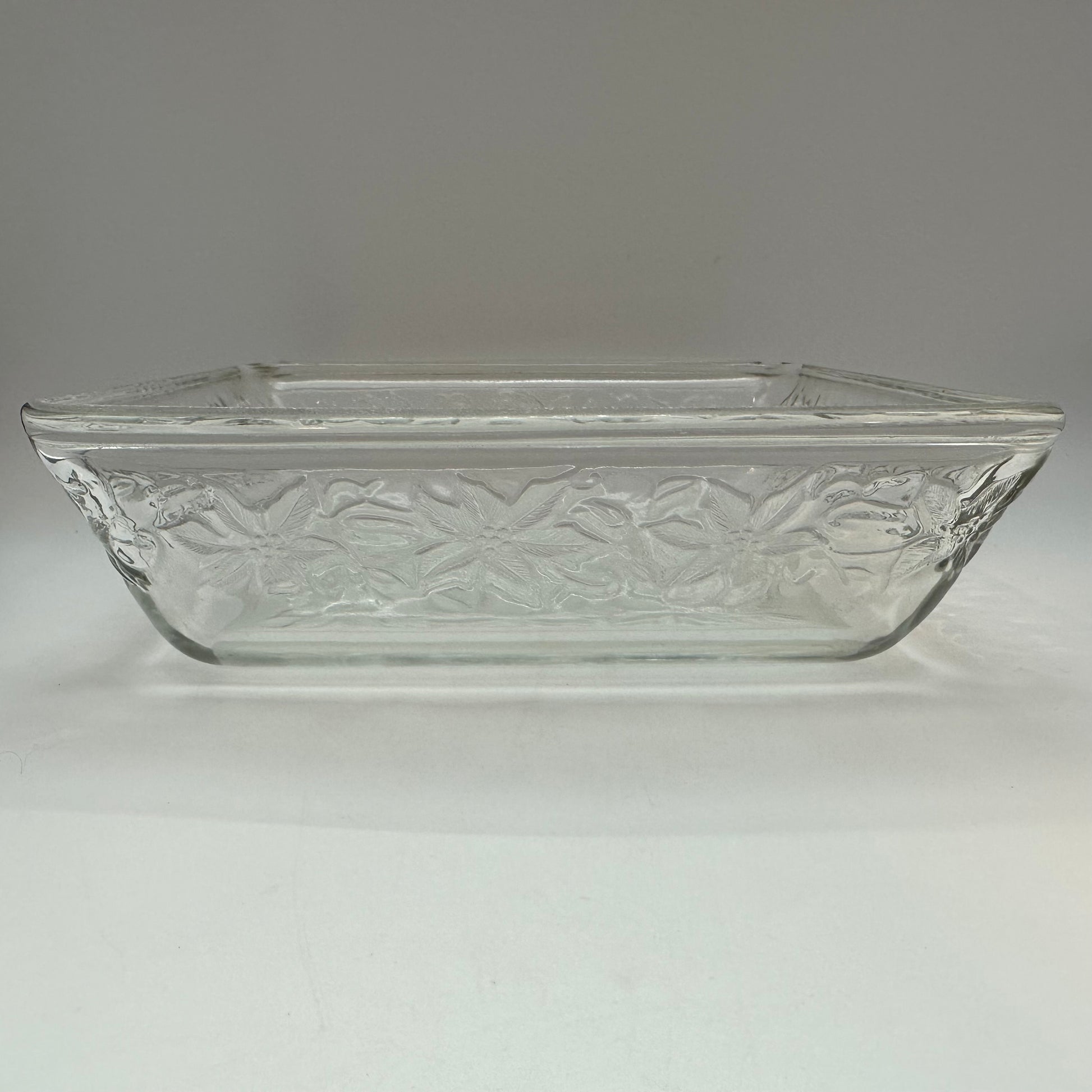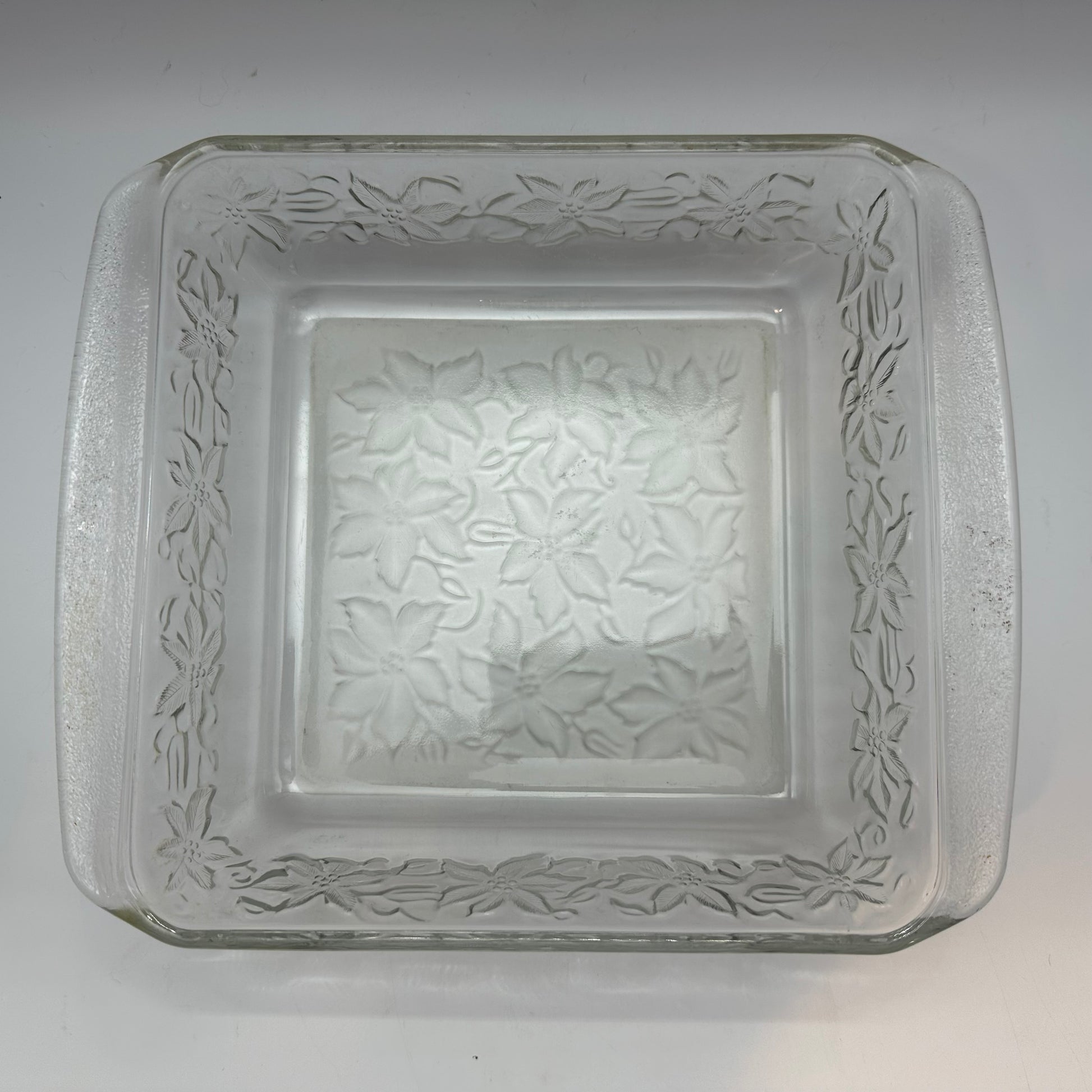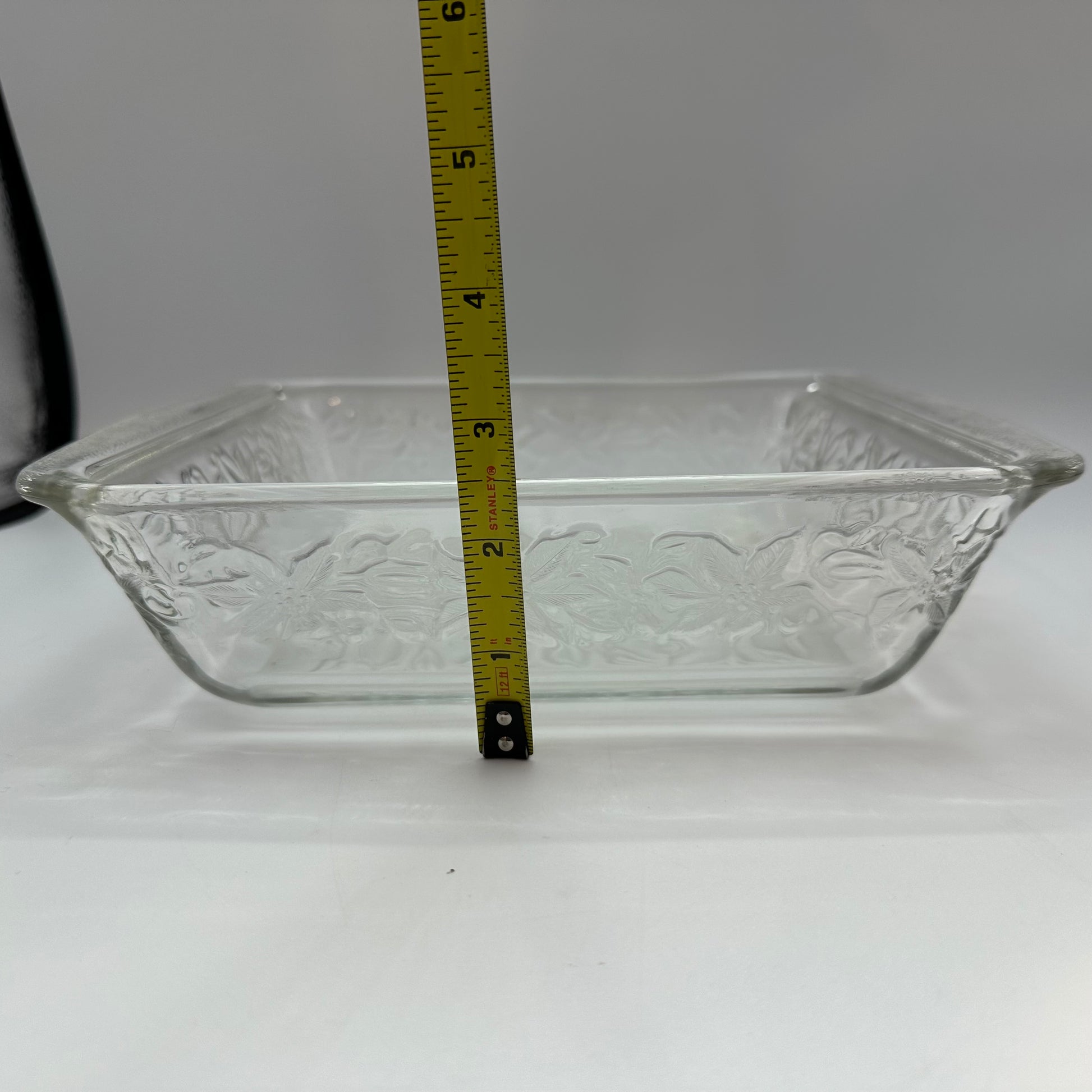 Introducing a delightful square baking pan from Princess House, showcasing the elegant Fantasia pattern on clear glass. While the pan exhibits some signs of prior use, it remains in excellent vintage pre-owned condition, making it a great addition to any kitchenware collection.
