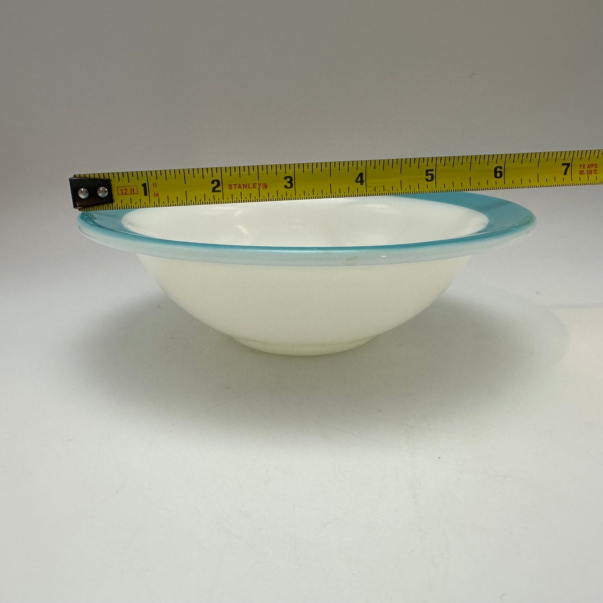 Pyrex Milk Glass Bowls, With Aqua Trim, 6.25", Set of 4