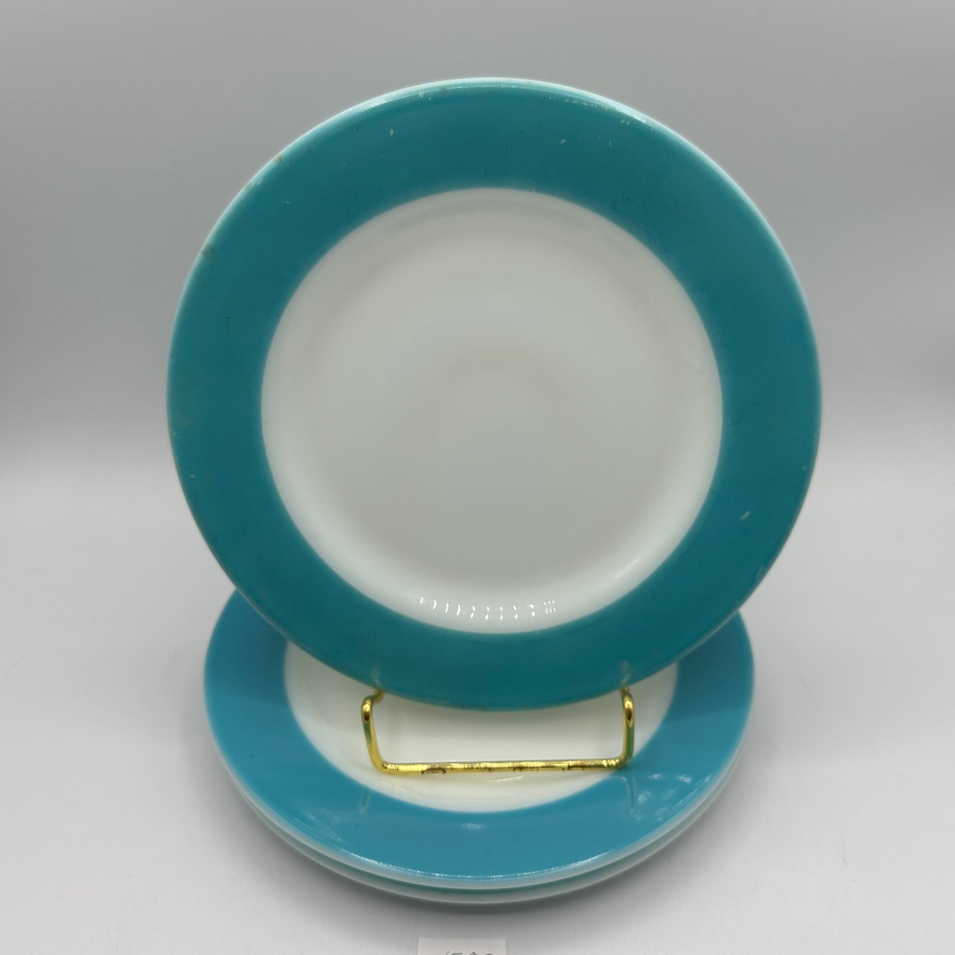 Pyrex Milk Glass Plates, With Aqua Trim, 8", Set of 3