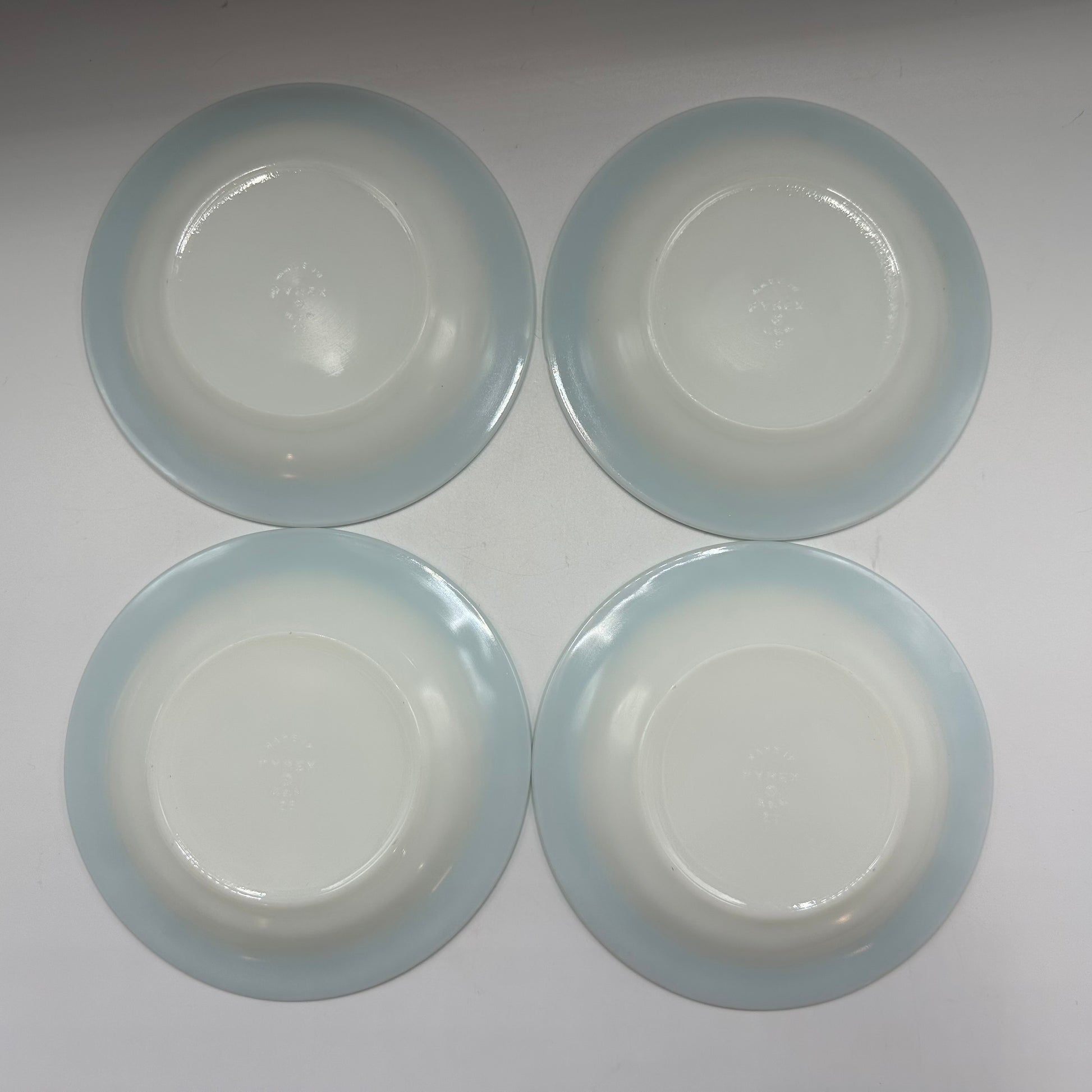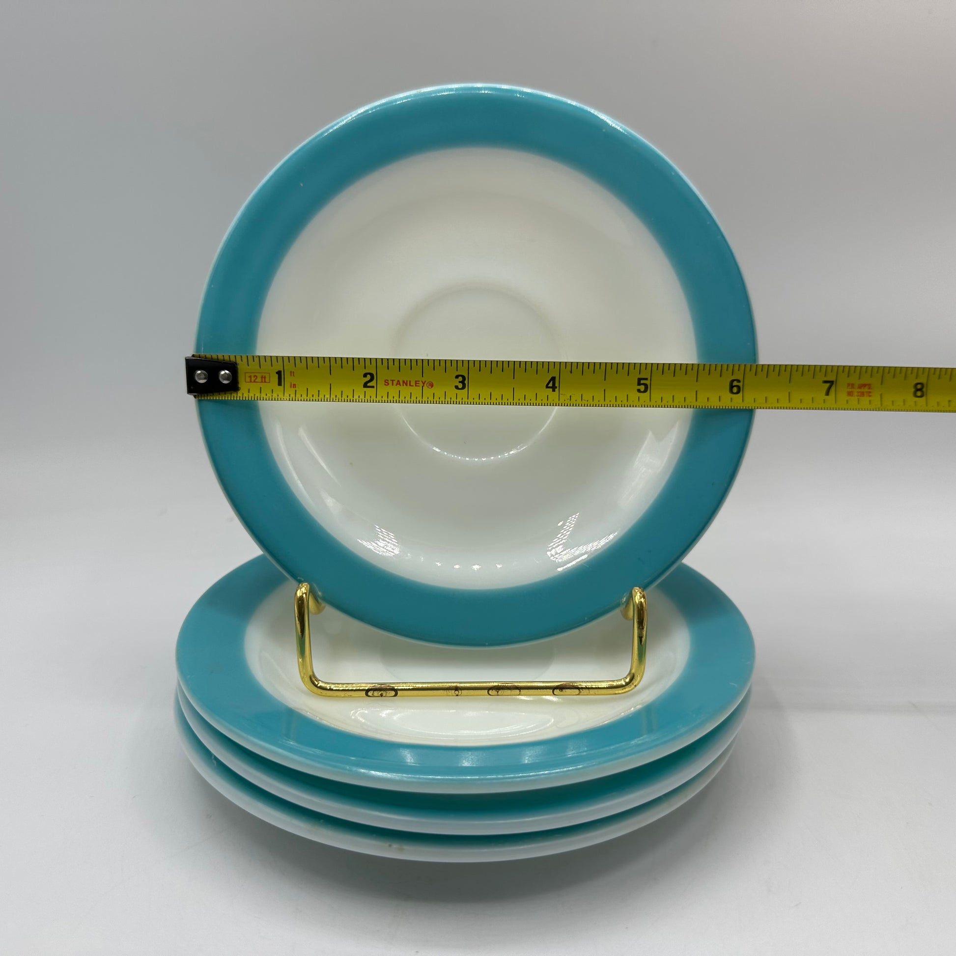 Pyrex Saucers, Milk Glass with Aqua Trim, Set of 4