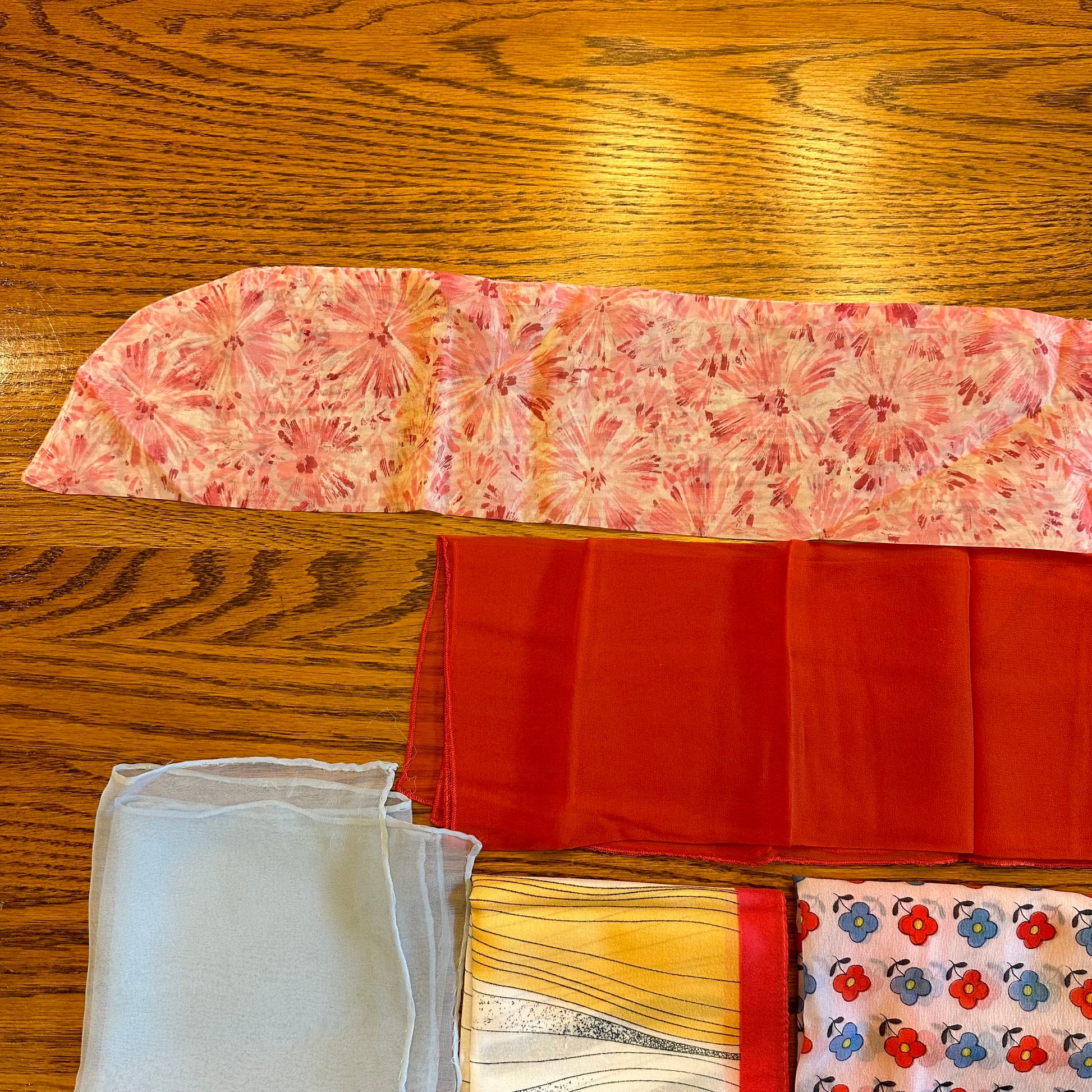 Scarves- Reds, Blues, Pinks- Mixed Textiles & Sizes- Lot of 8
