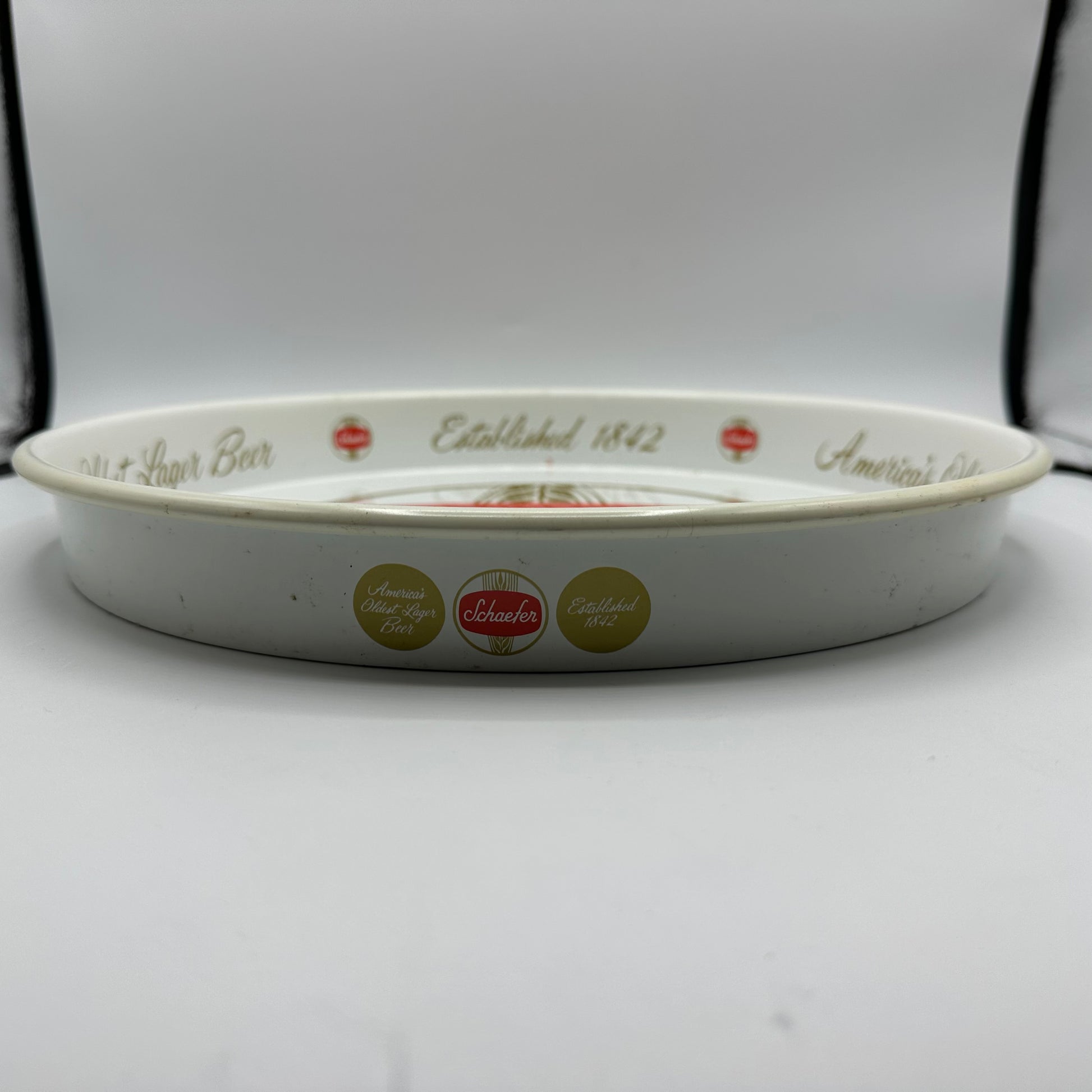 A wonderful set of 2 serving trays to add to any bar. It features Schaefer Beer with the saying "America's Oldest Lager Beer". The trays are in great shape for their age. Both trays have minor marks in various places on the tray but don't take away from the beauty of the tray.
