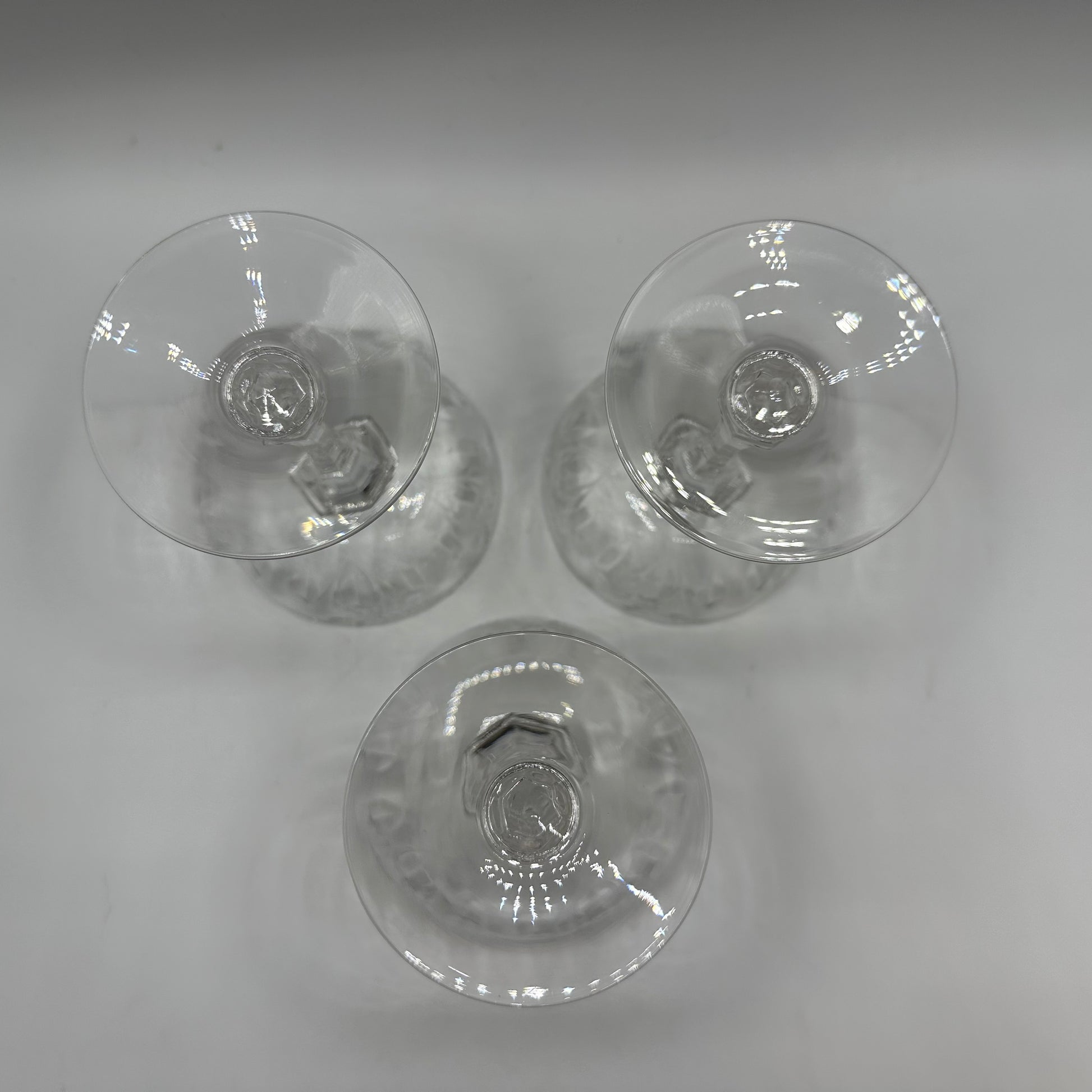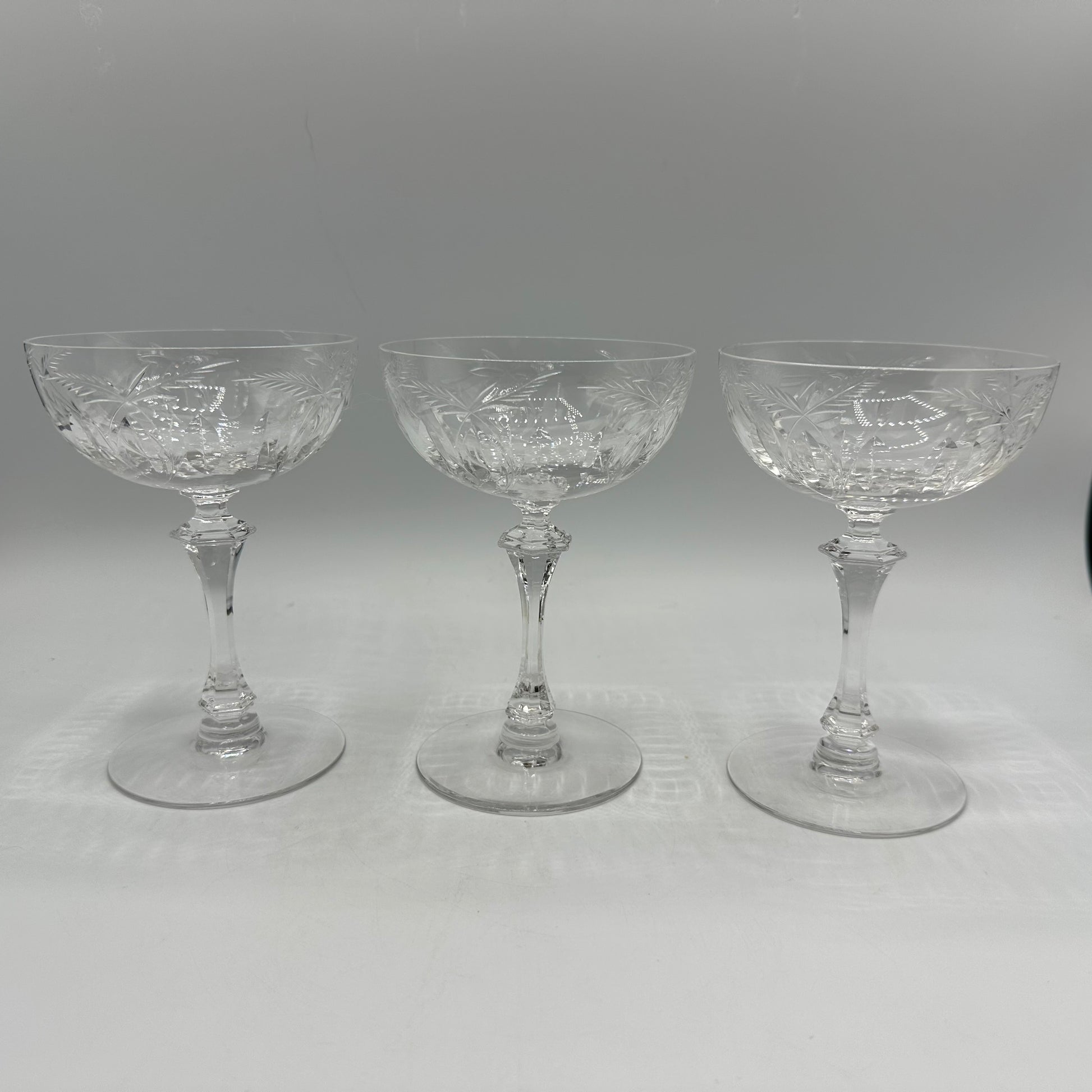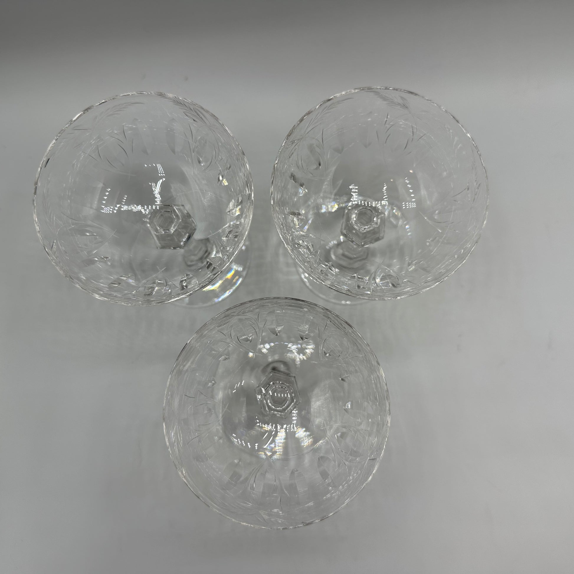 This set of three Champagne or Sherbert glasses from Tiffin-Franciscan Glass showcases the elegant Moss Rose pattern, which is delicately etched into each piece. The glasses are in excellent vintage condition, having been pre-owned, and would make a lovely addition to any collection or special occasion.