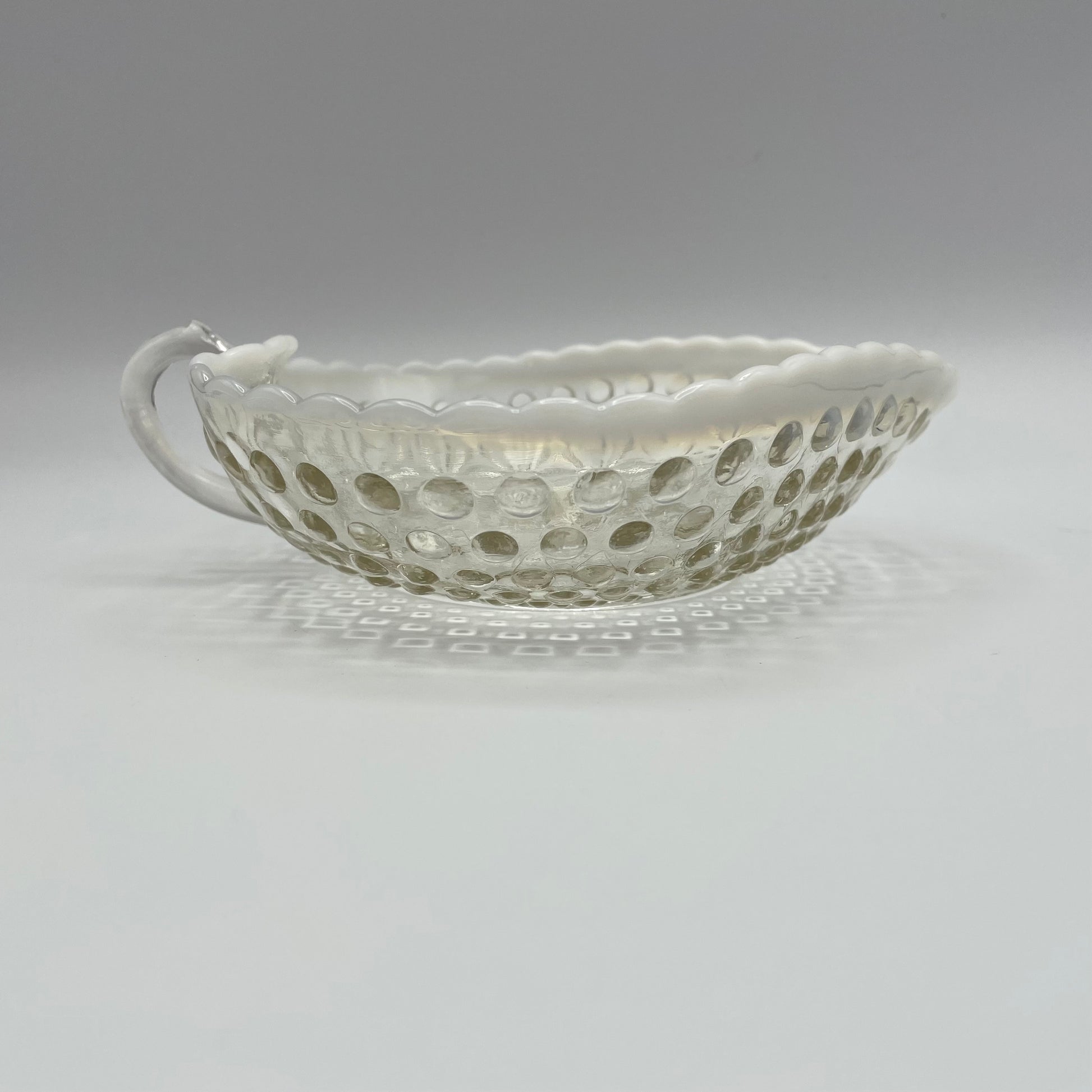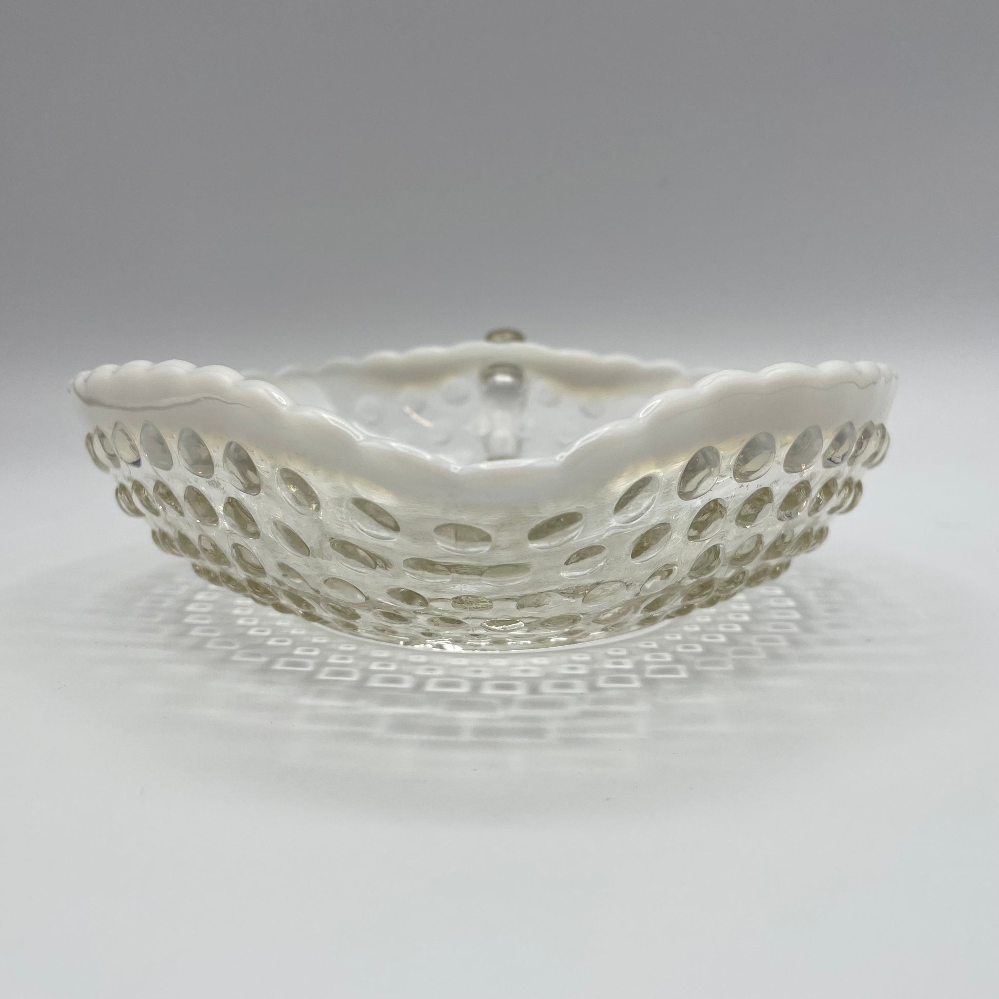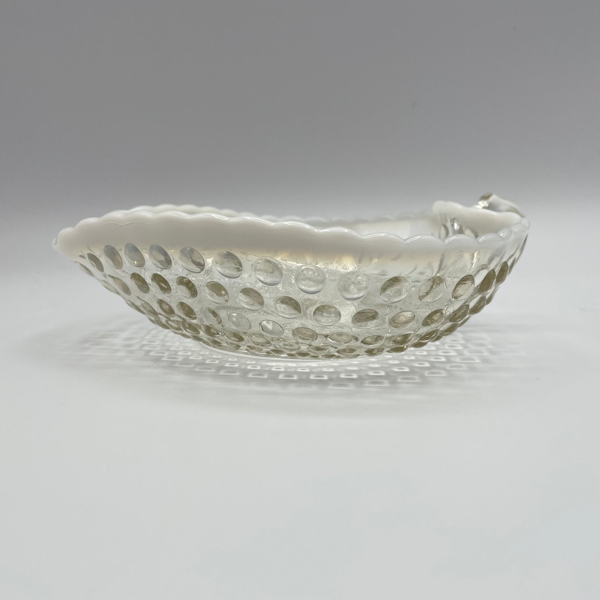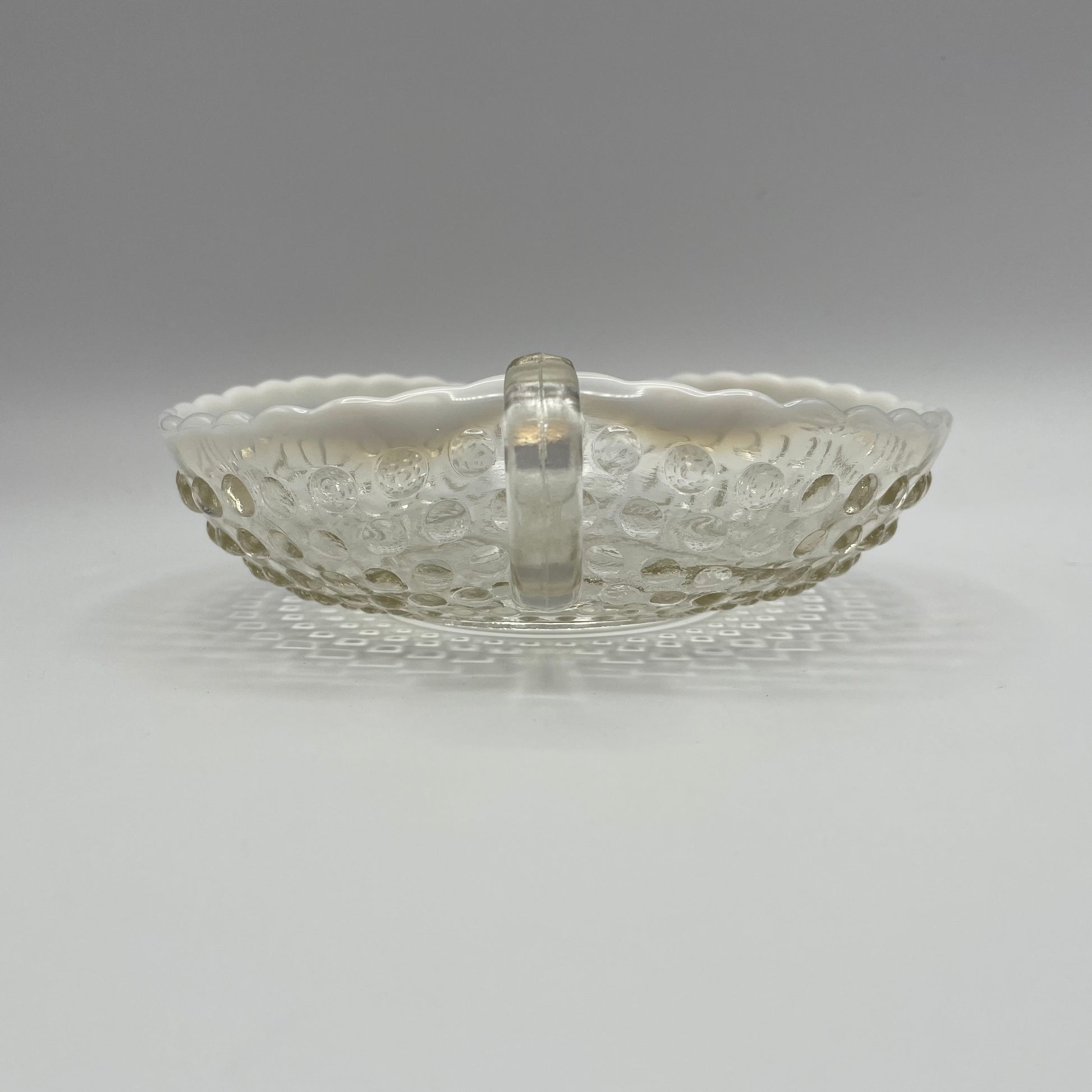Vintage Anchor Hocking Moonstone Opalescent Hobnail Heart Dish With Handle