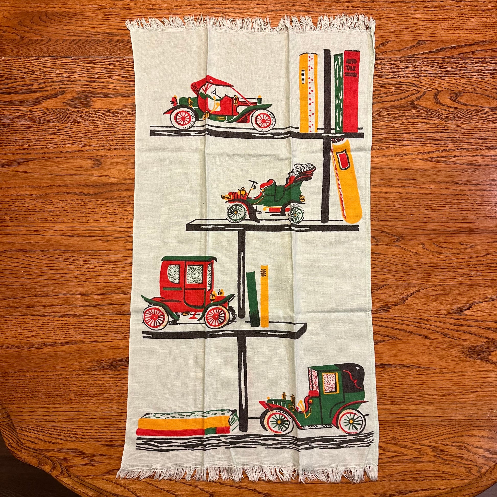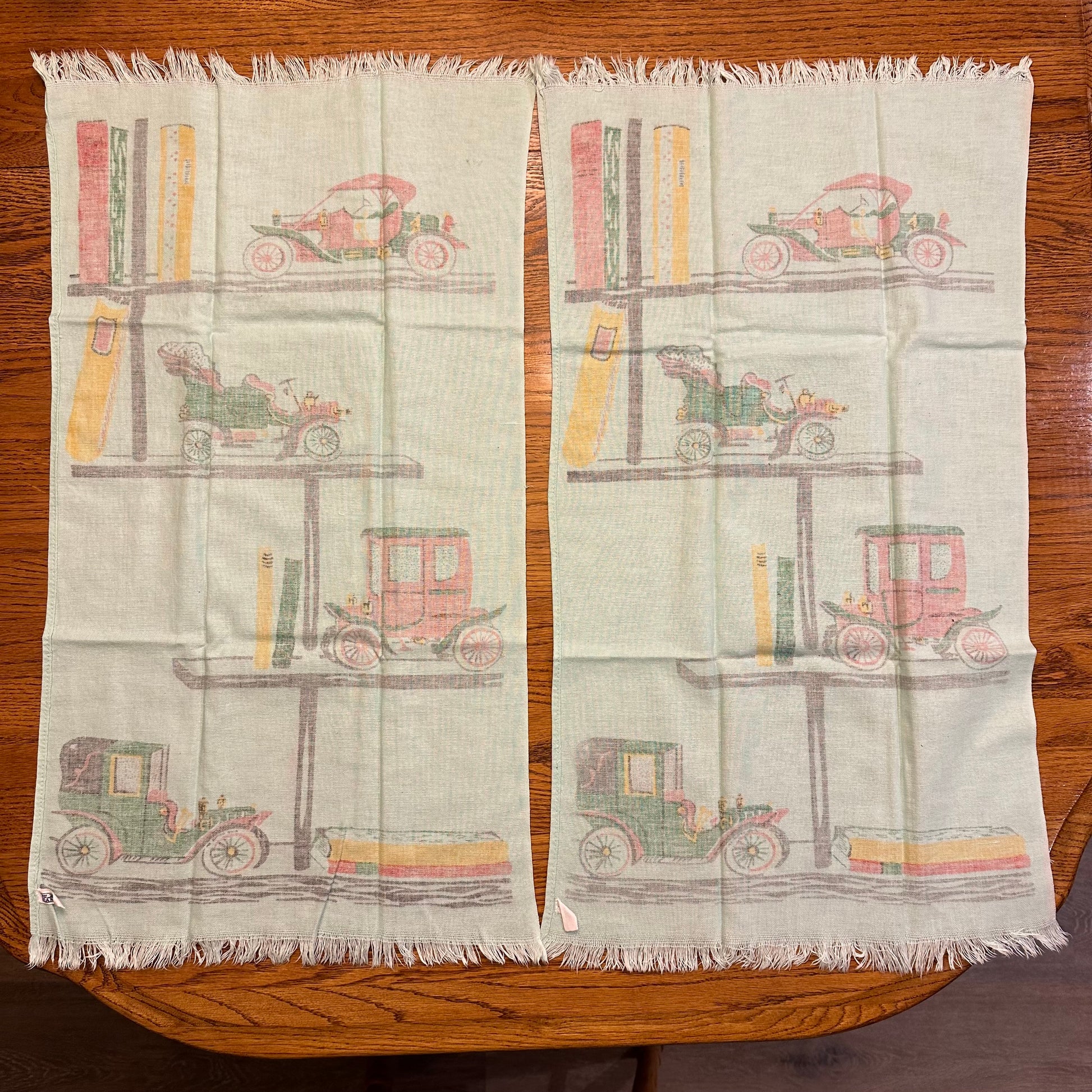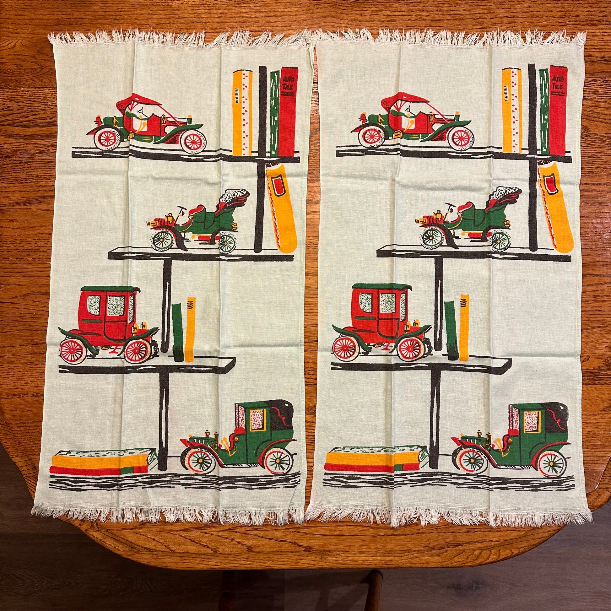 Vintage Cannon Kitchen Cloth Towels Antique Cars- Light Blue, Set of 2