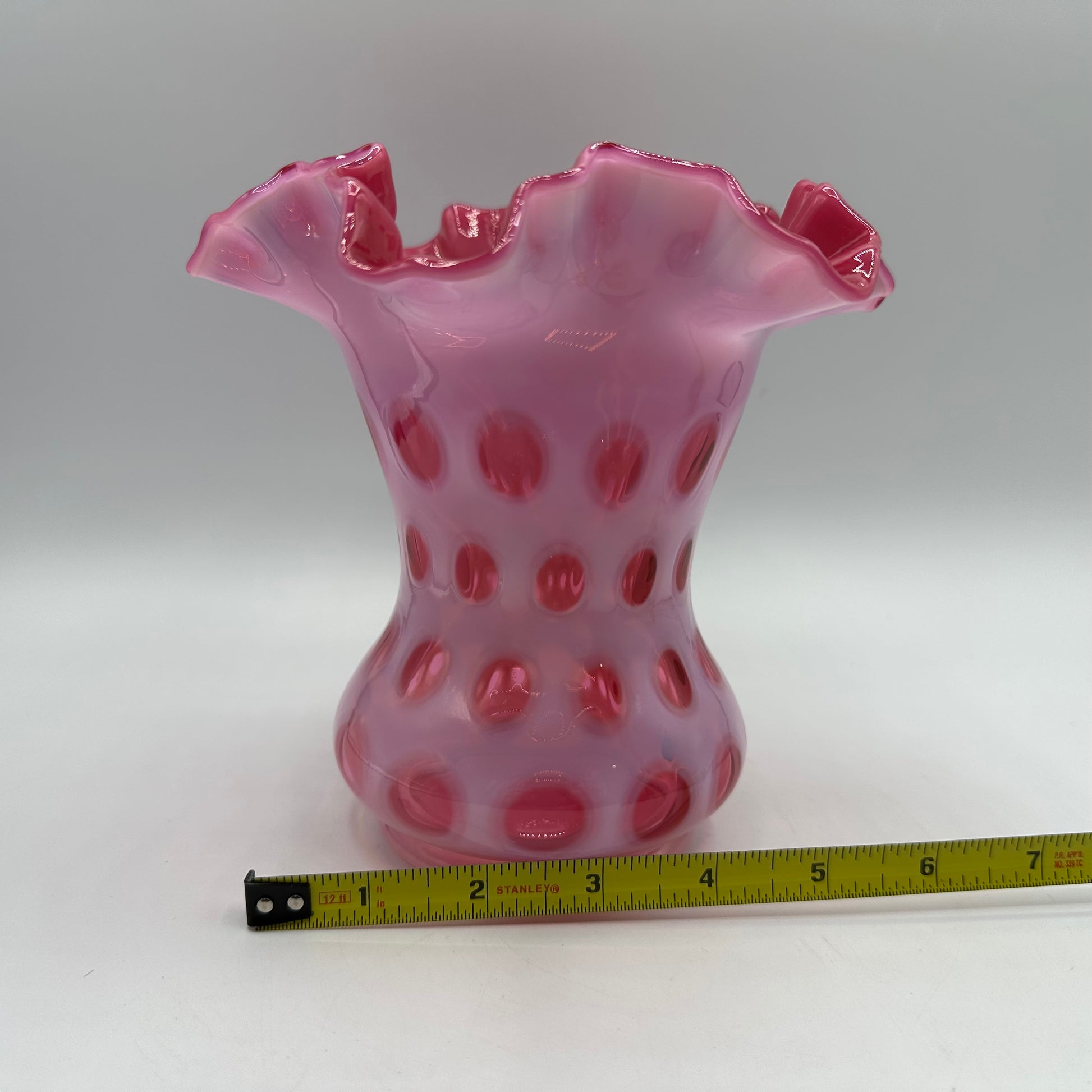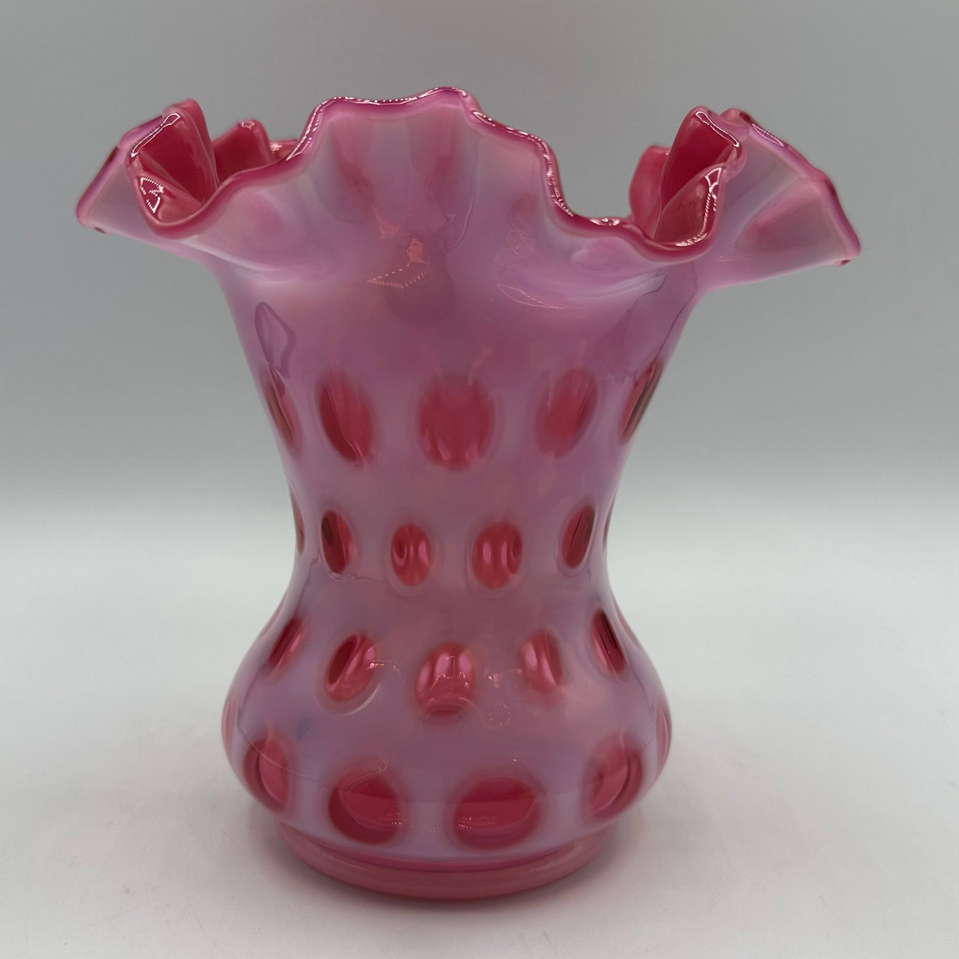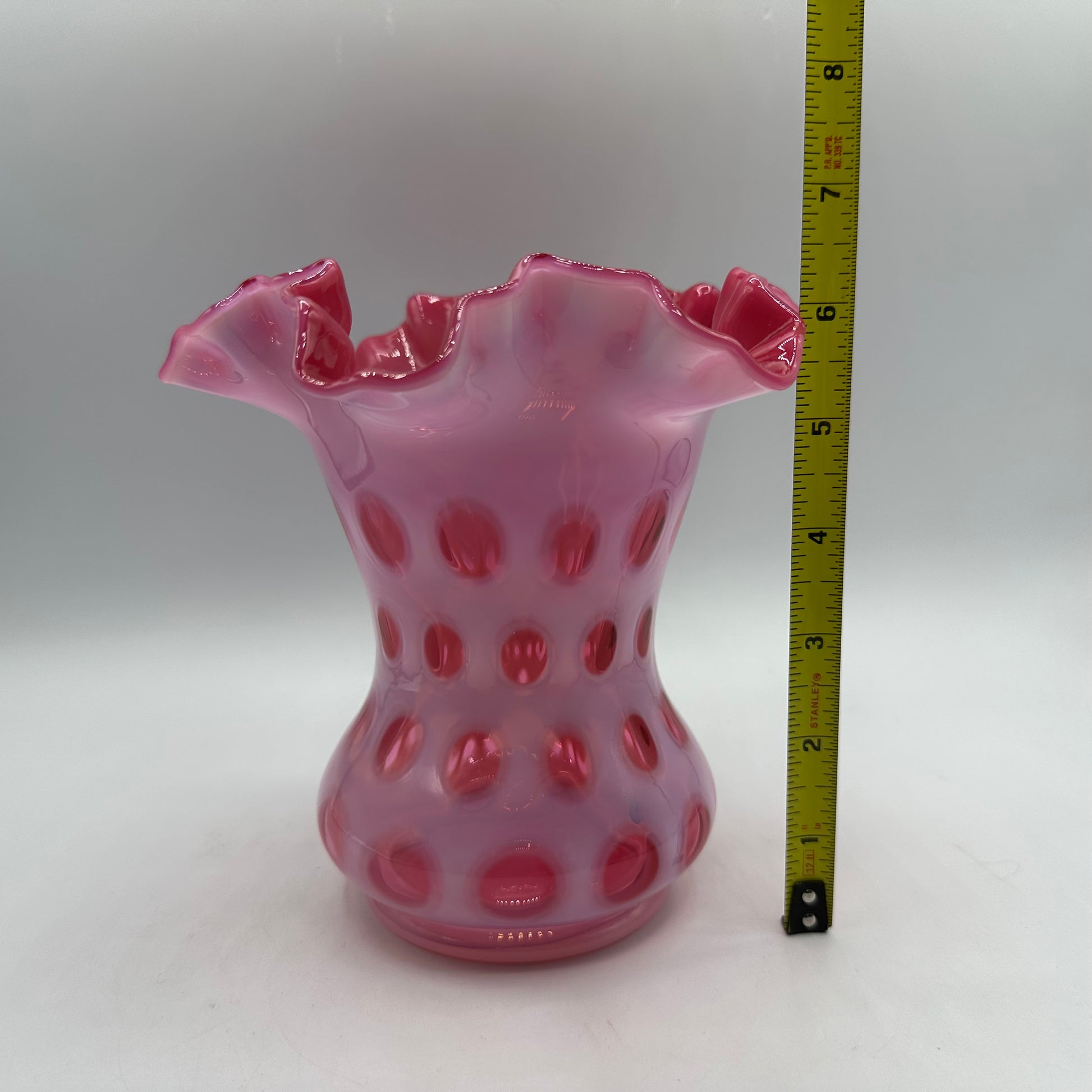 Vintage Fenton Cranberry Opalescent Coin Dot Ruffled Vase