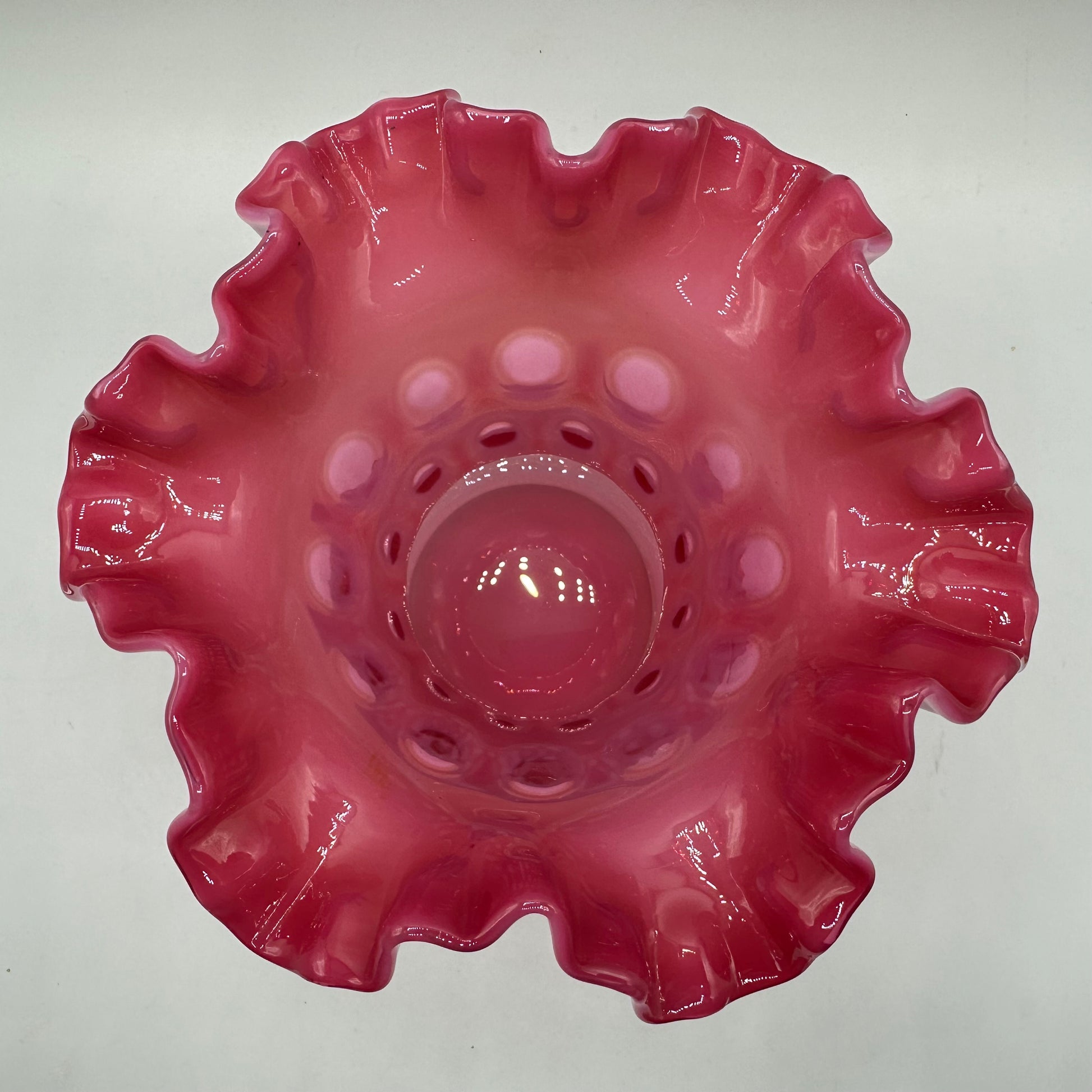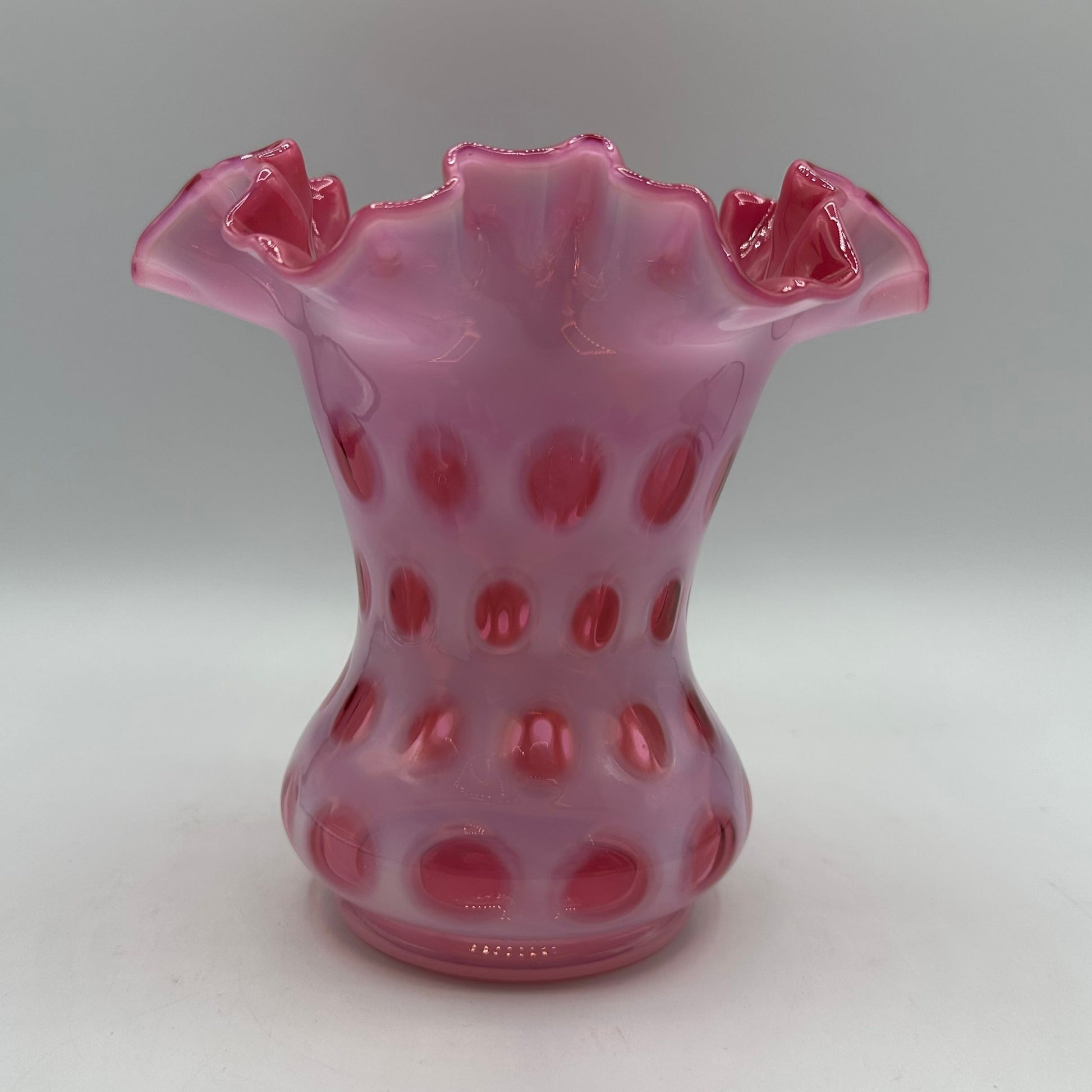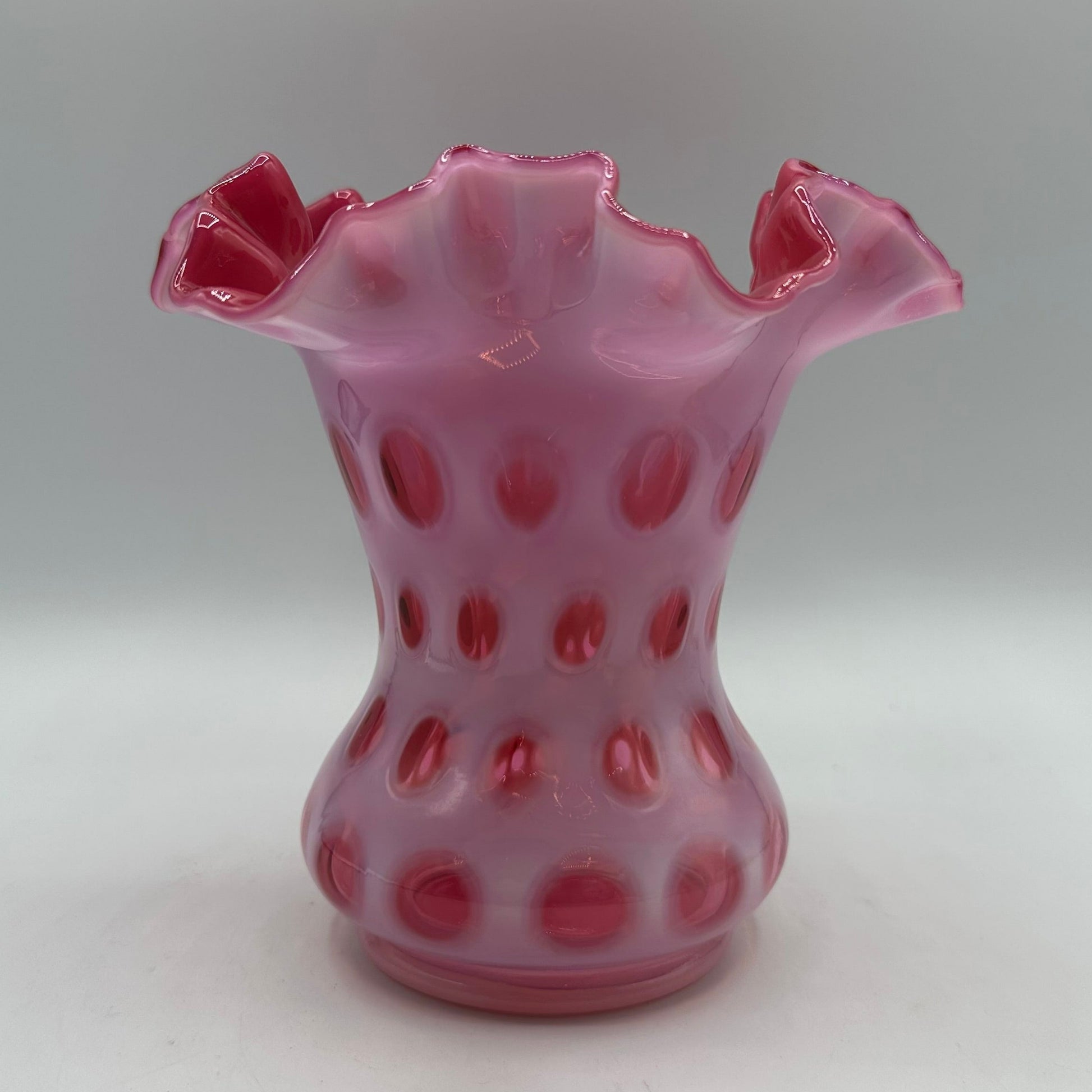 Vintage Fenton Cranberry Opalescent Coin Dot Ruffled Vase