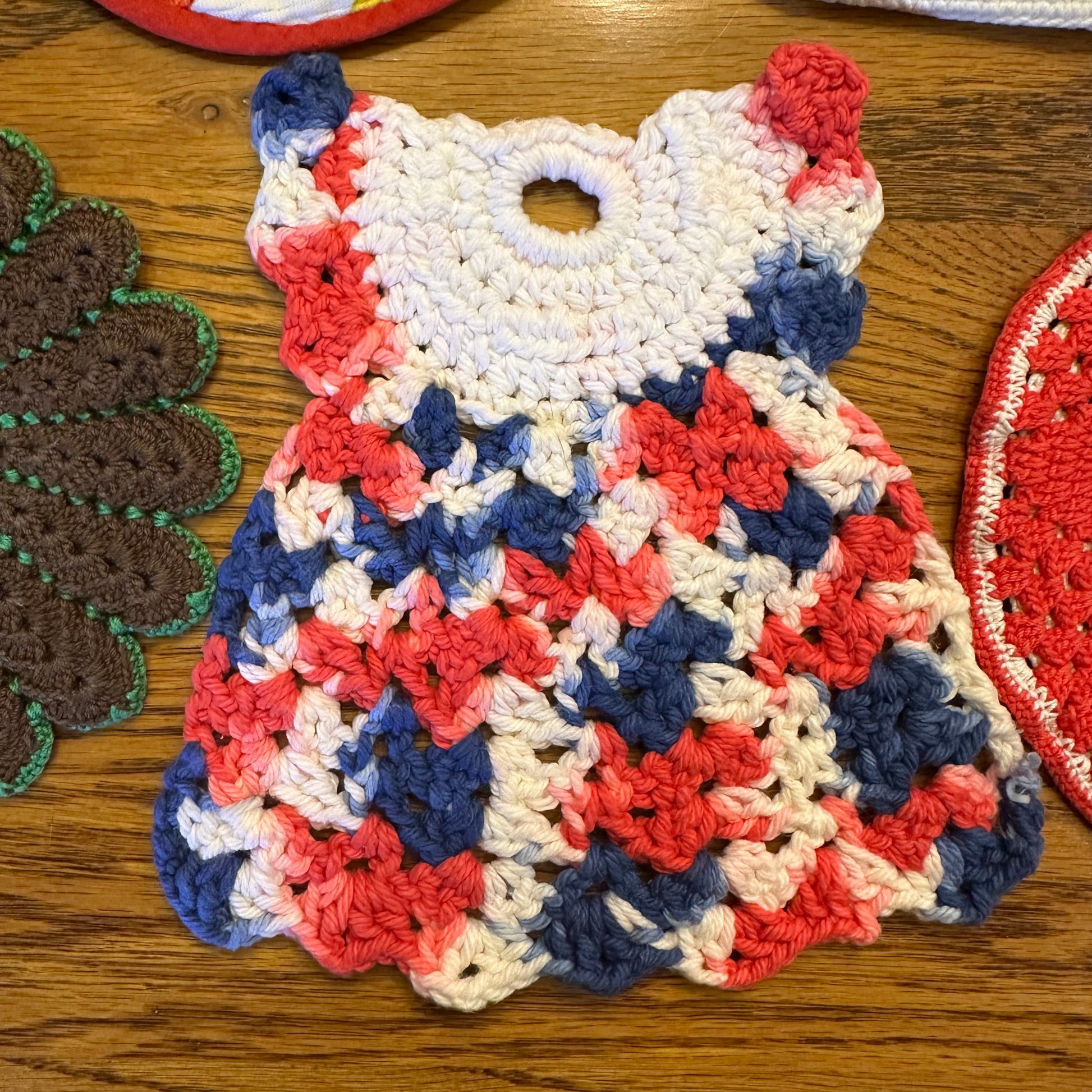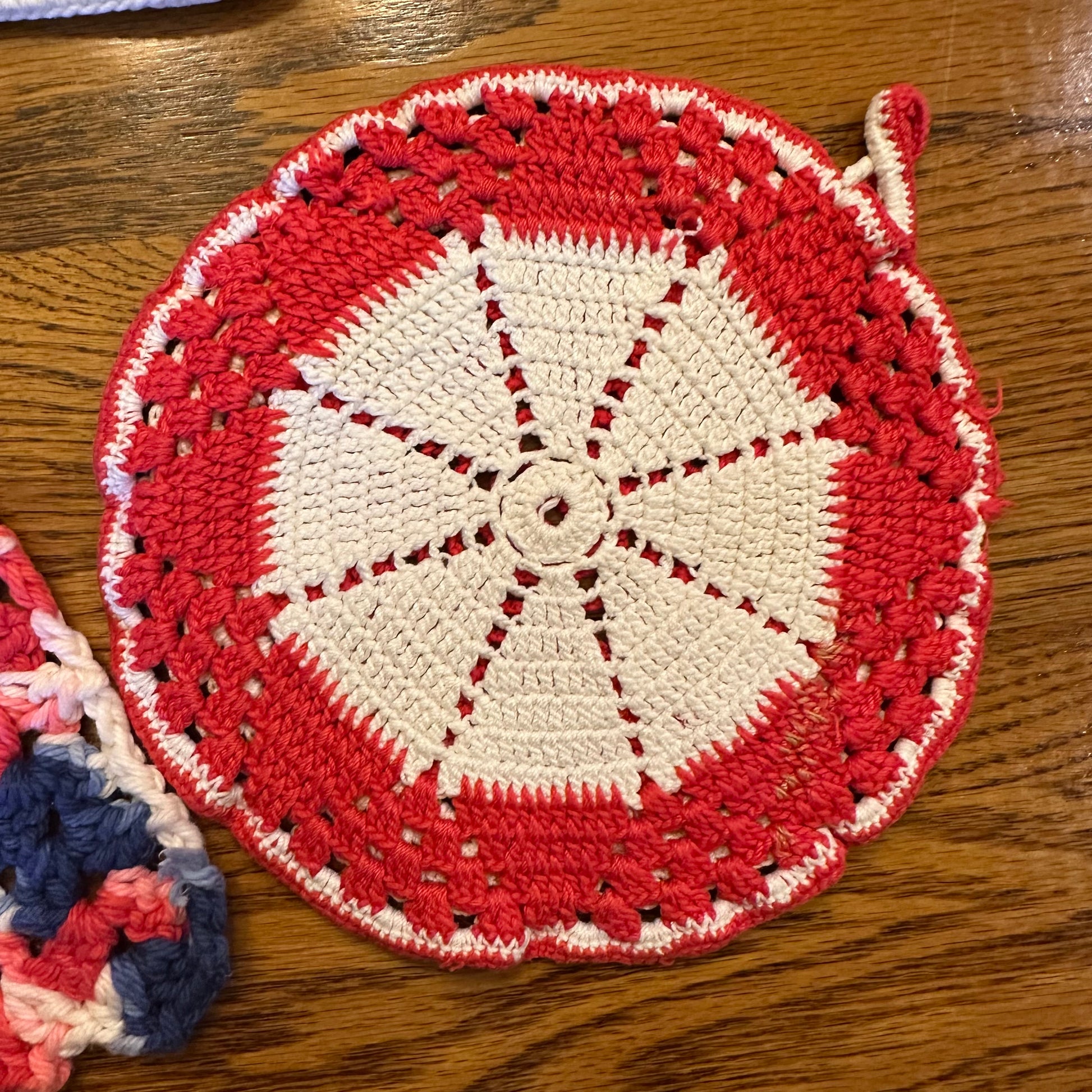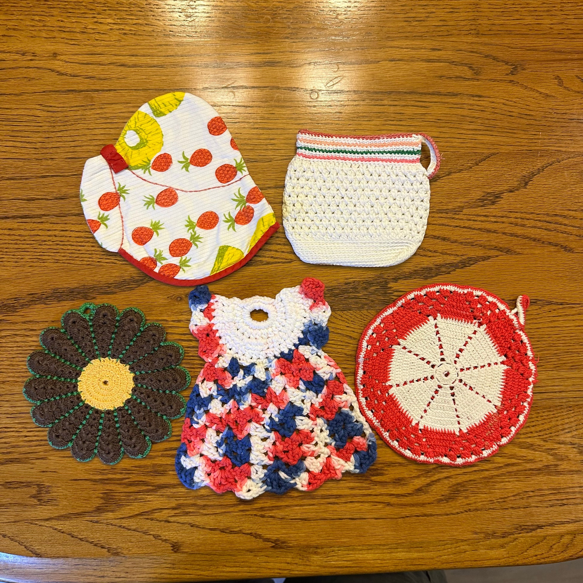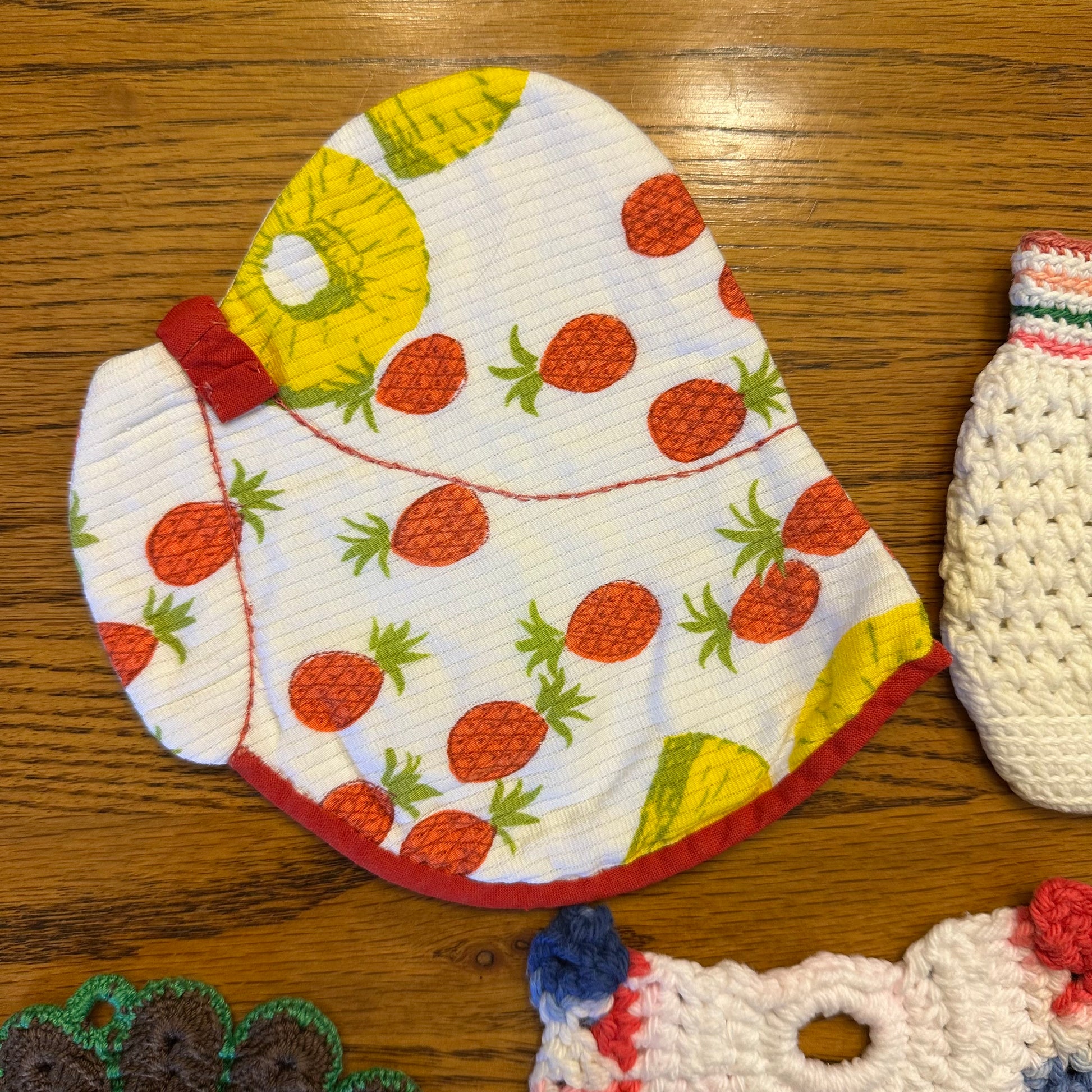 This lot consists of a diverse assortment of hot pads, showcasing various colors, shapes, and sizes. Each piece is in excellent vintage, pre-owned condition, making them a stylish and functional addition to any kitchen.