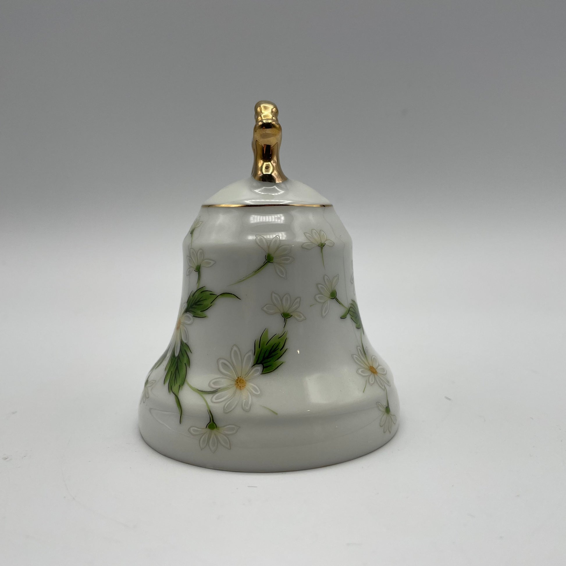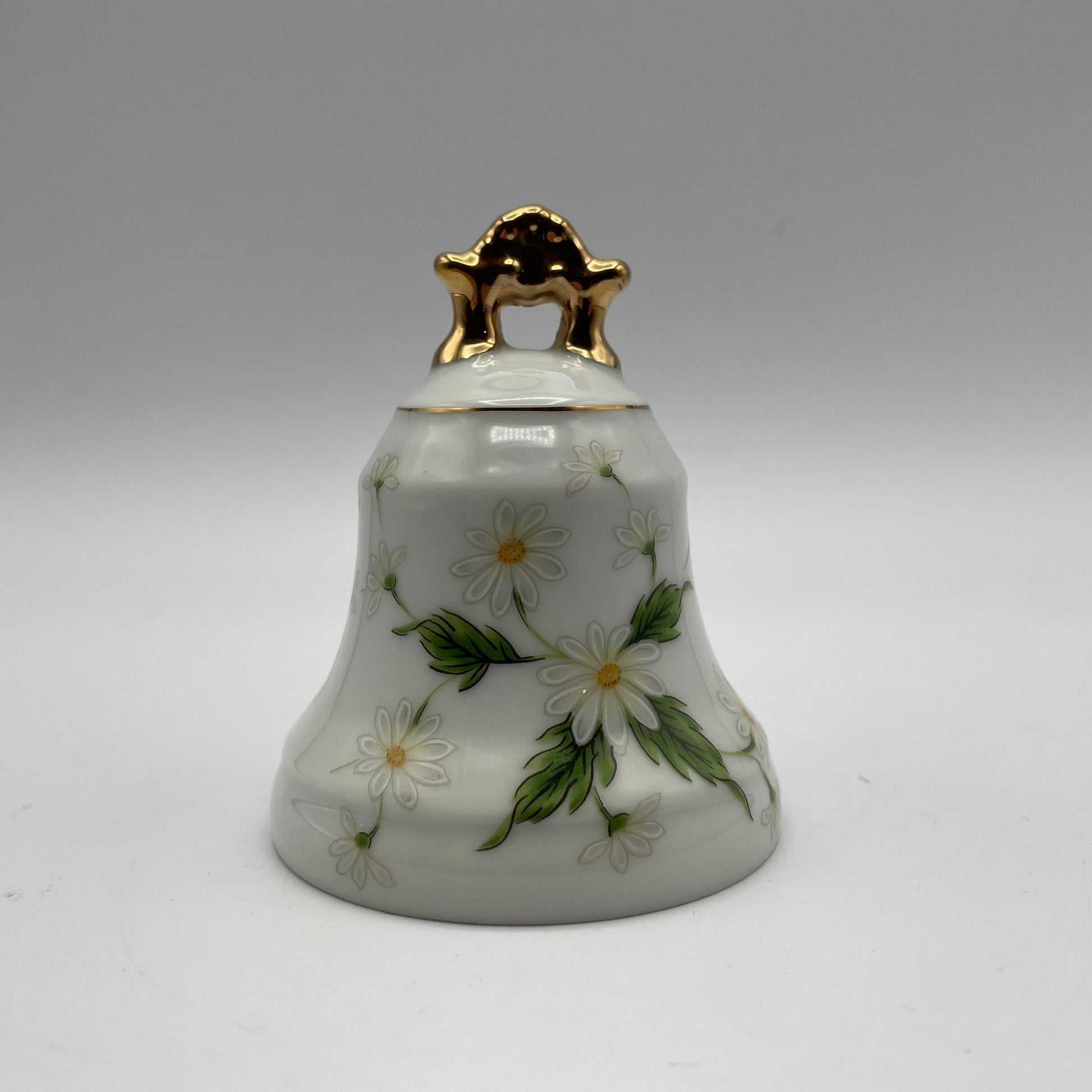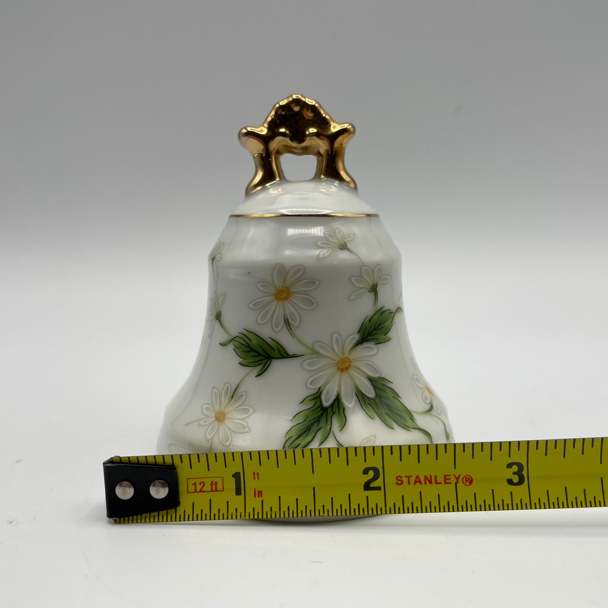 A beautiful bell from Lefton in Japan It features a handpainted daisy design with gold accents. It is in excellent vintage used condition.