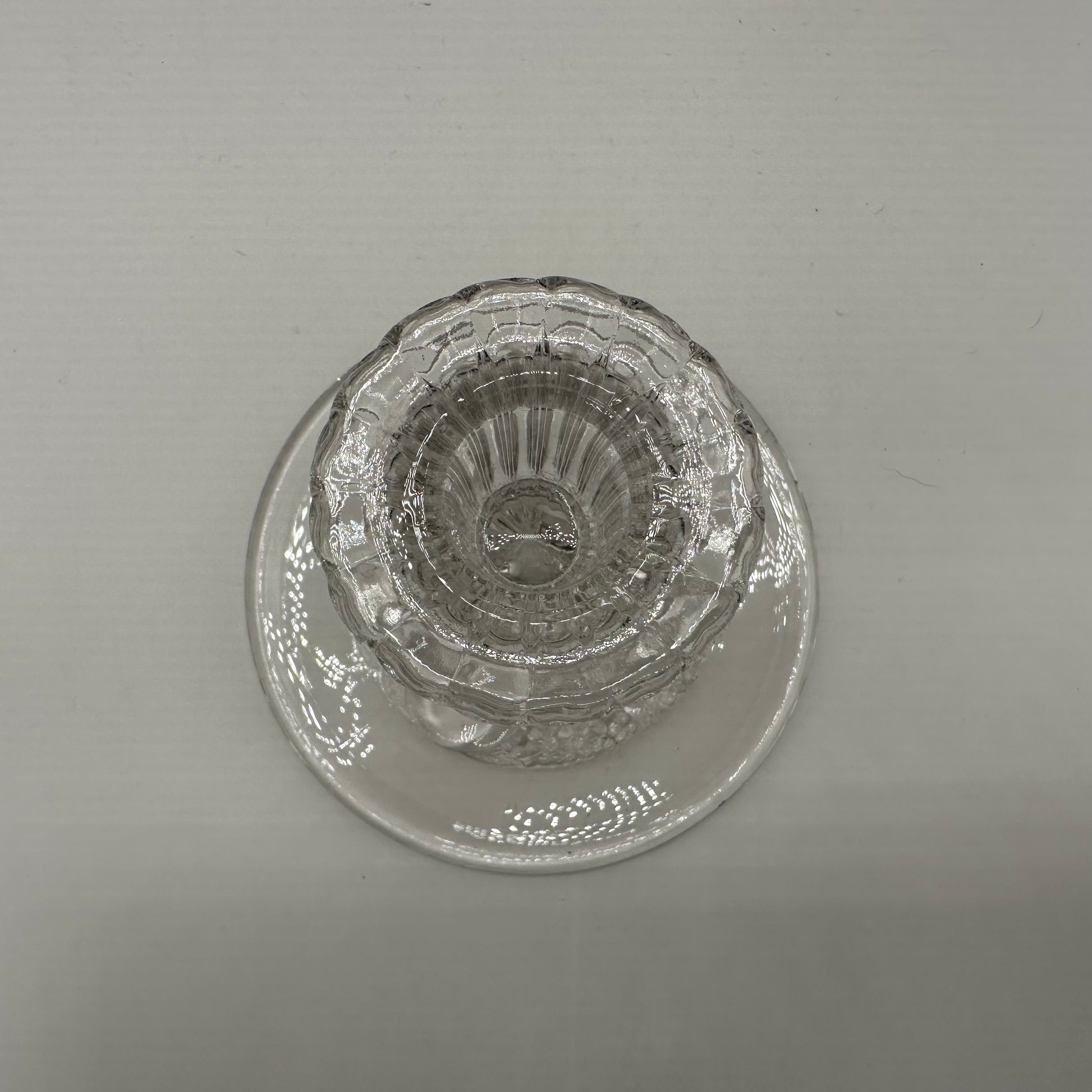 This exquisite candlestick holder is from Westmoreland and showcases the elegant Della Robbia pattern in clear glass. It is in excellent vintage pre-owned condition, making it a valuable addition for collectors or anyone looking to enhance their décor.