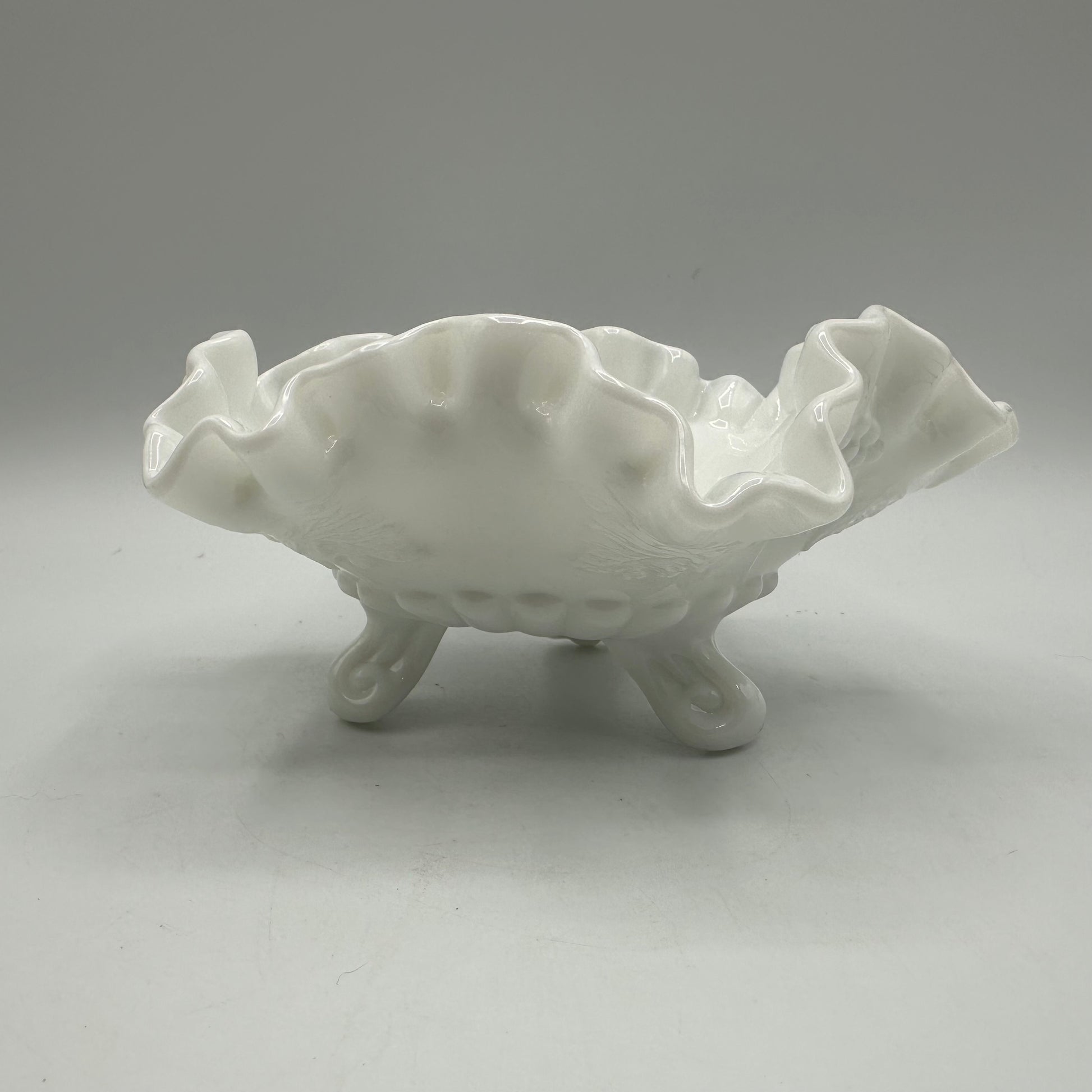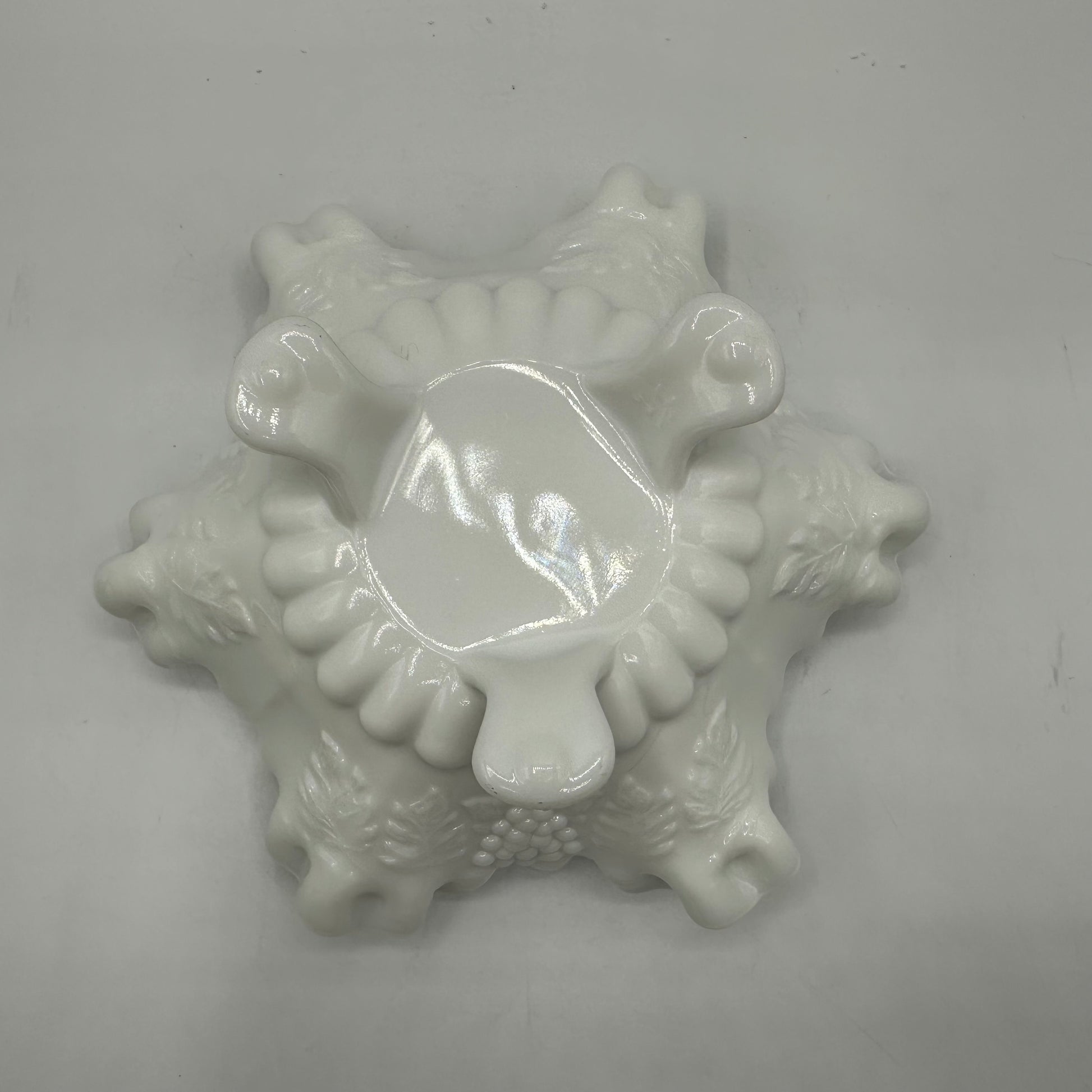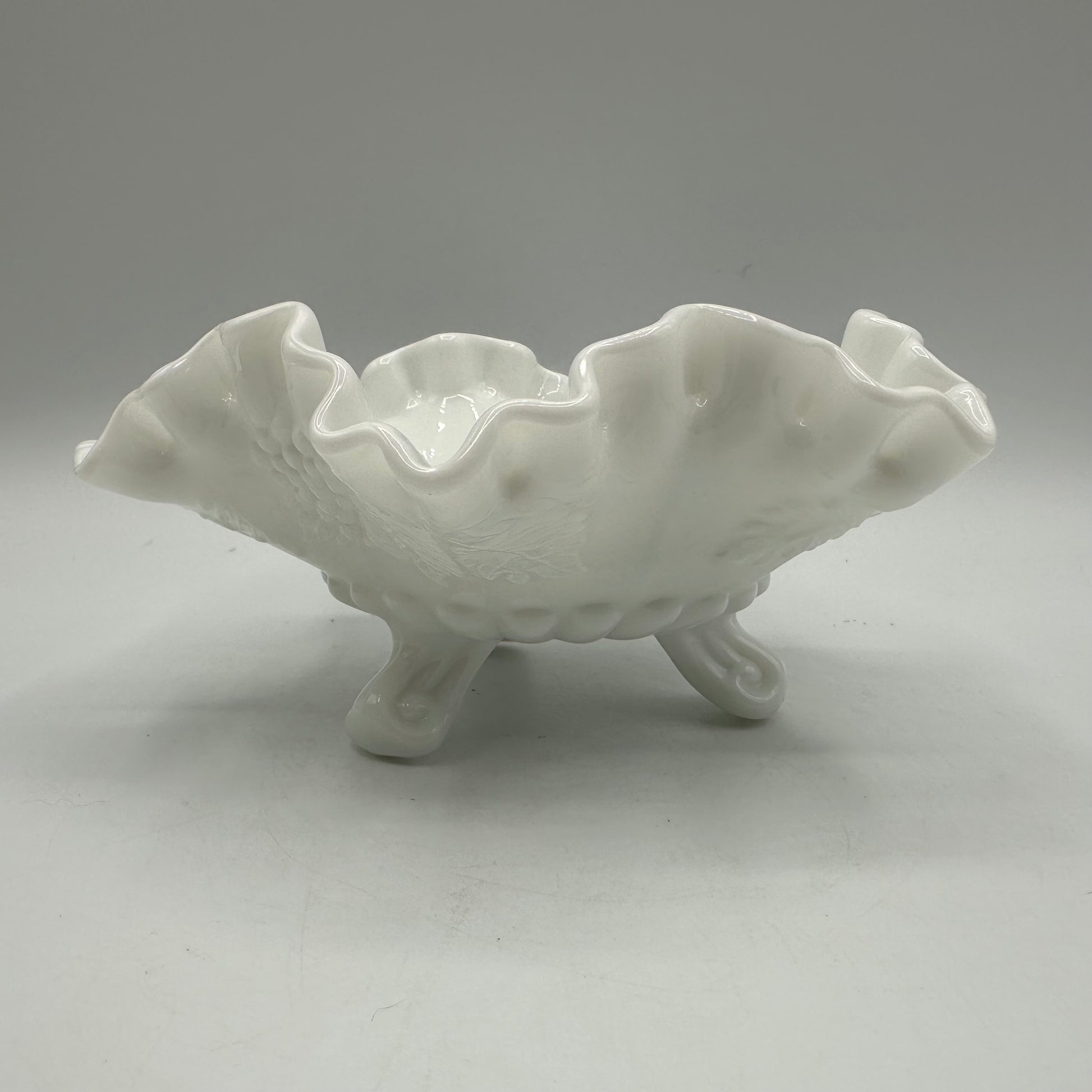 Westmoreland Milk Glass Paneled Grape Crimped Candy Dish, Footed