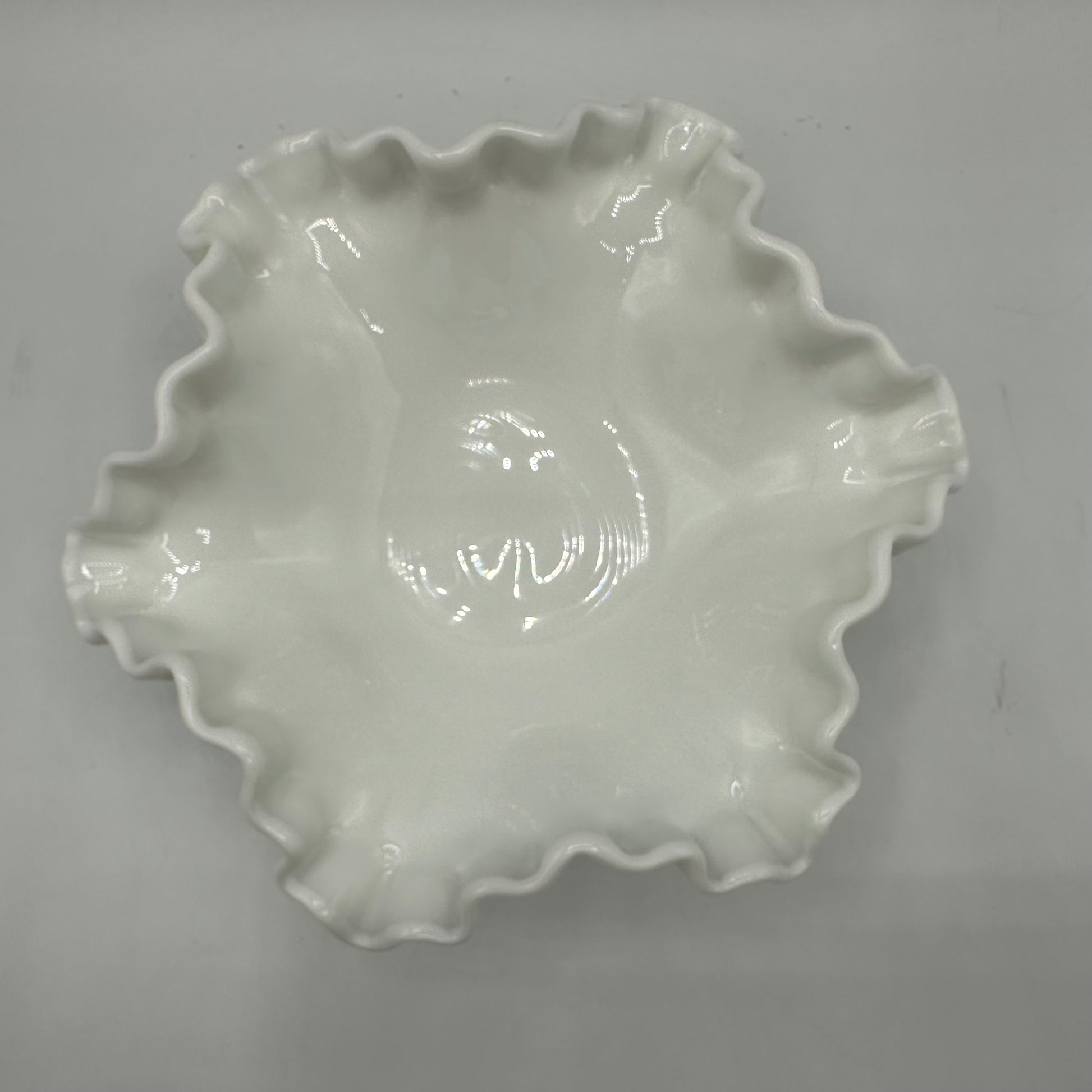 This candy dish from Westmoreland showcases the elegant paneled grape pattern, crafted in milk glass. It is in excellent vintage condition, reflecting its pre-owned status while maintaining its charm and functionality.